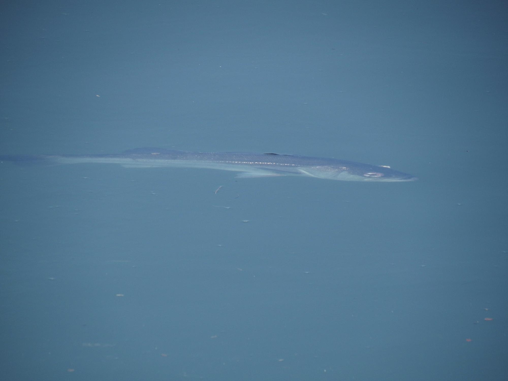 さっきのデカい奴、ナマズかと思ったのですがヒゲがありません。体形からカマスではないか、目が飛び出しているのは、深いところから浅いところに上がってきた水圧の変化によるものではないかと推測。