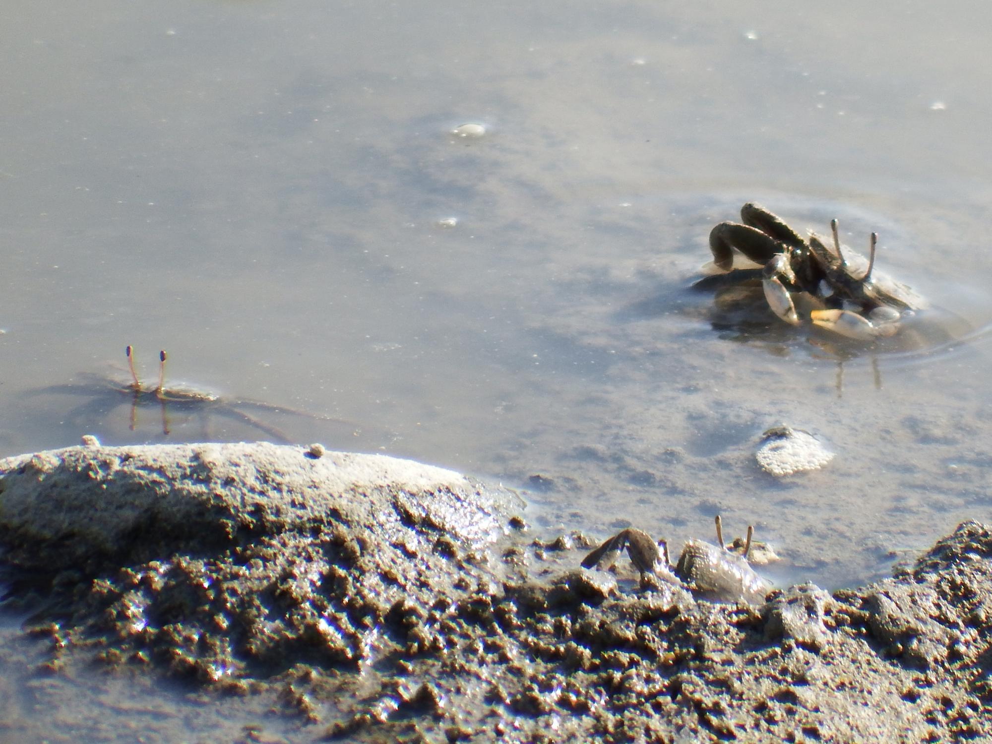 対岸のハクセンシオマネキとヤマトオサガニにあいさつして帰ります。