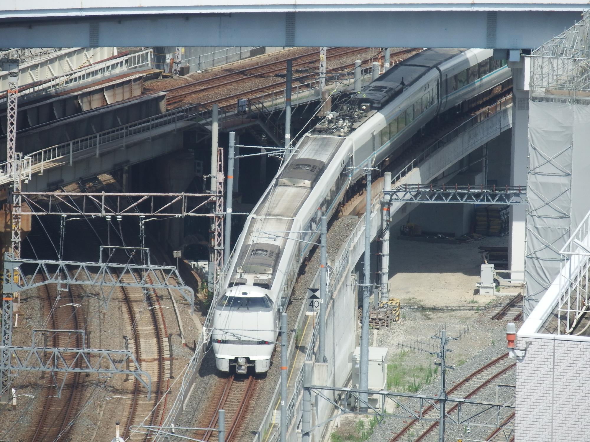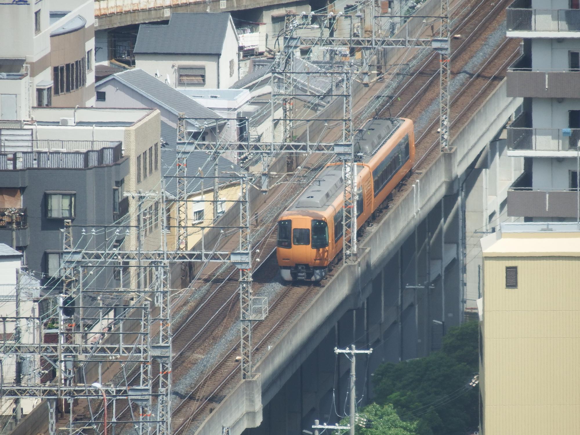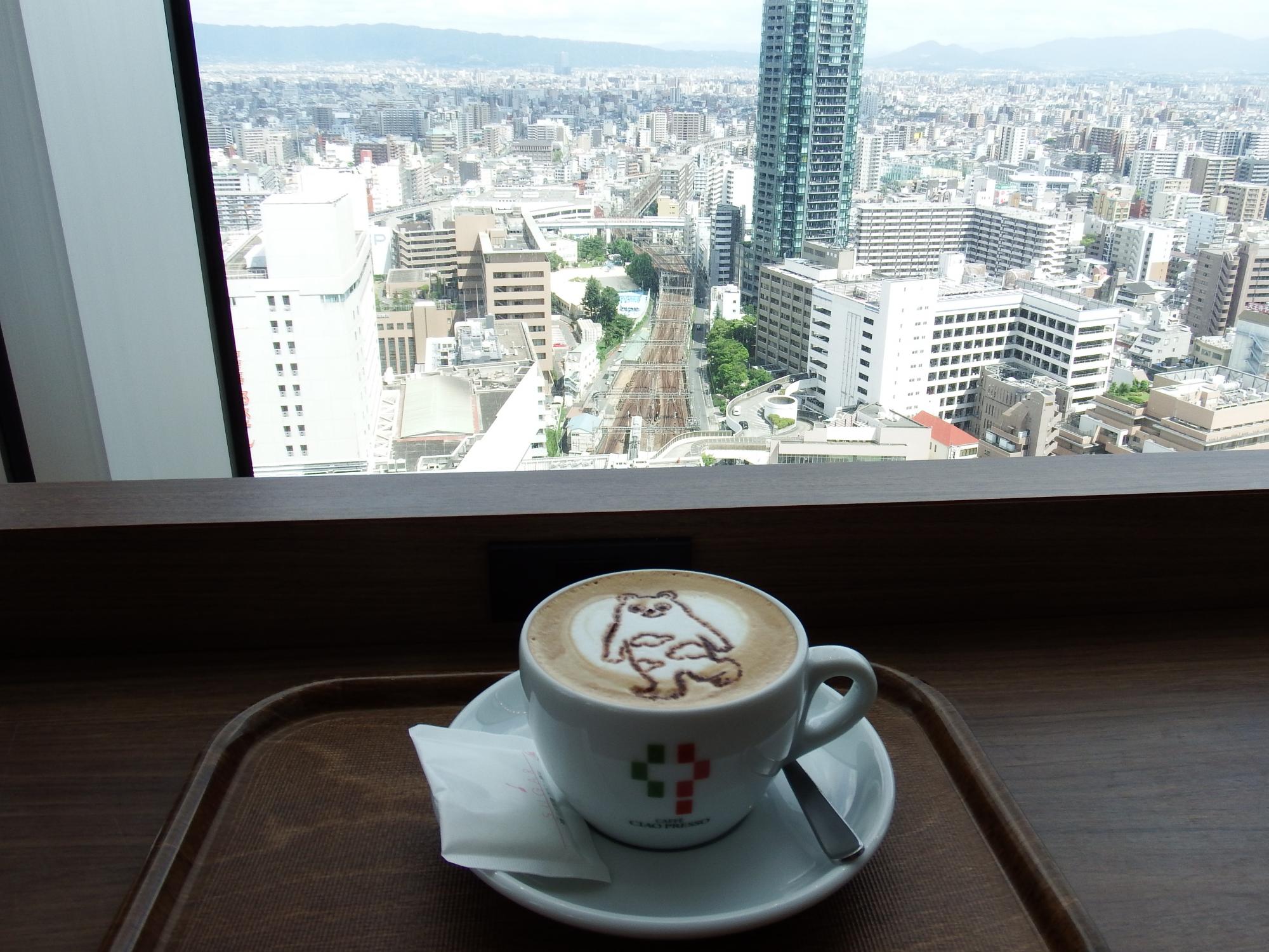 山、海、に続いて今日は街の撮り鉄、ハルカスへ。60階の展望台は(値段が)高いので、17階のカフェ、チャオプレッソを覗いてみたら窓際の席が空いてました。