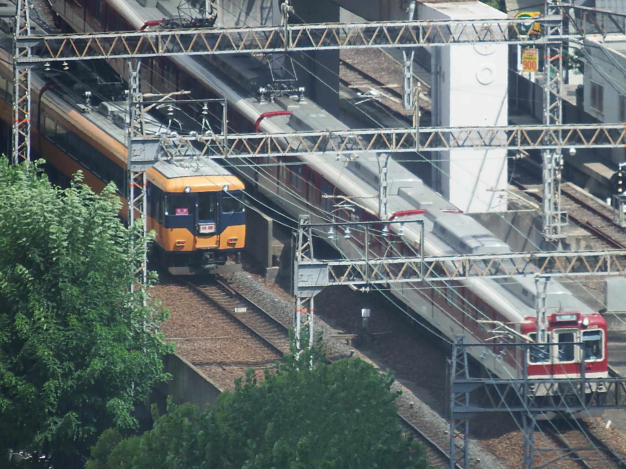 カプチーノの先、真正面に南大阪線の古参特急16000系。