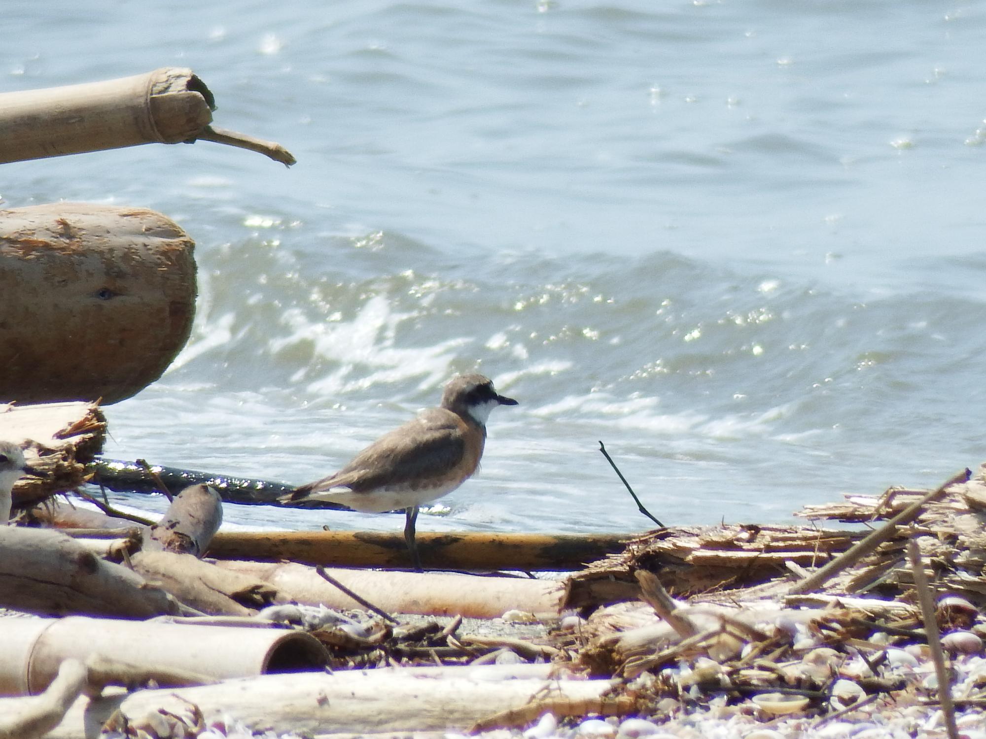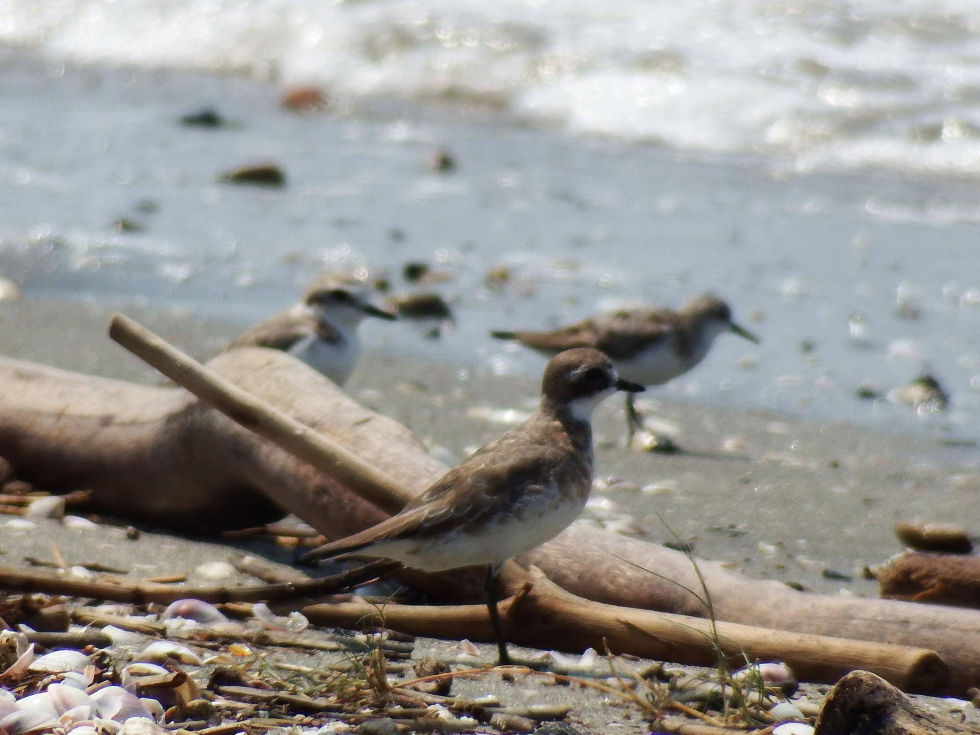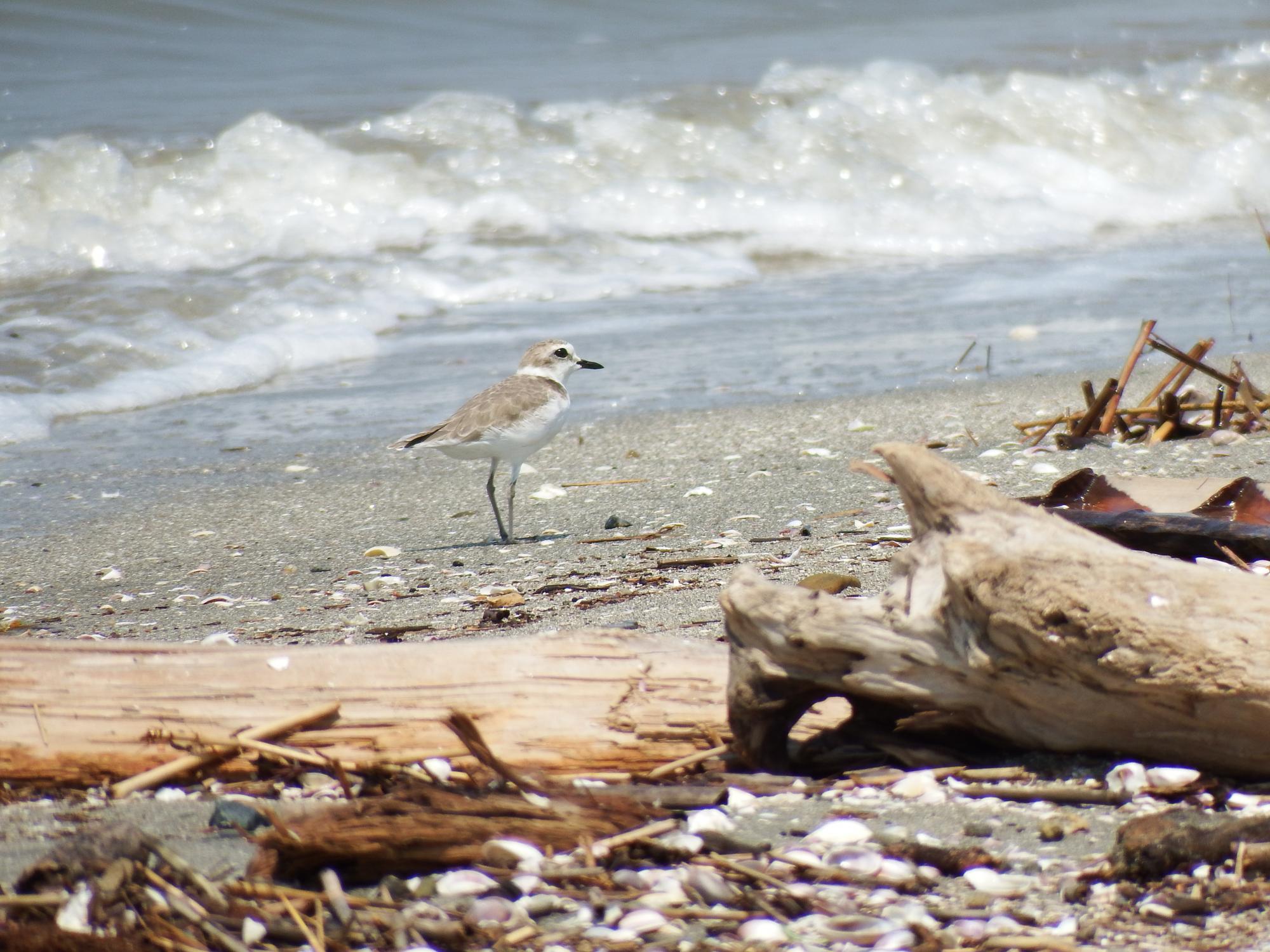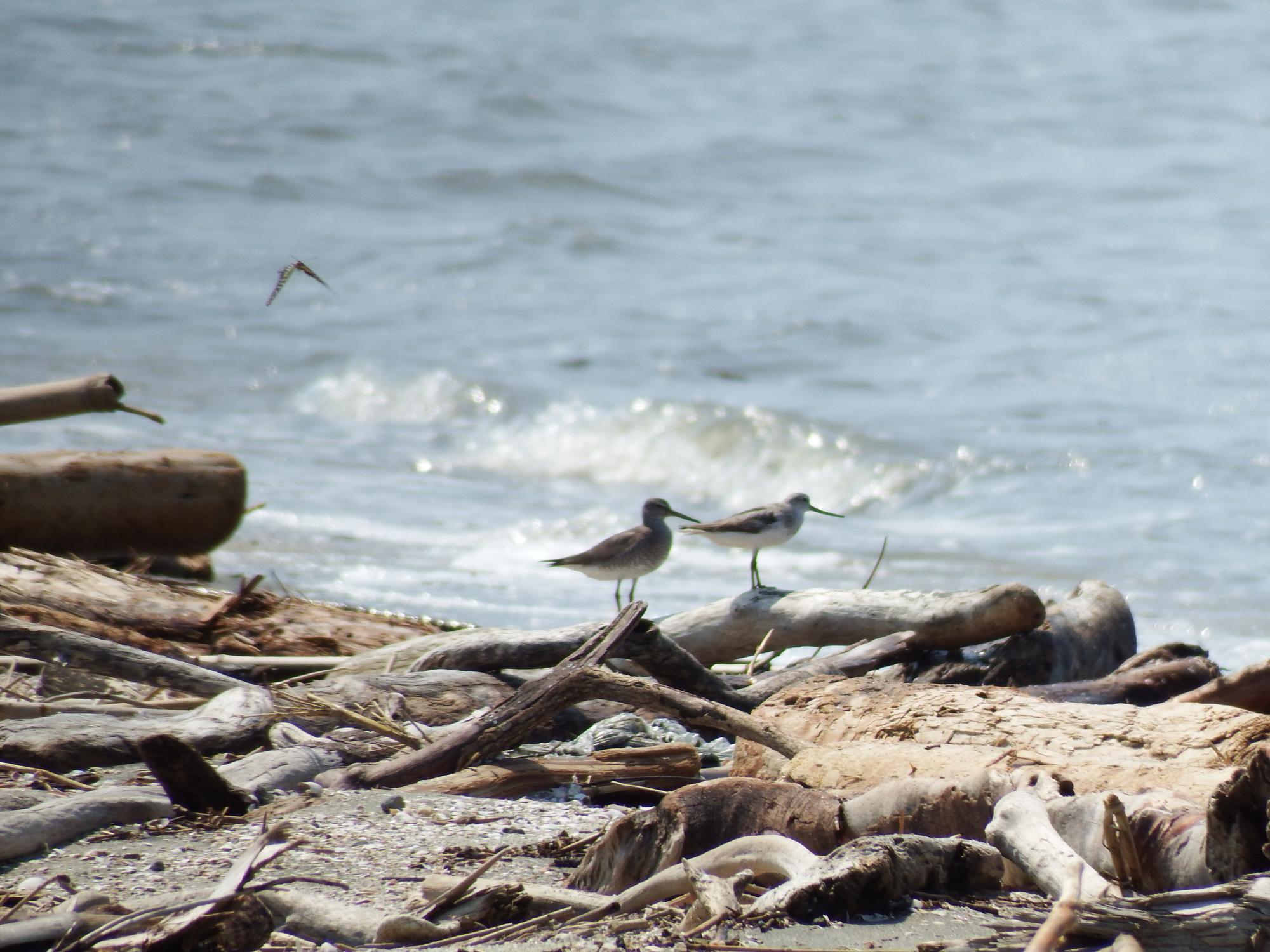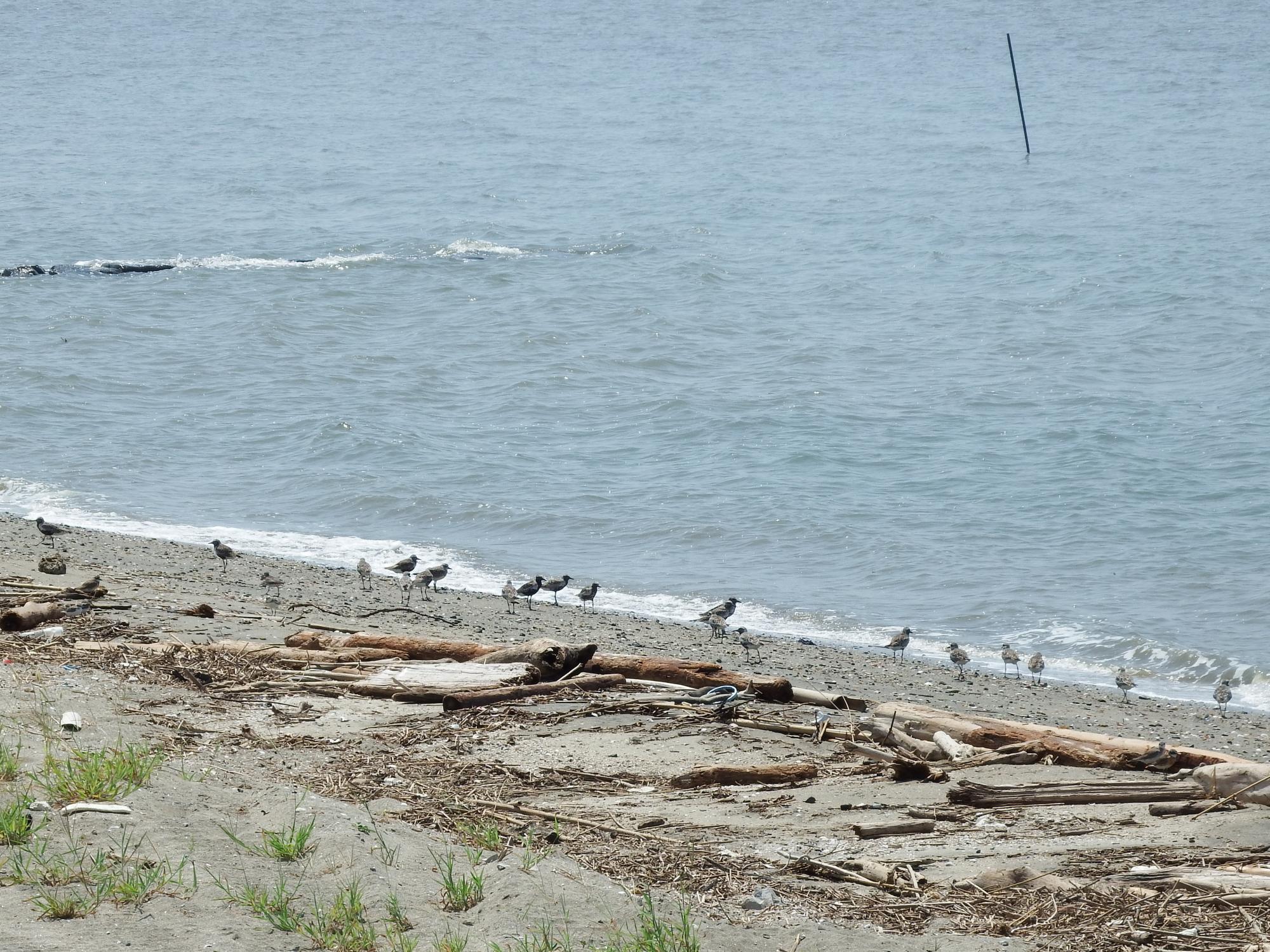 メダイチドリとキアシシギ。浜辺には流木がいっぱい、それと貝殻がすごいです。波の色は濁っていてあまりきれいじゃないのですが、干満の大きさ、流入河川が多いことに由来し、これが有明海独自の生物多様性の源泉のようです。