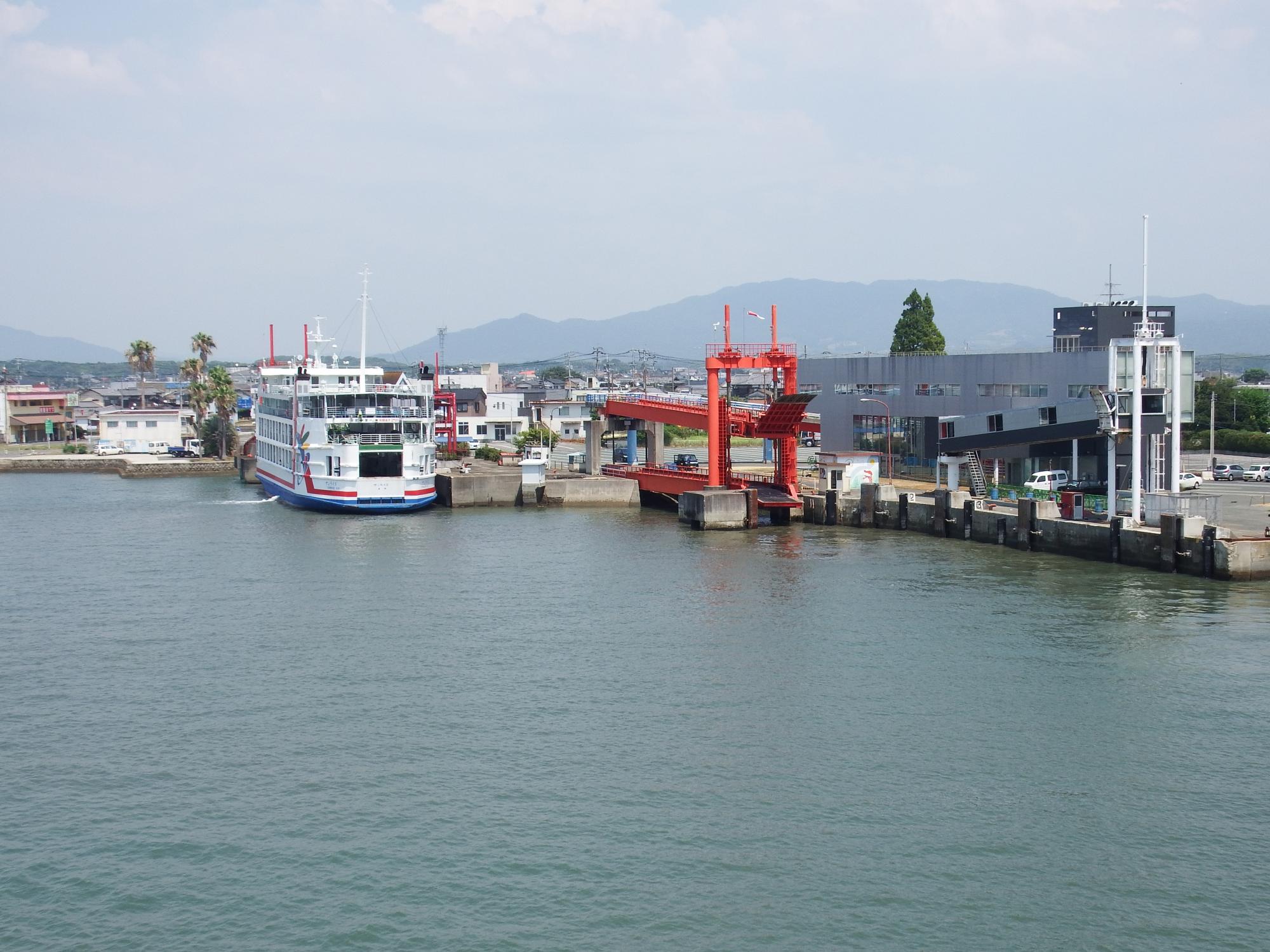 長洲(ながす)港に着くとフェリーが出港する直前、ターミナルビルを通らずにクルマ用の桟橋から乗せてくれました。