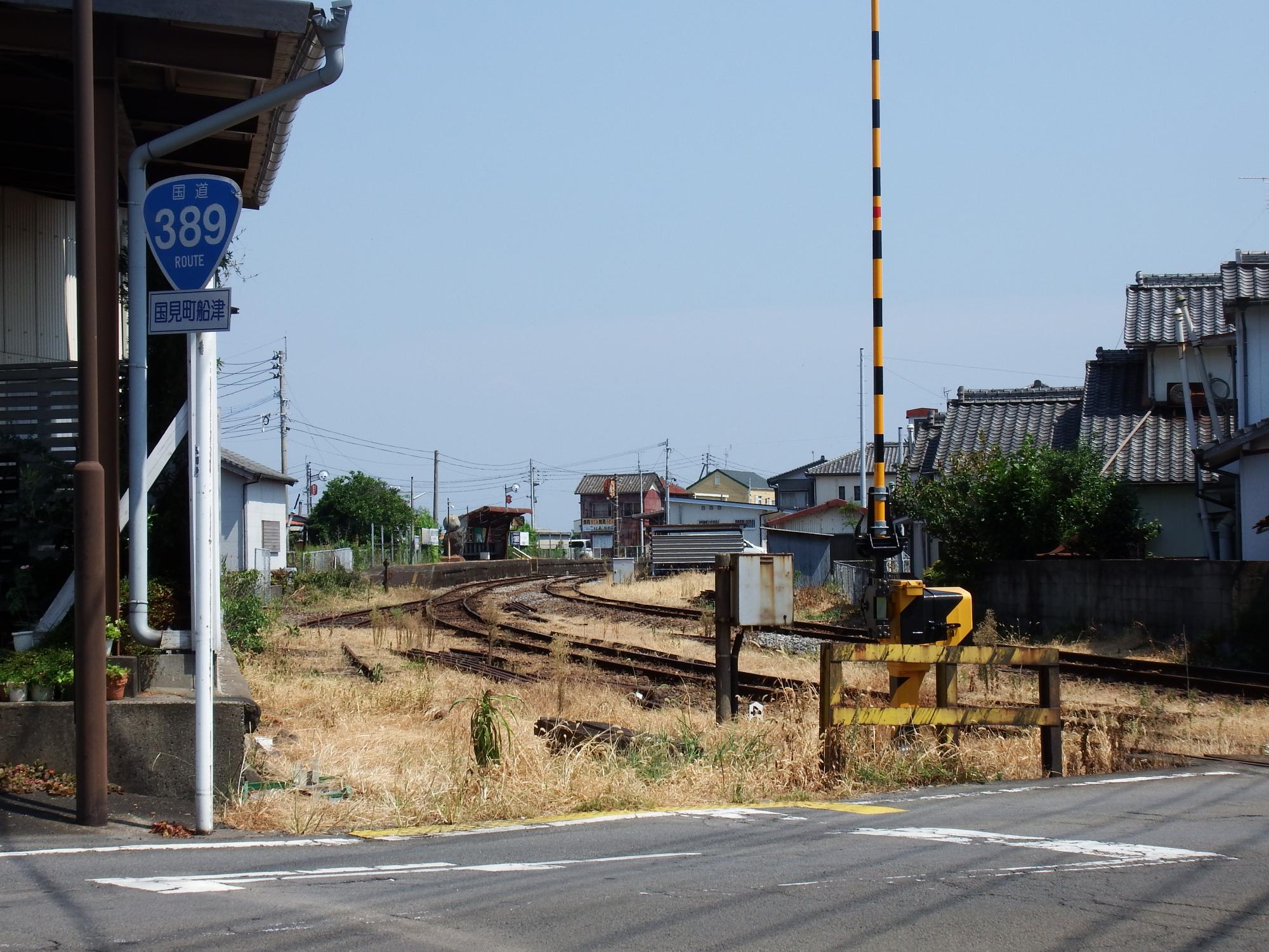 多比良町から2つ目の大三東(おおみさき)駅、ホームの反対側はすぐ海。島鉄沿線には撮り鉄ポイントがいっぱいありそうです。