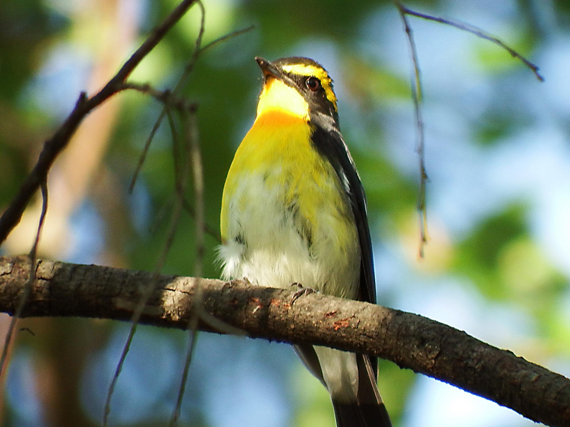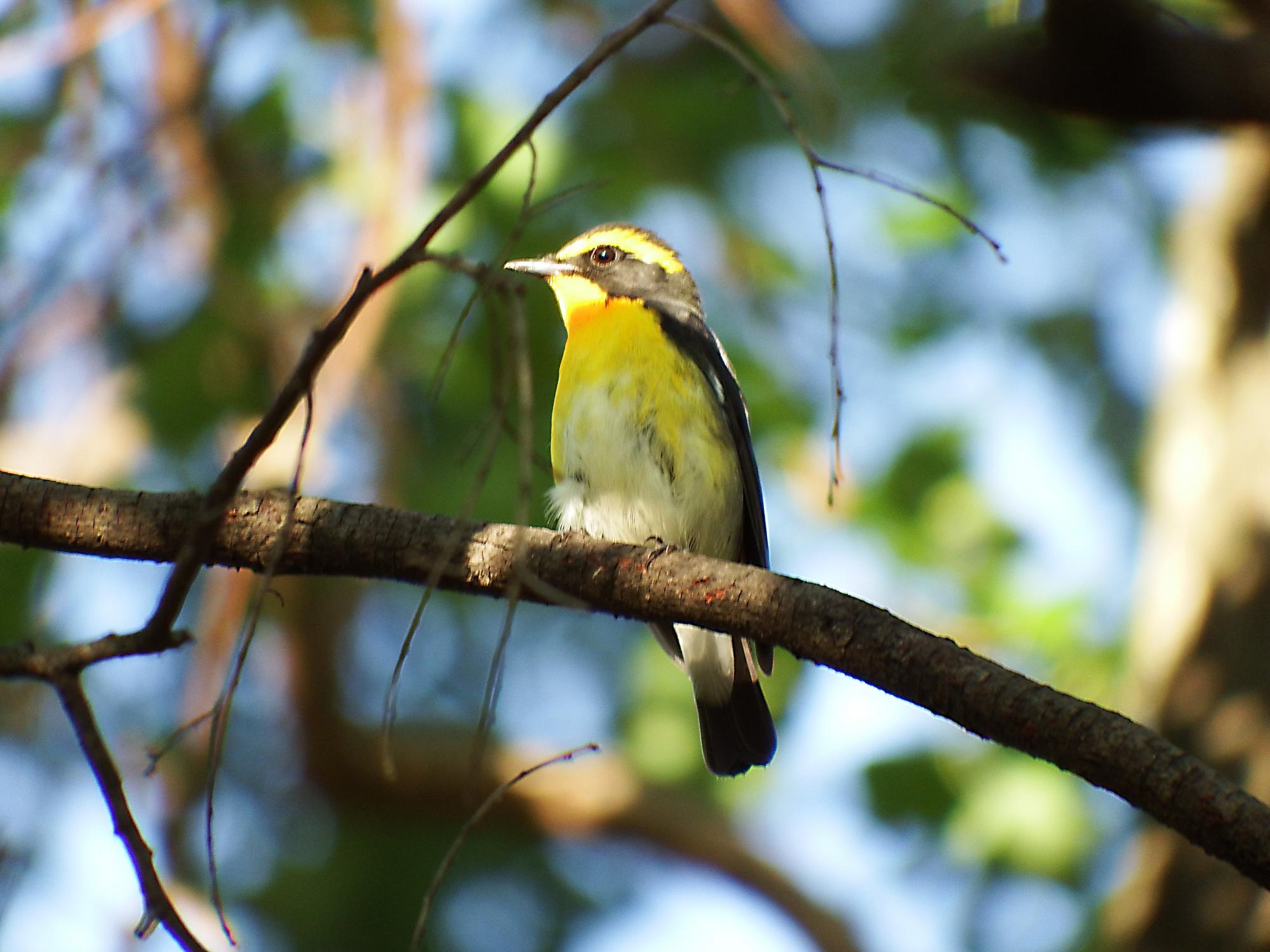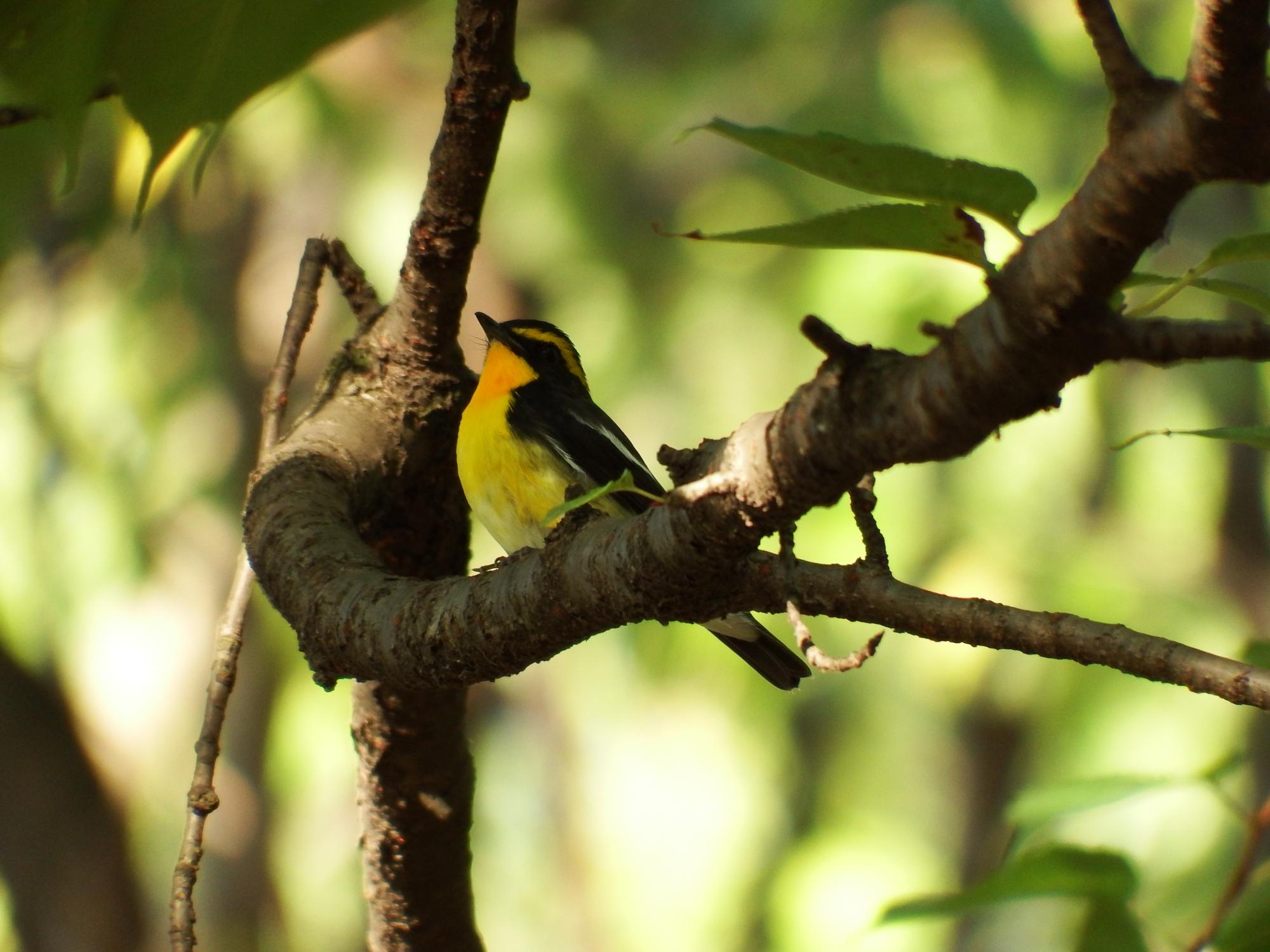 キビタキ♂が朝日を受けて輝いてます。目の前の枝に留まってじっとしているものの、なかなかピントが合わず焦りましたが、ピントが合うまでずっと待ってくれました。