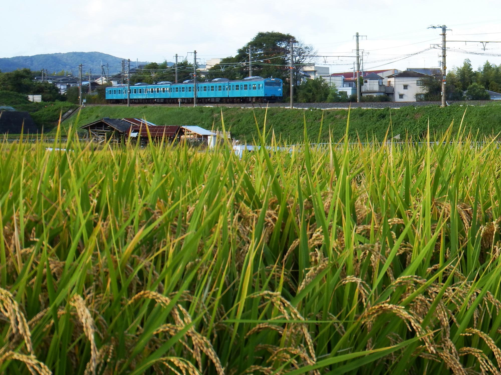 阪和線103系の大半は鳳まで、一部熊取、日根野行もありますが、早朝深夜だけ休日でも和歌山まで走っています。田園風景が広がっているはずの和泉鳥取が今日のターゲット。