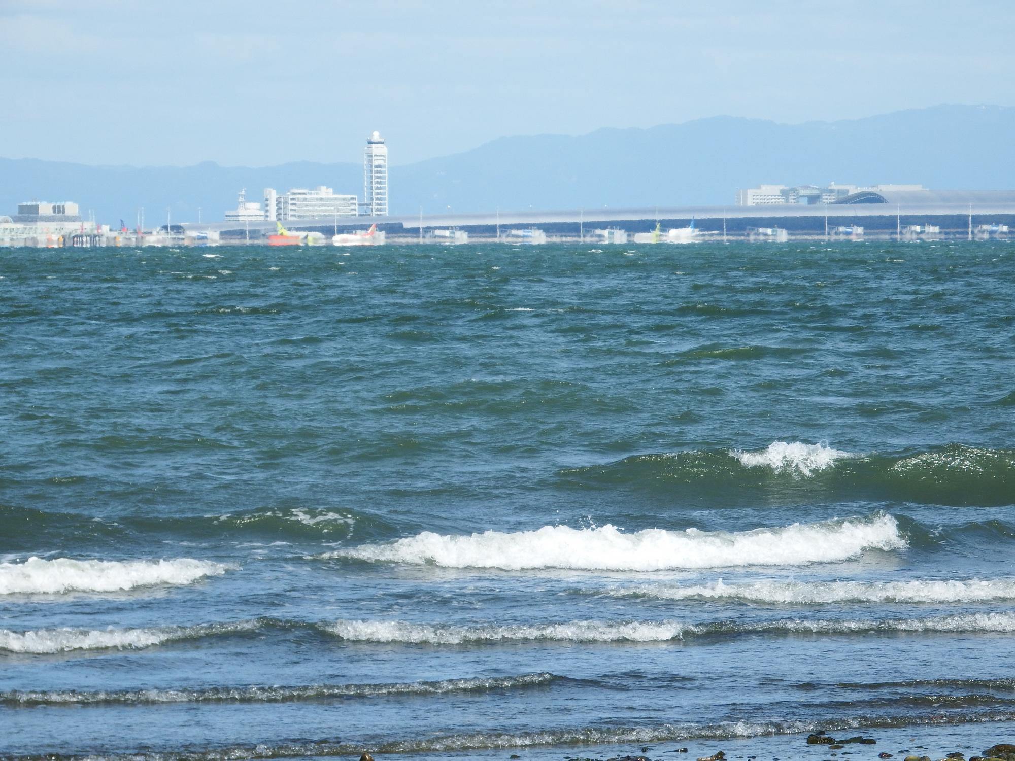 潮位は90cmくらいで満ち潮、右岸河口先端は海の中、風が強めで波も高めです。既に自分の限界の7kmは歩いているので足のカラータイマーが鳴り出しおり、ハクセンシオマネキがどうしているかチェックしたかったものの右岸河口は今日はパス。