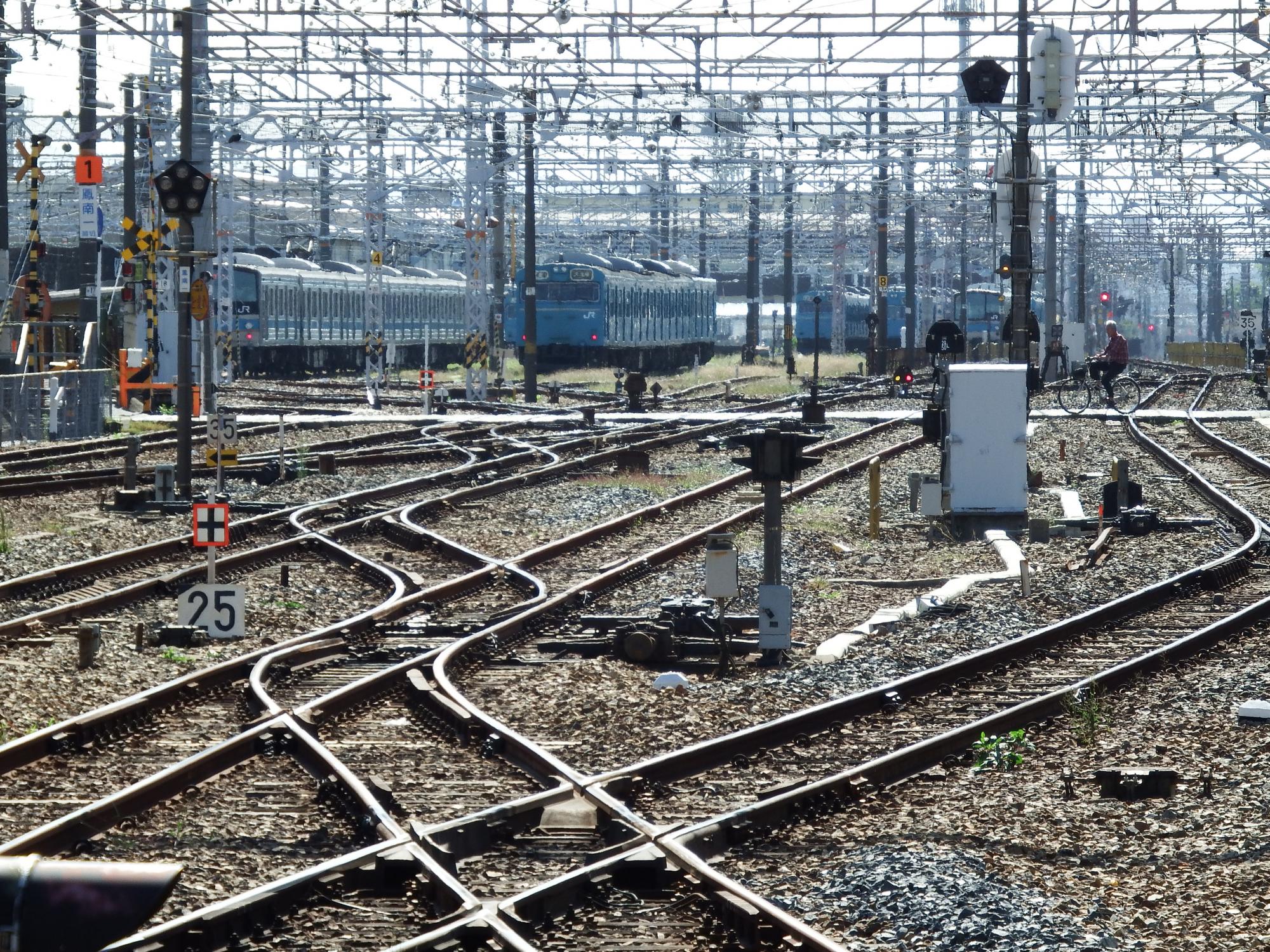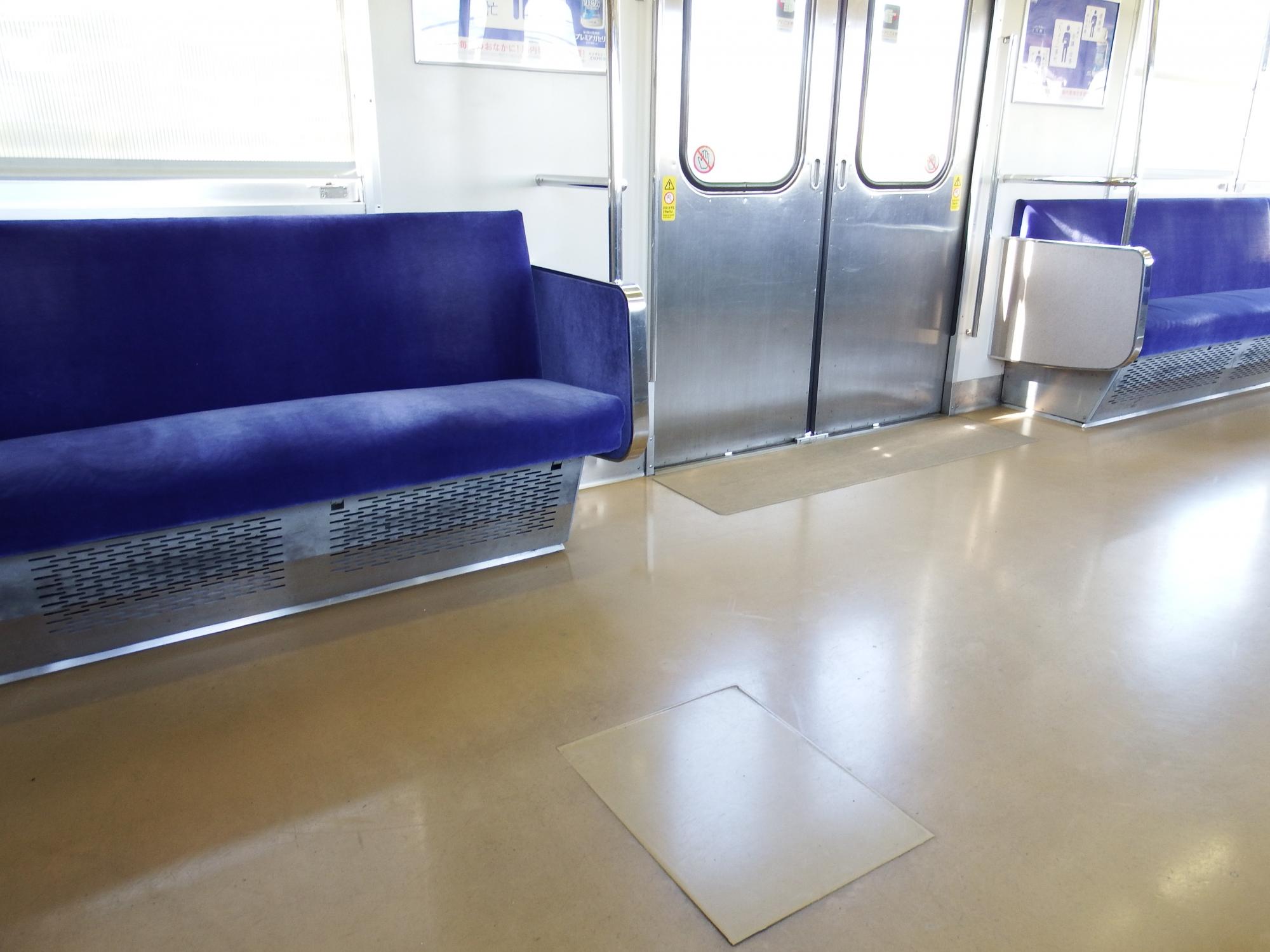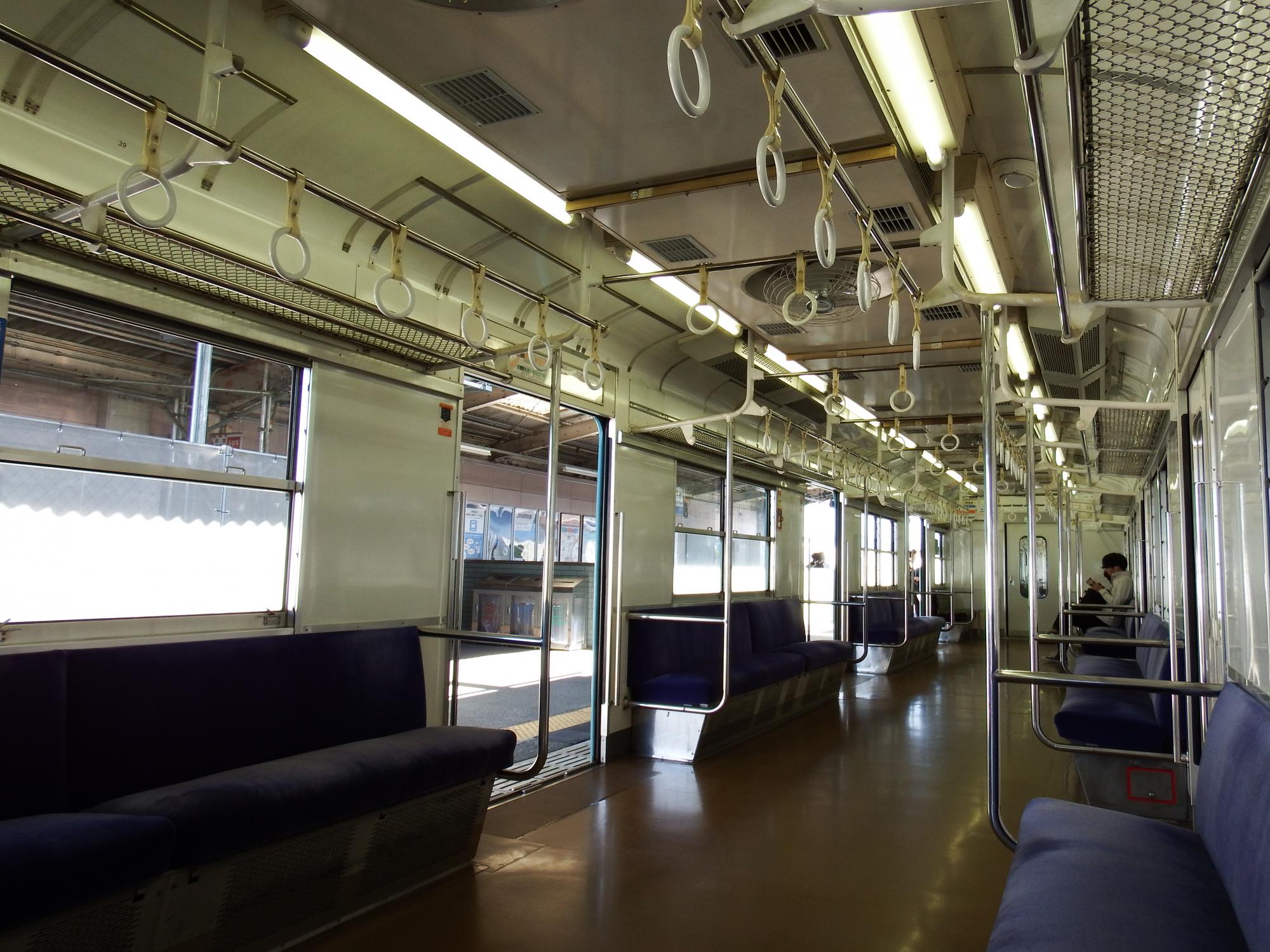 あえて2両目のモハ103-785の一番後ろに陣取って抵抗制御音をたっぷり楽しむことにします。床のモーター点検蓋は無くなっています。