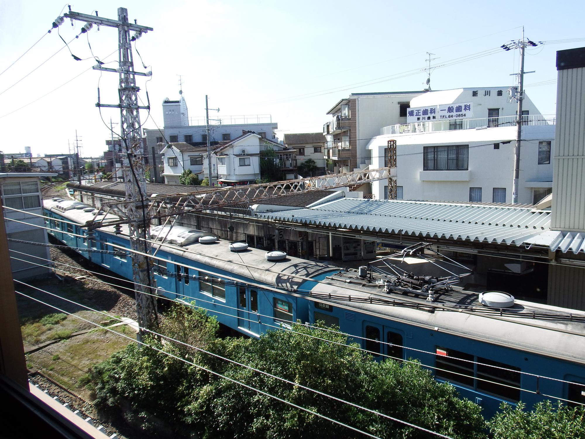 橋上駅舎から見た羽衣支線の電車、この眺めは記憶にあります。