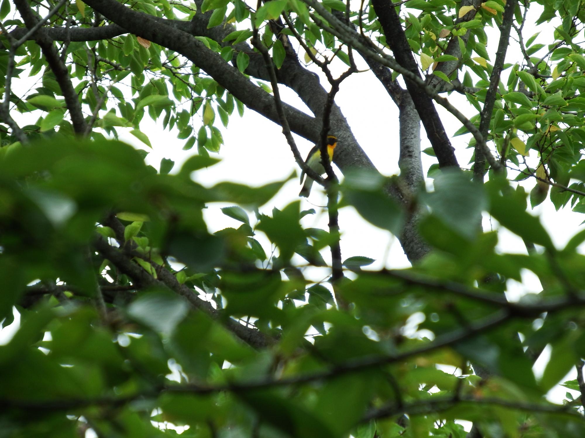 桜広場から梅林南端の林でキビタキ多数。上から見下ろす位置と真正面から。