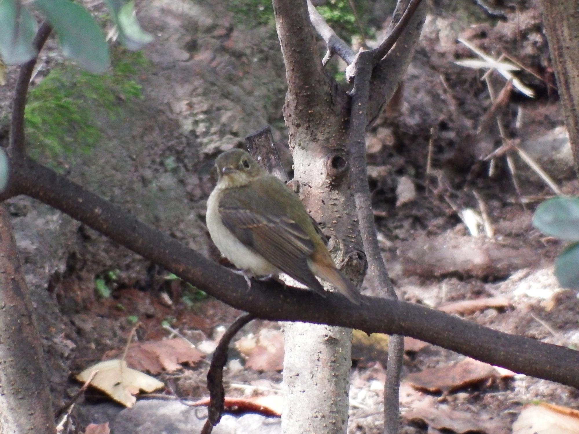 修道館裏のちょいと太目のキビタキ♀、まるでジョウビタキみたいに人馴れしている感じです。♂も見っけ。