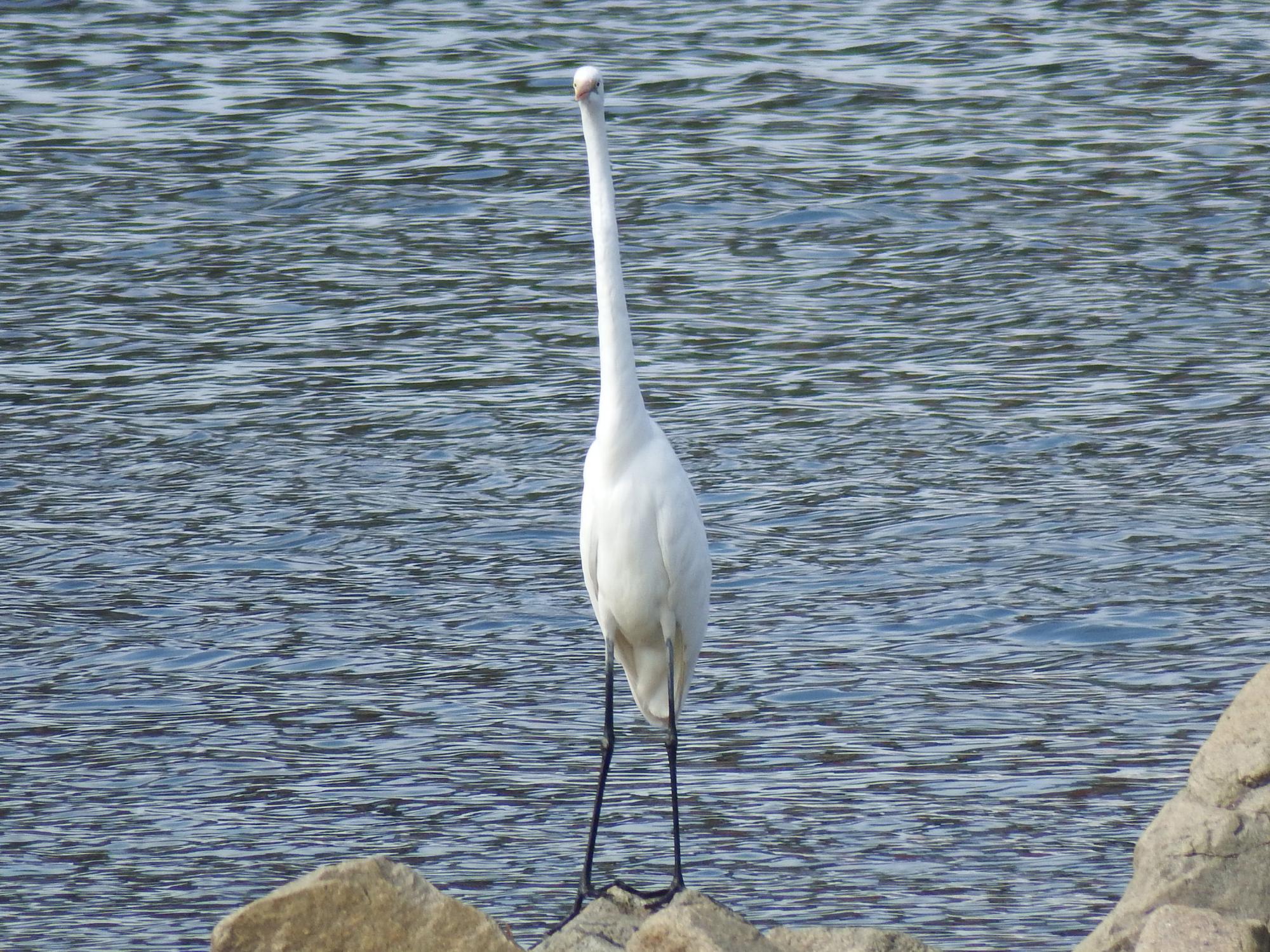 西の干潟へ移動、今日は他を廻るのを止め、干潟から頭を出した岩に座って、2時間くらいねばってみました。ダイサギとヒドリガモ一家。