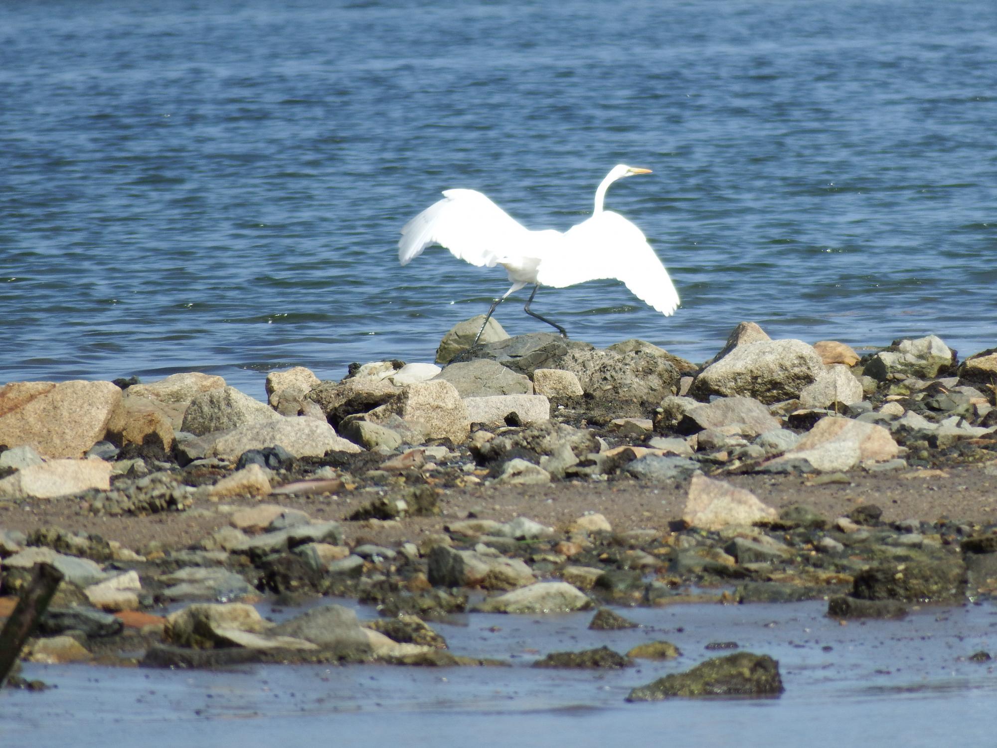 惜しい!ちょっとだけ羽が切れてしまいました。ダイサギ君は東の干潟とこっちの干潟を行ったり来たり。