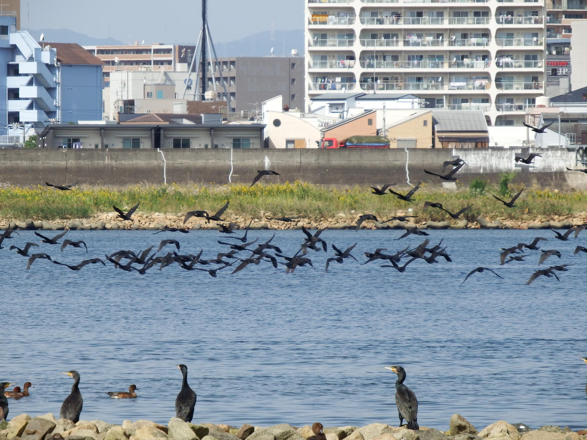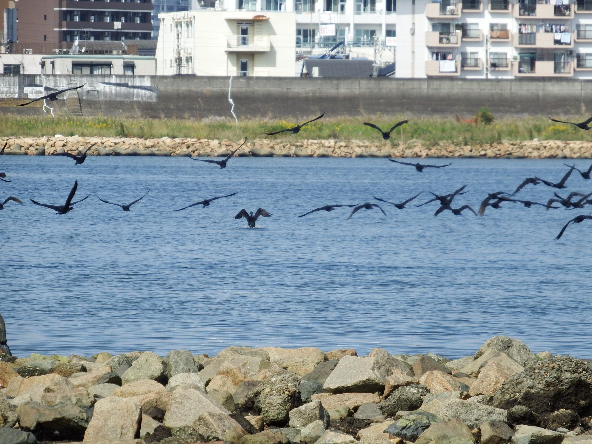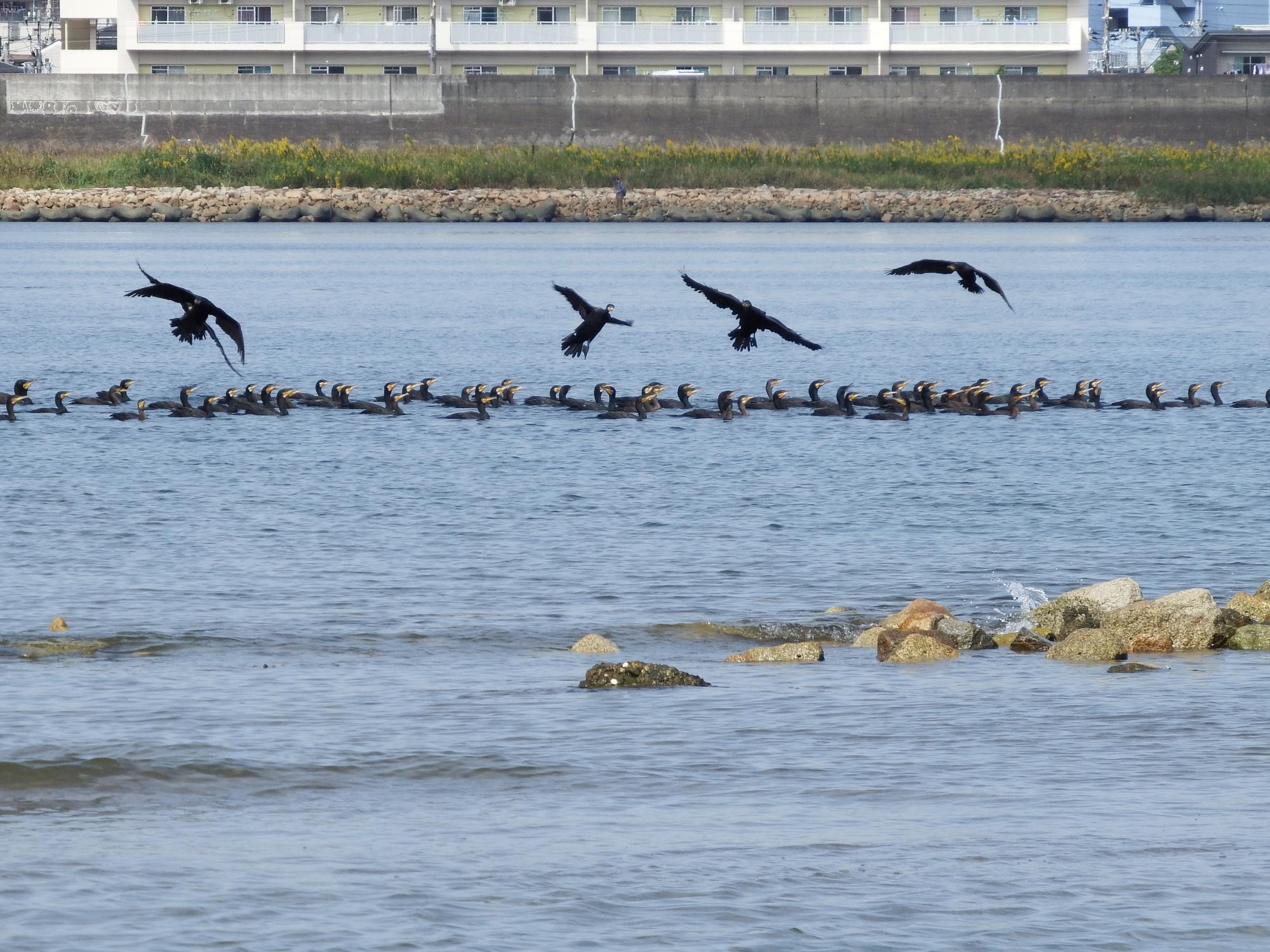 ミーティングが始まってから約20分、カワウたちは一斉に飛び立ちました。