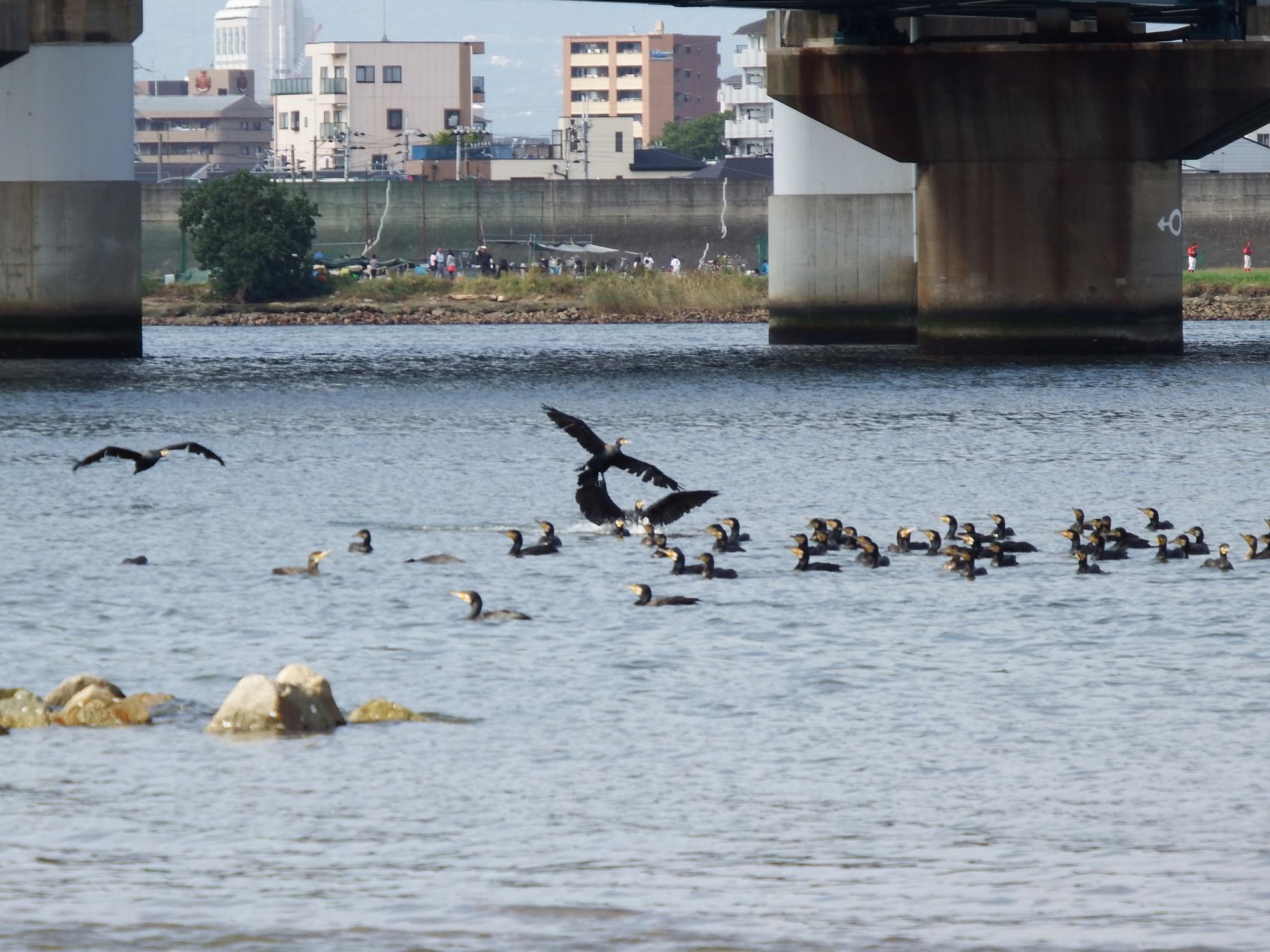 バタバタっとカワウの大軍団が目の前に下りてきました。