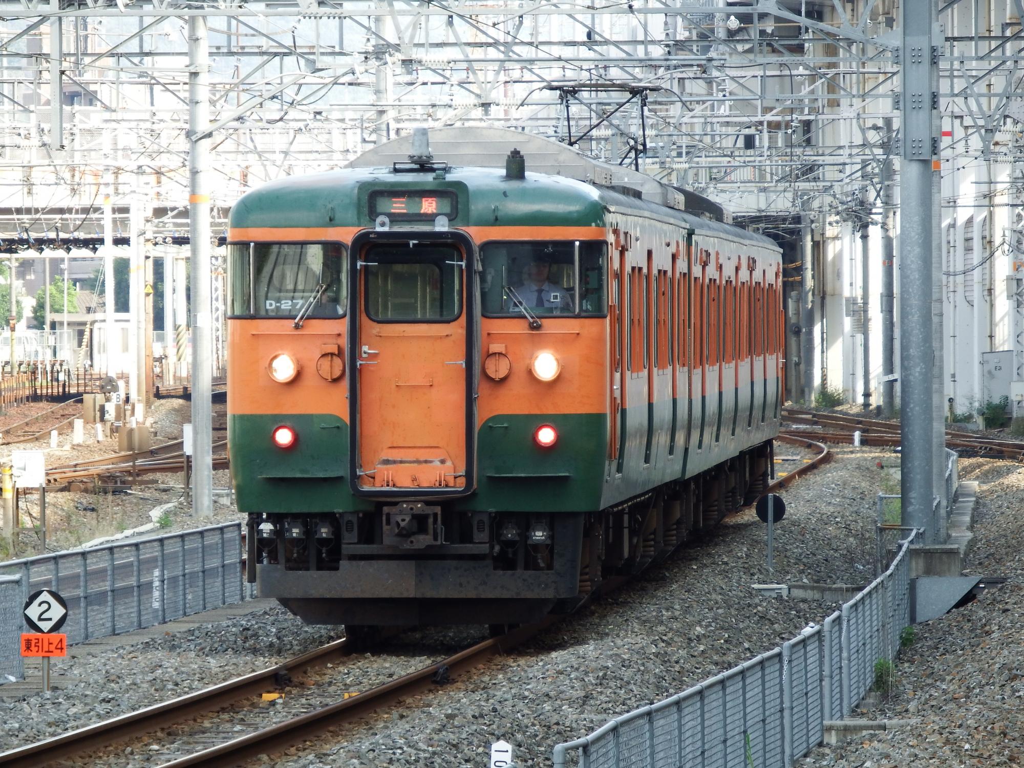 うほっ、湘南色の115系。クハ115-410を先頭にしたD-27編成で、この他にD-26編成の2編成だけが湘南色で残っている模様。