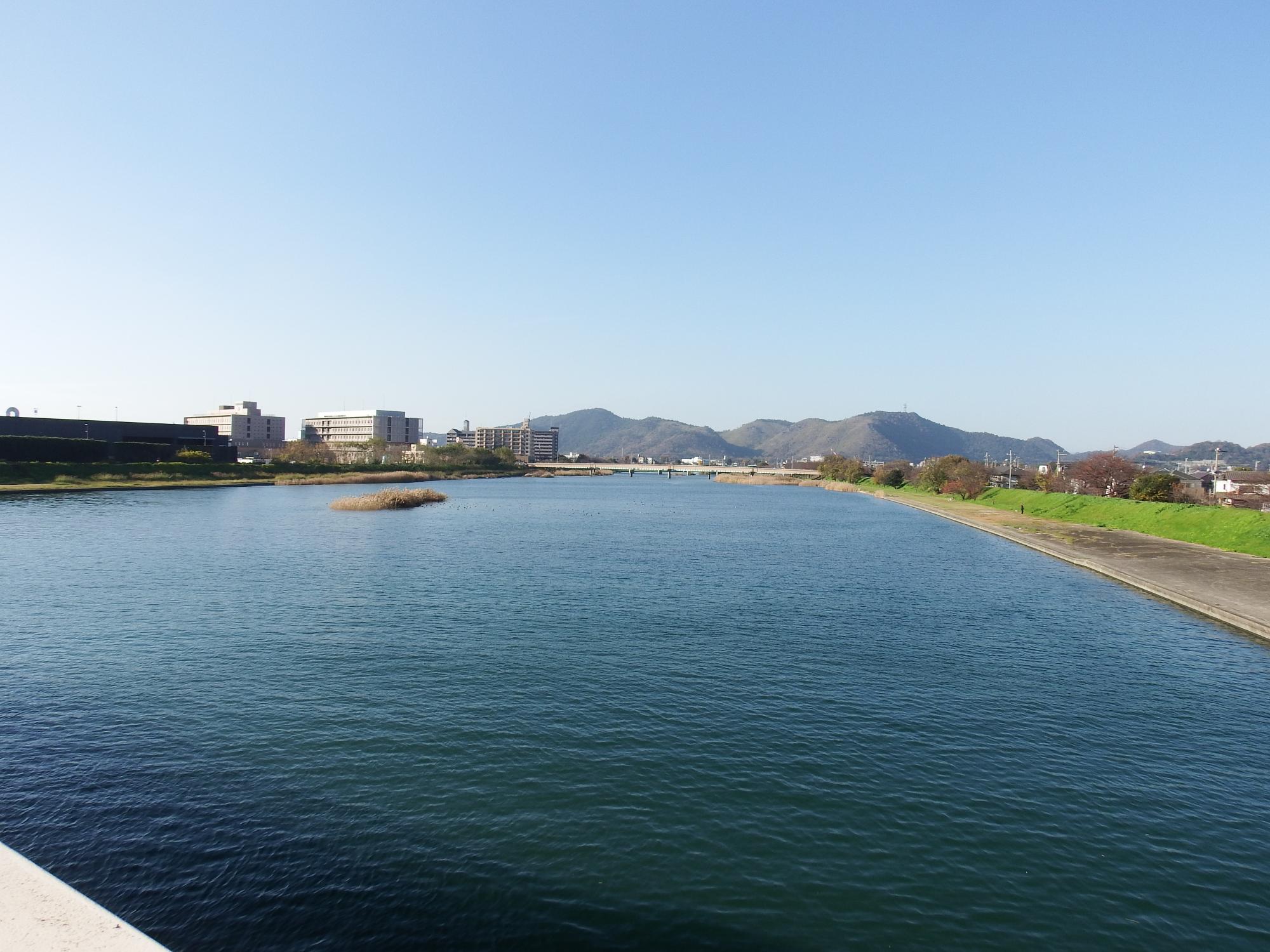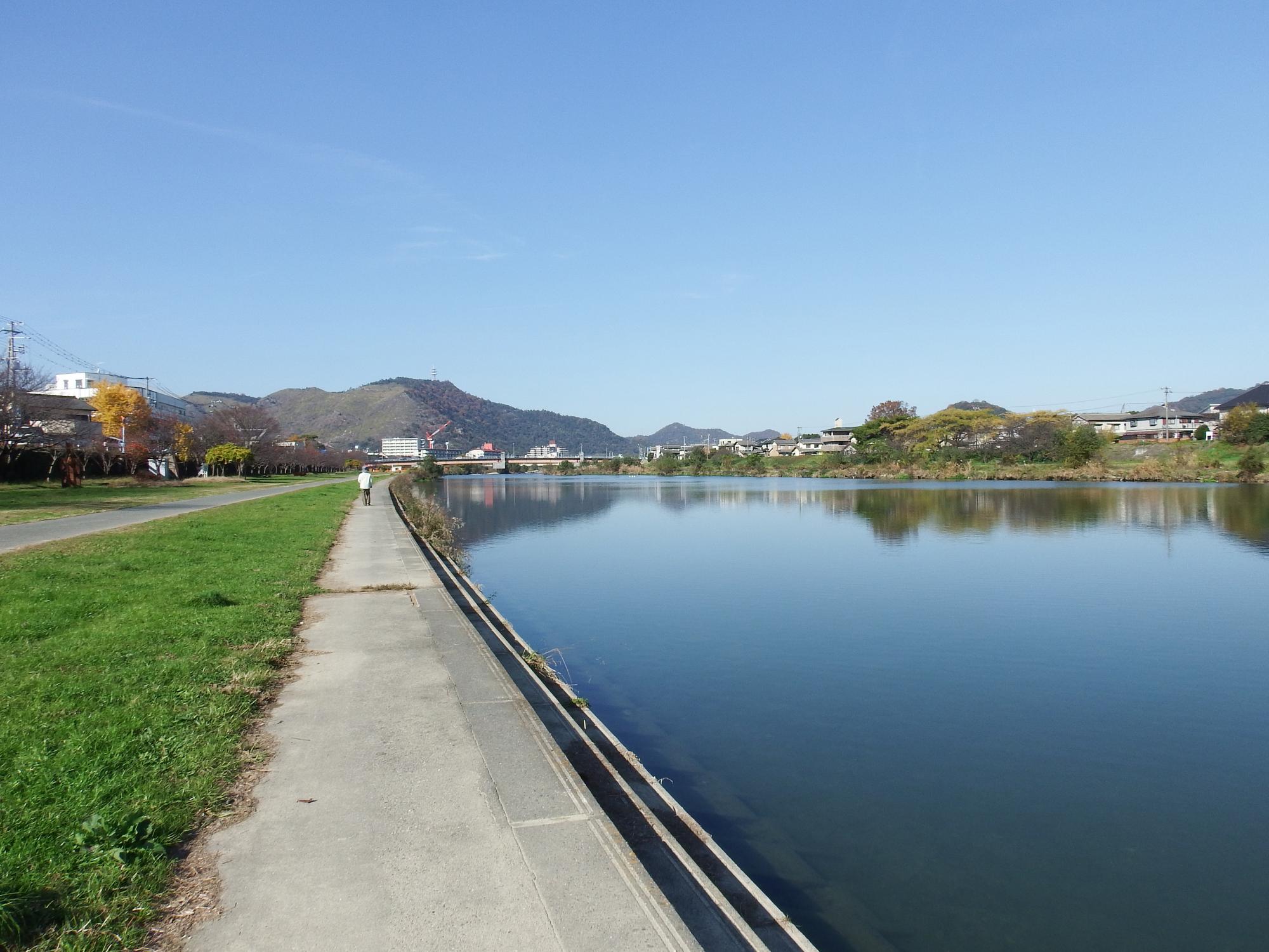 この辺りから川幅が広くなり、河原や中州も無くなって、僅か数百メートルで全然違った表情を見せる夢前川です。
