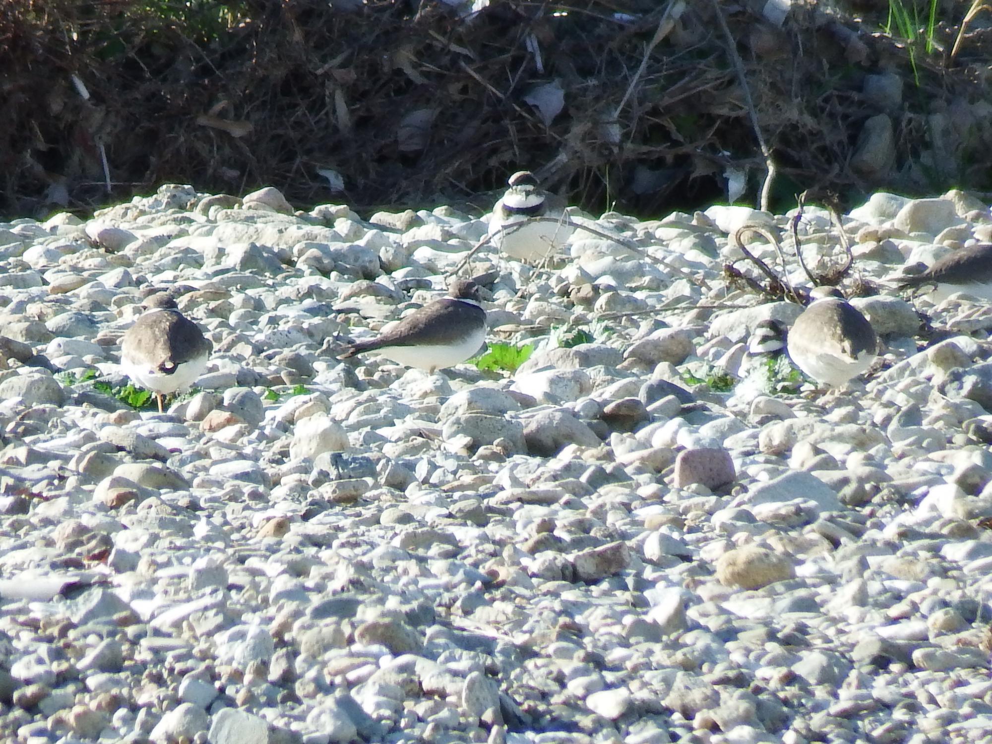 イカルチドリが5羽、いや6羽、殆ど擬態です。その前に出てきたのはコガモ♀かと。