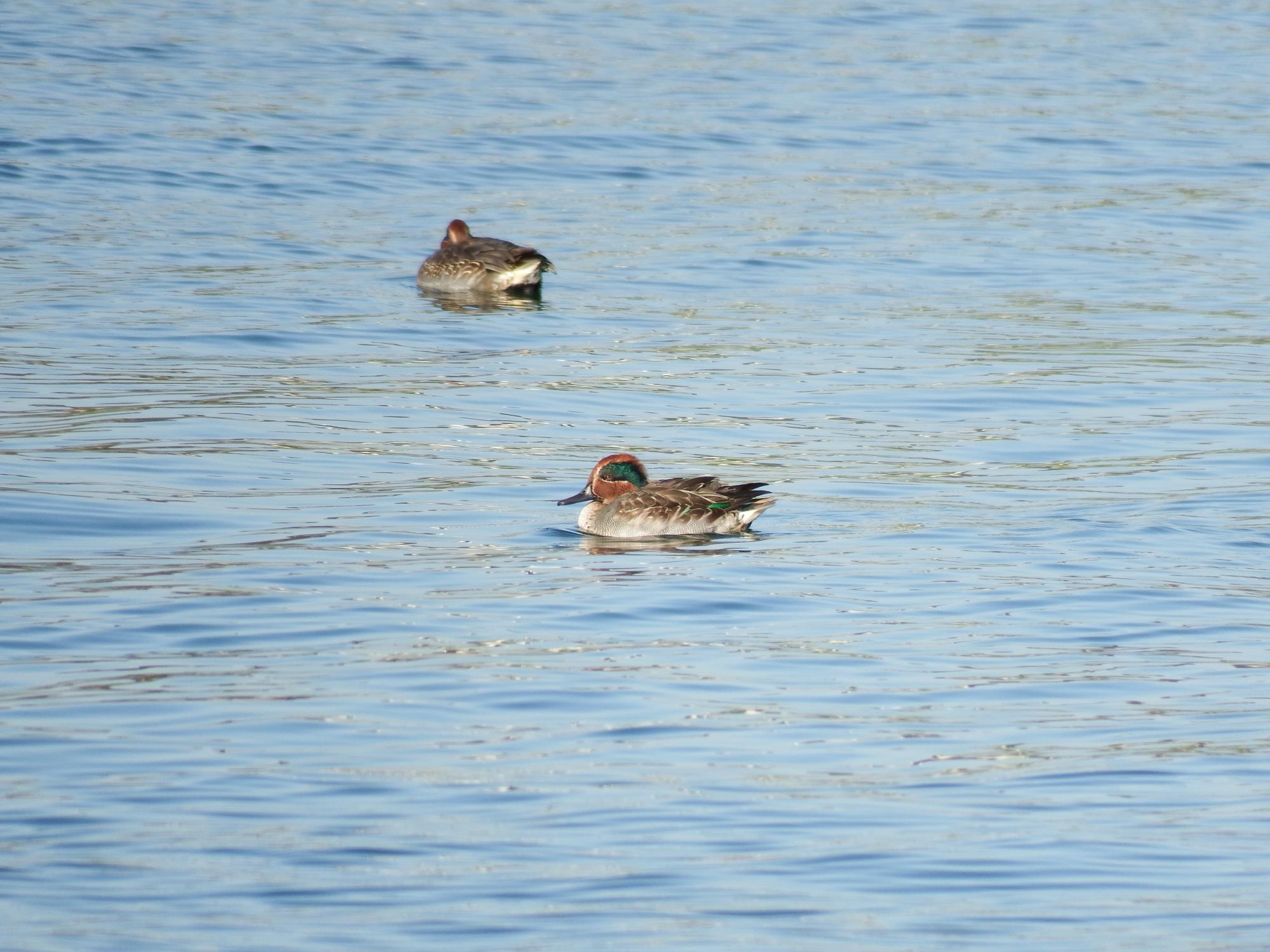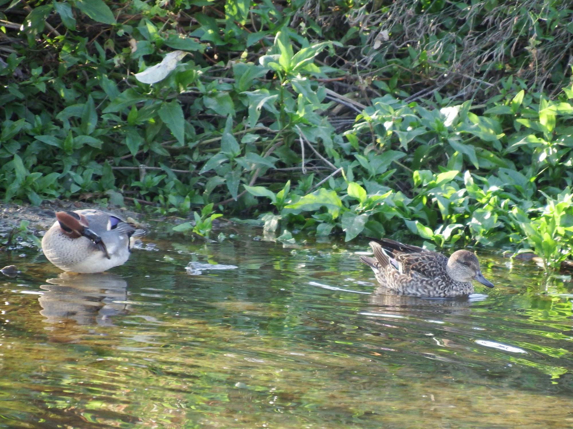 コガモとハシビロガモ。