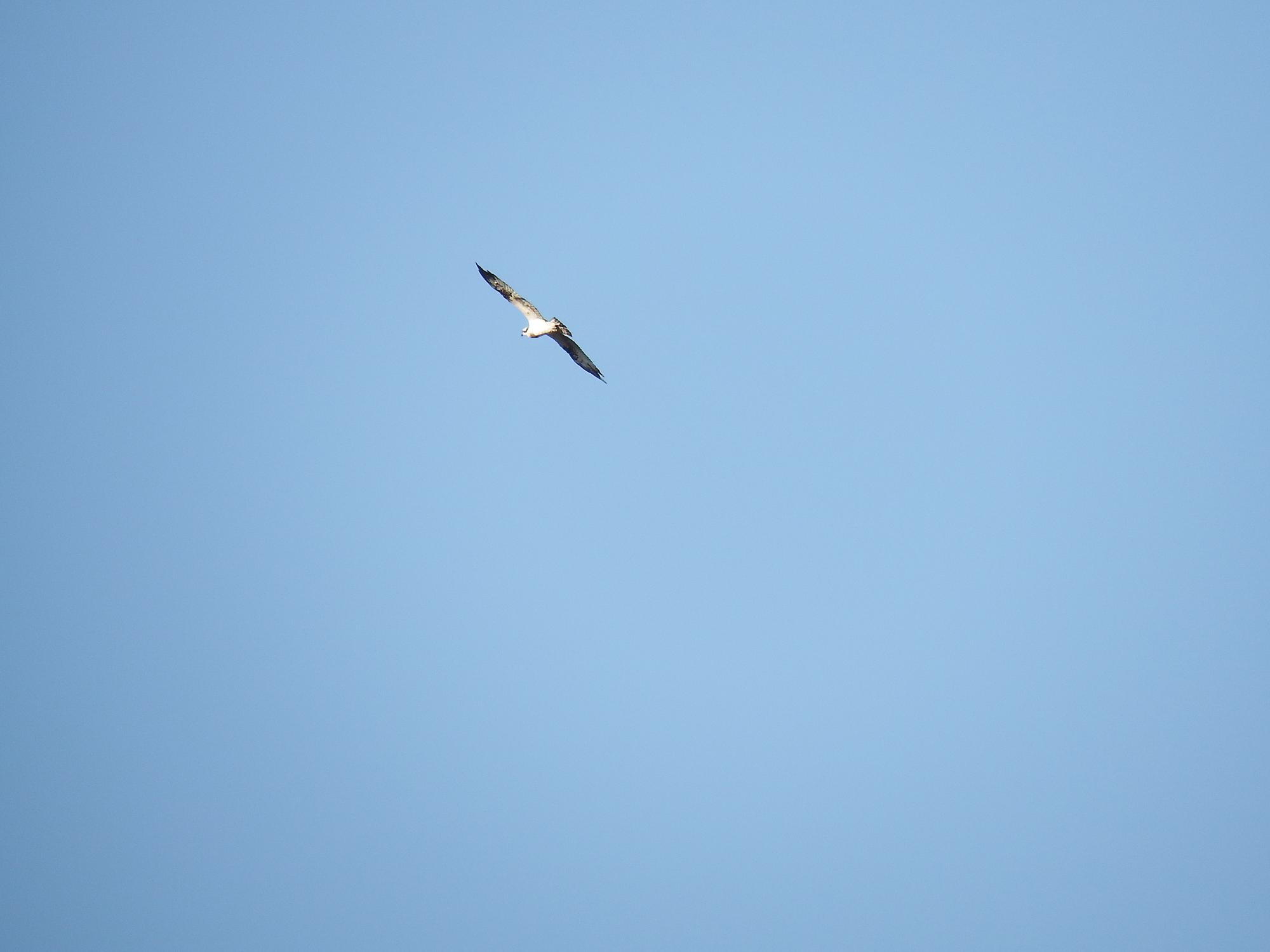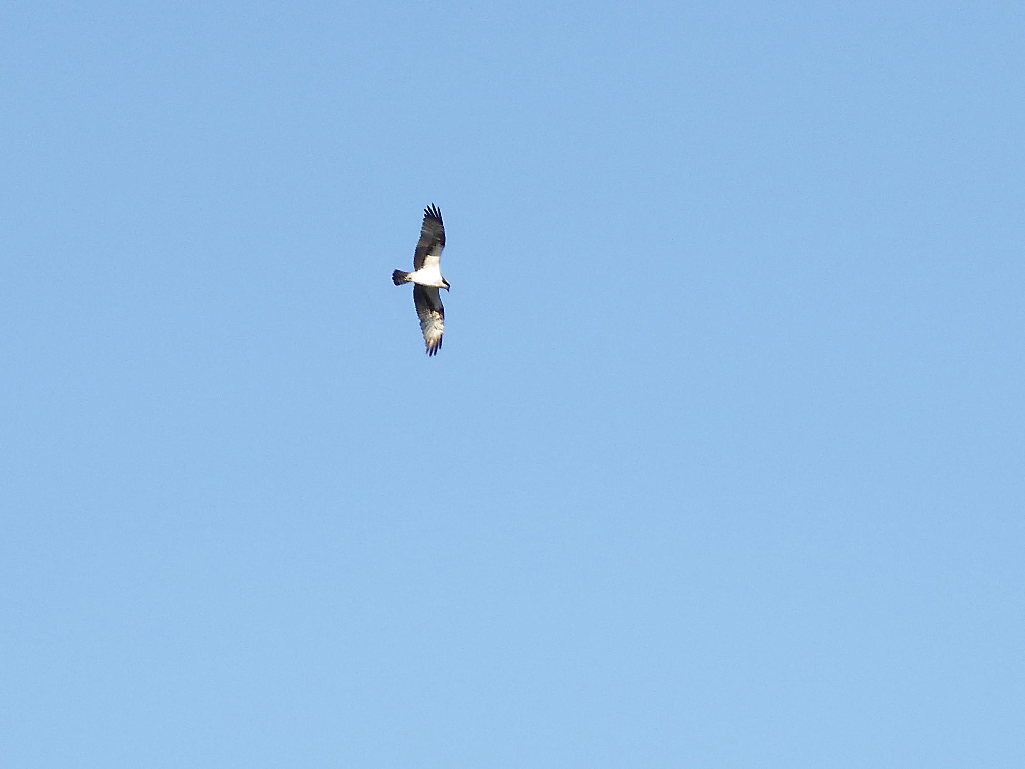 期待していたミサゴが登場、出遅れて既に日が傾いて来たのが正解だったようです。河口の製鉄所の煙突の方へ去って行きましたが、戻って来そうです。
