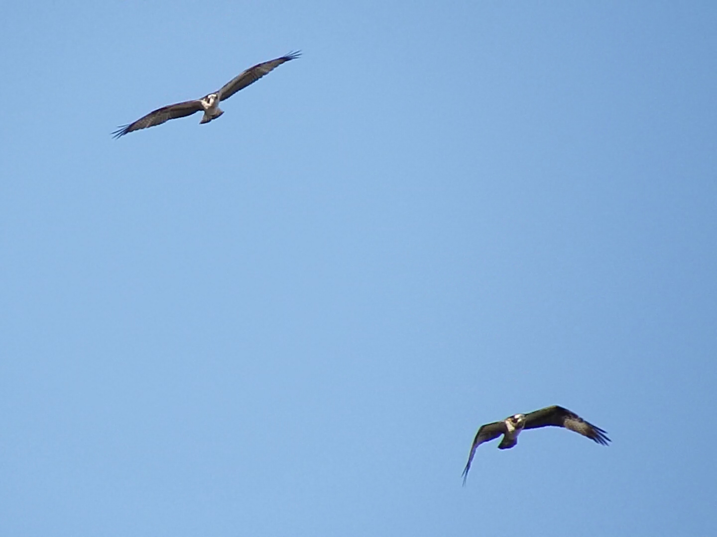 駅近くで粘っていたら、やっぱり戻ってきました。それも2羽、複数のミサゴを見るのは初めて。