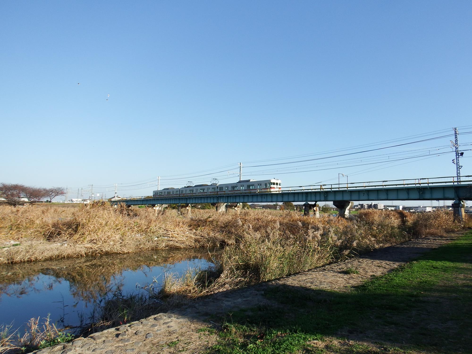 夢前川駅から右岸の土手へ直結していて、河川敷に下りることができます。阪神淀川駅や阪堺大和川駅より川に近く、いかにも色んな鳥がいそうな、鳥鉄には理想的な環境です。