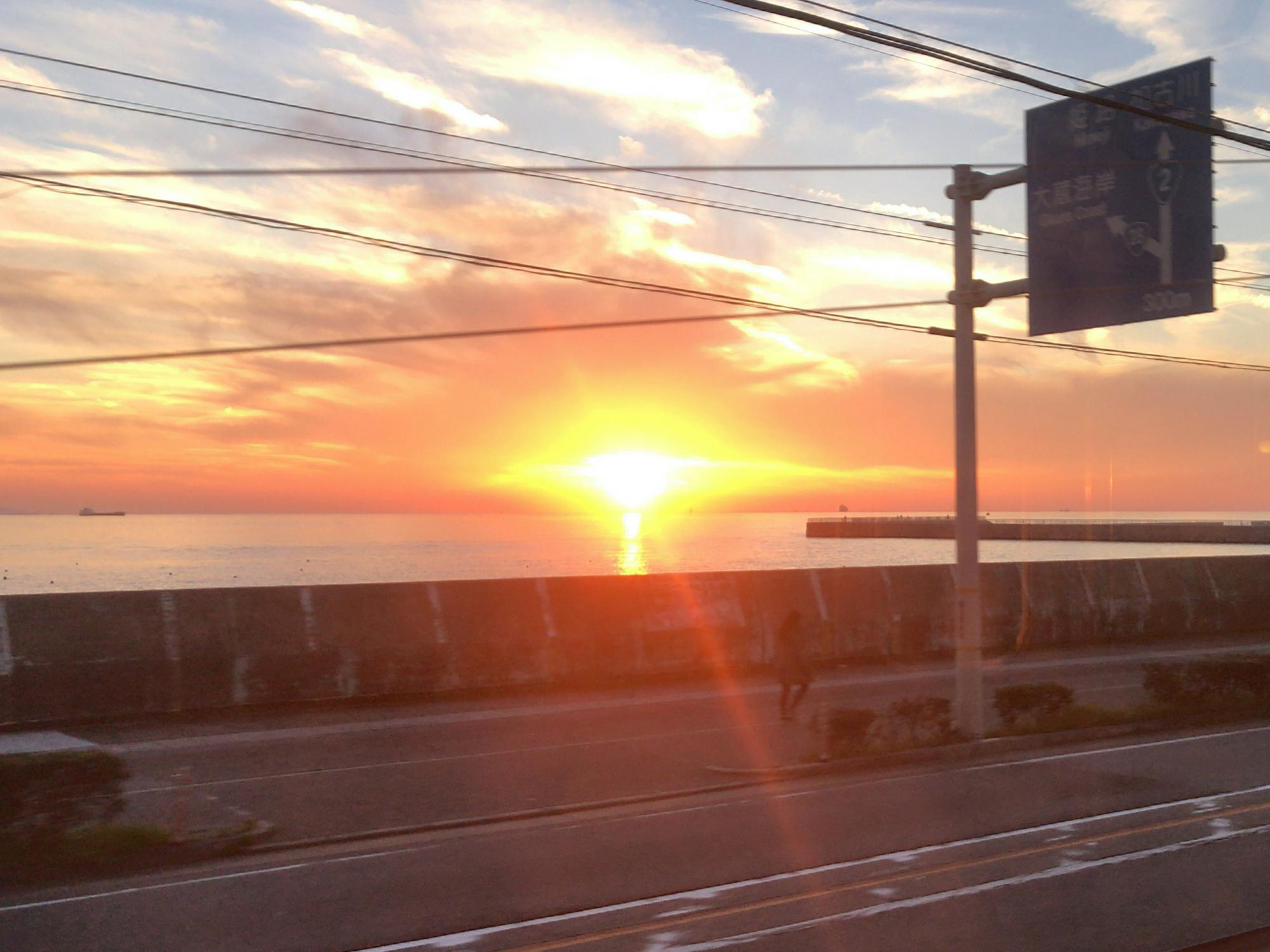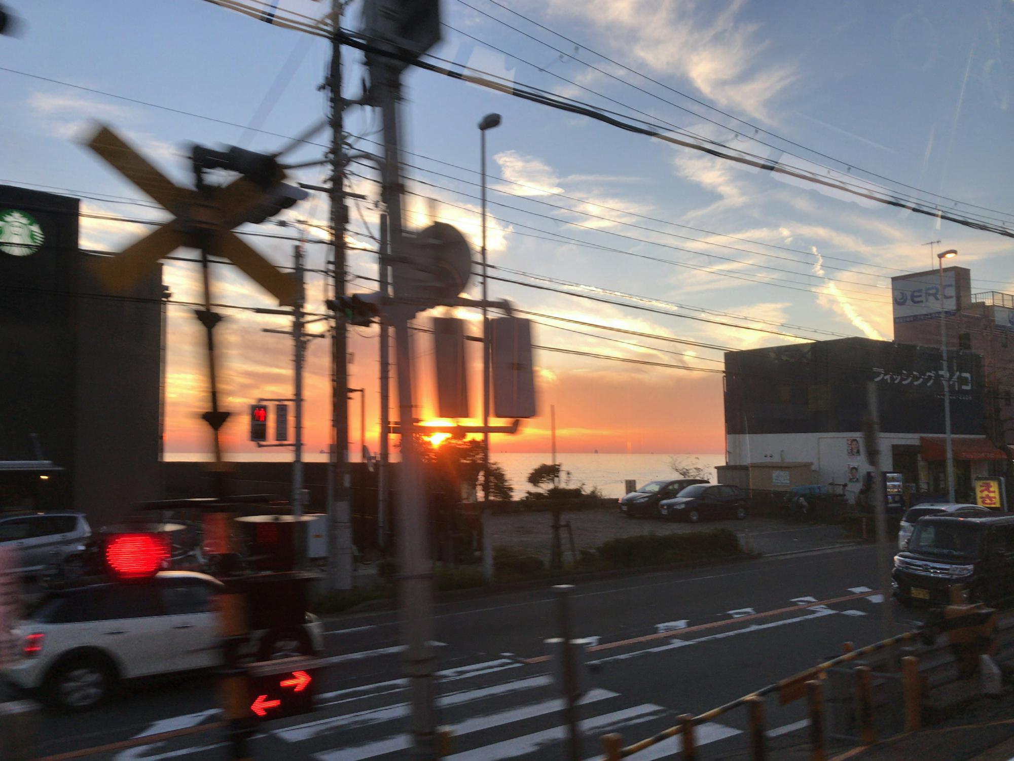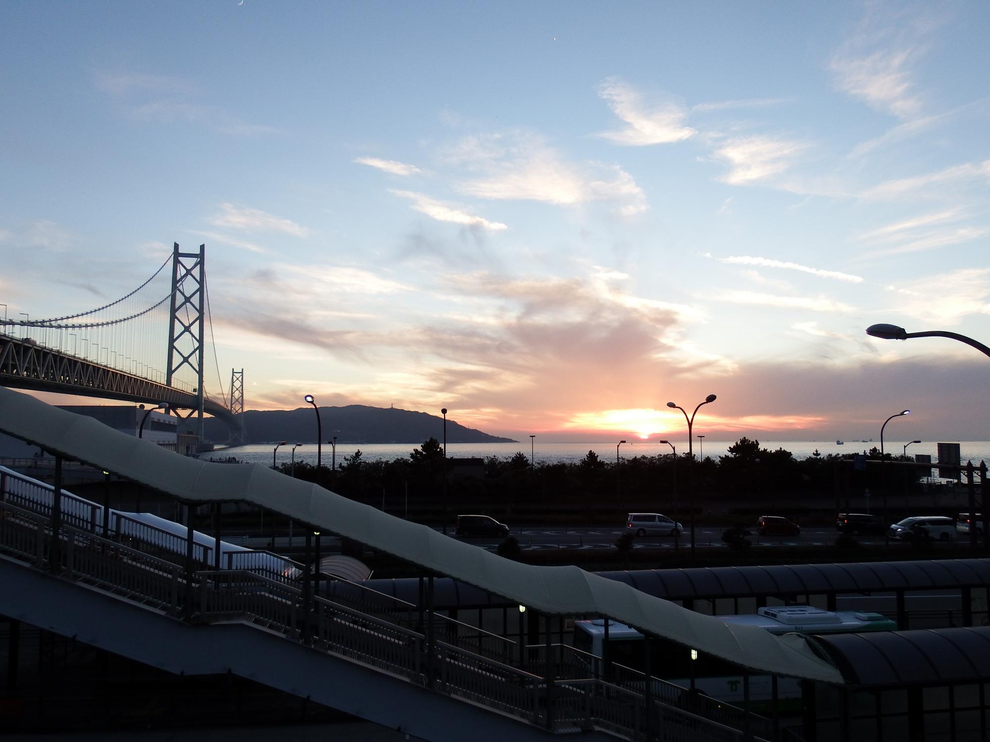 明石を過ぎて舞子付近で夕日が海に沈んで行きます。慌てて舞子公園で下車。
