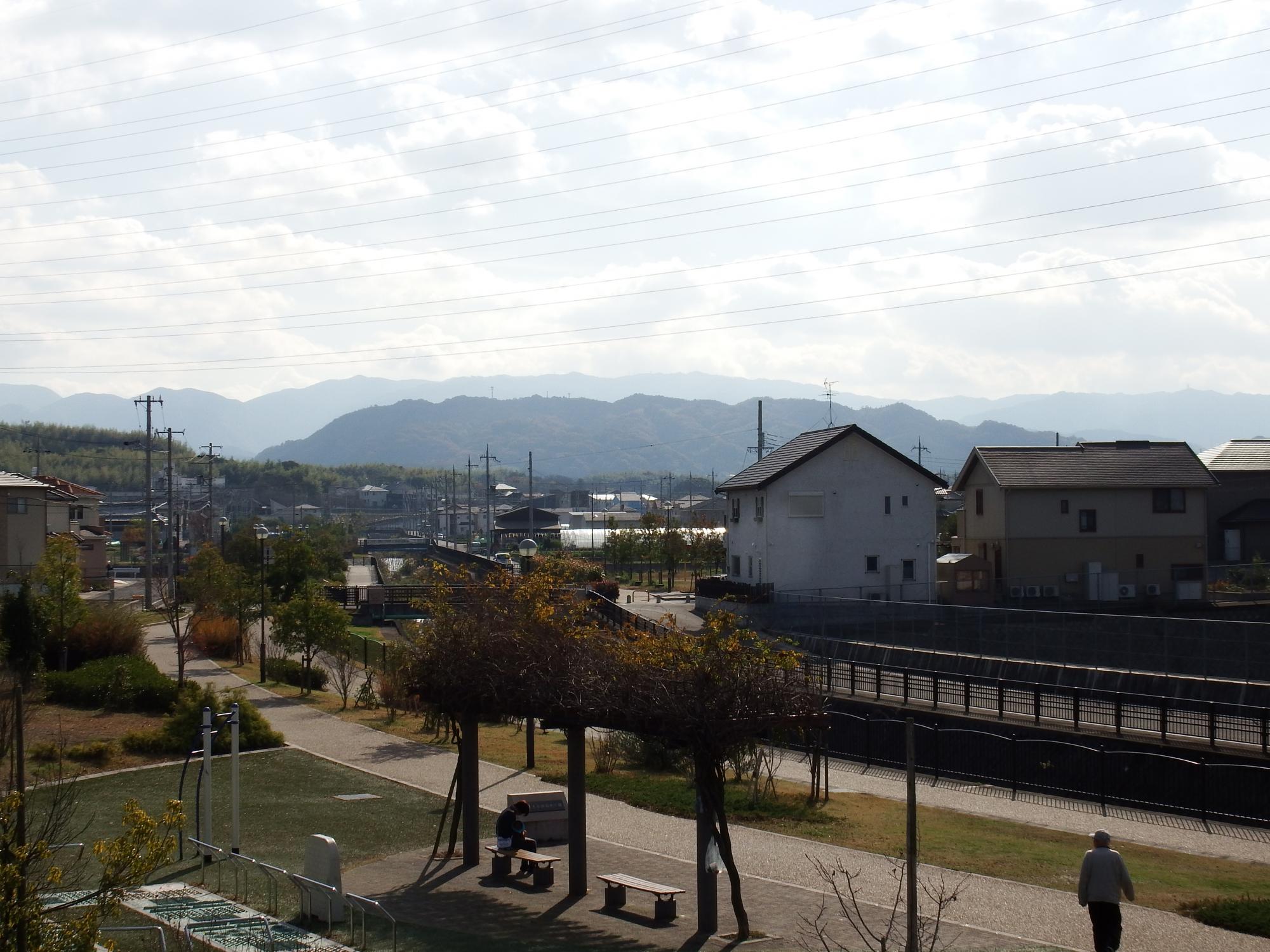 久米田池です。金剛山と大和葛城山も見えます。何気なく撮ったら、カイツブリが6羽、先頭はハジロカイツブリかな。