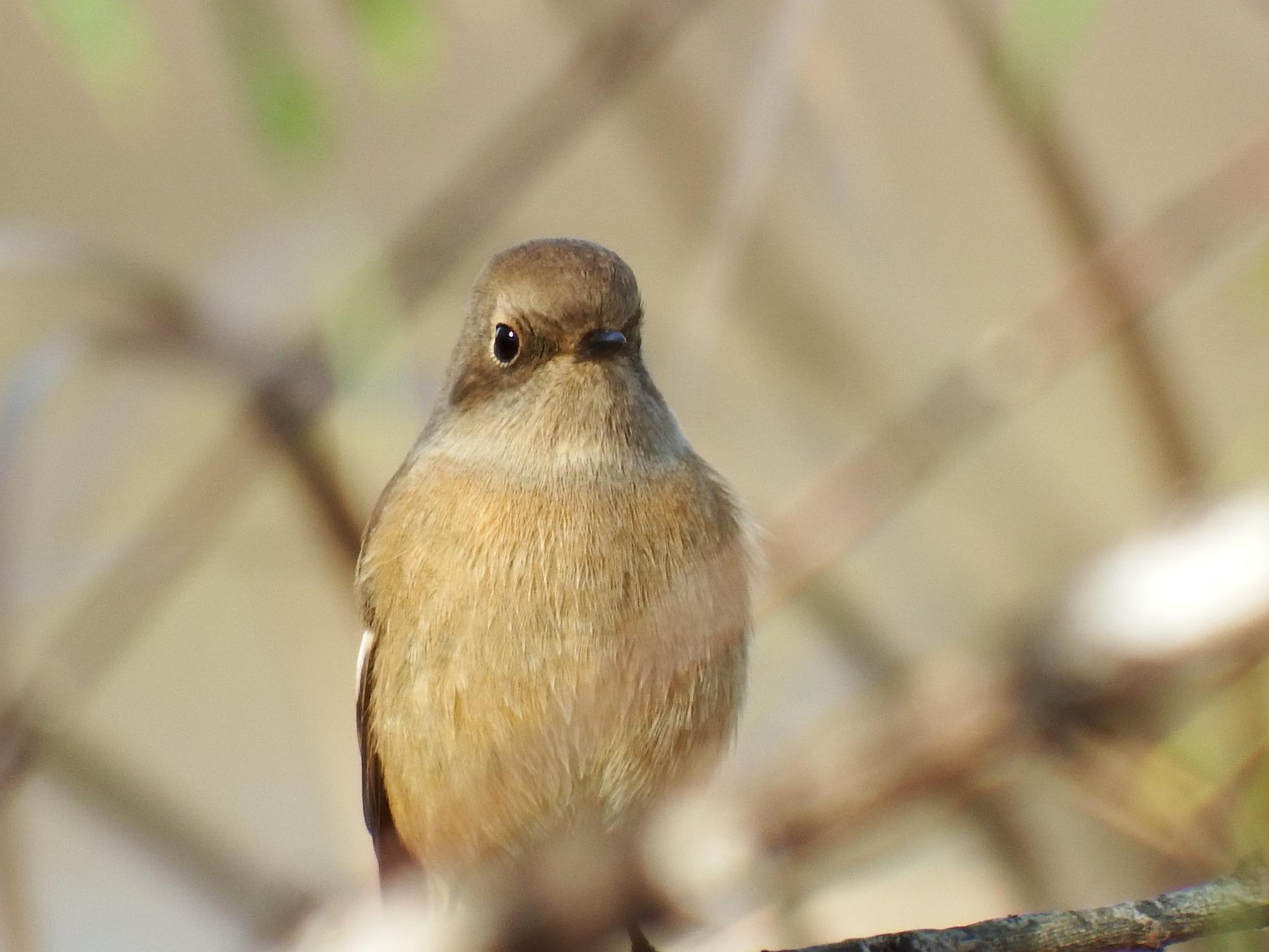 ジ、ジ、ジ、とジョウビタキの地鳴き、見つけたと思ったら、近くの別の枝へ。それを何回も繰り返し、自分はかくれんぼの鬼さんになっていることに気づきました。かなり美形のお嬢さんです。