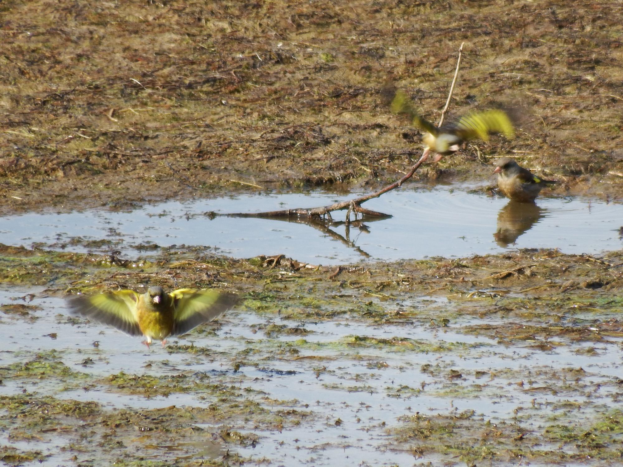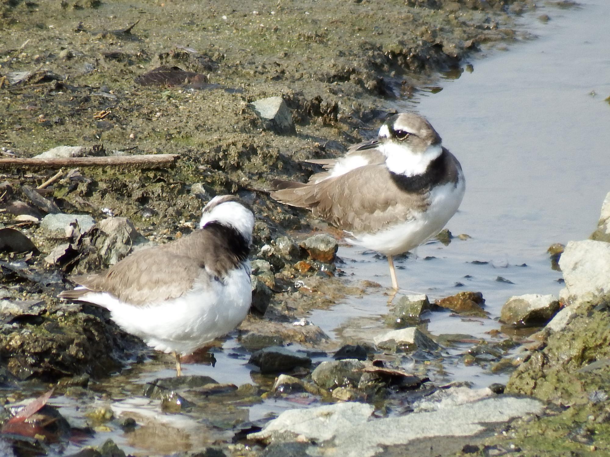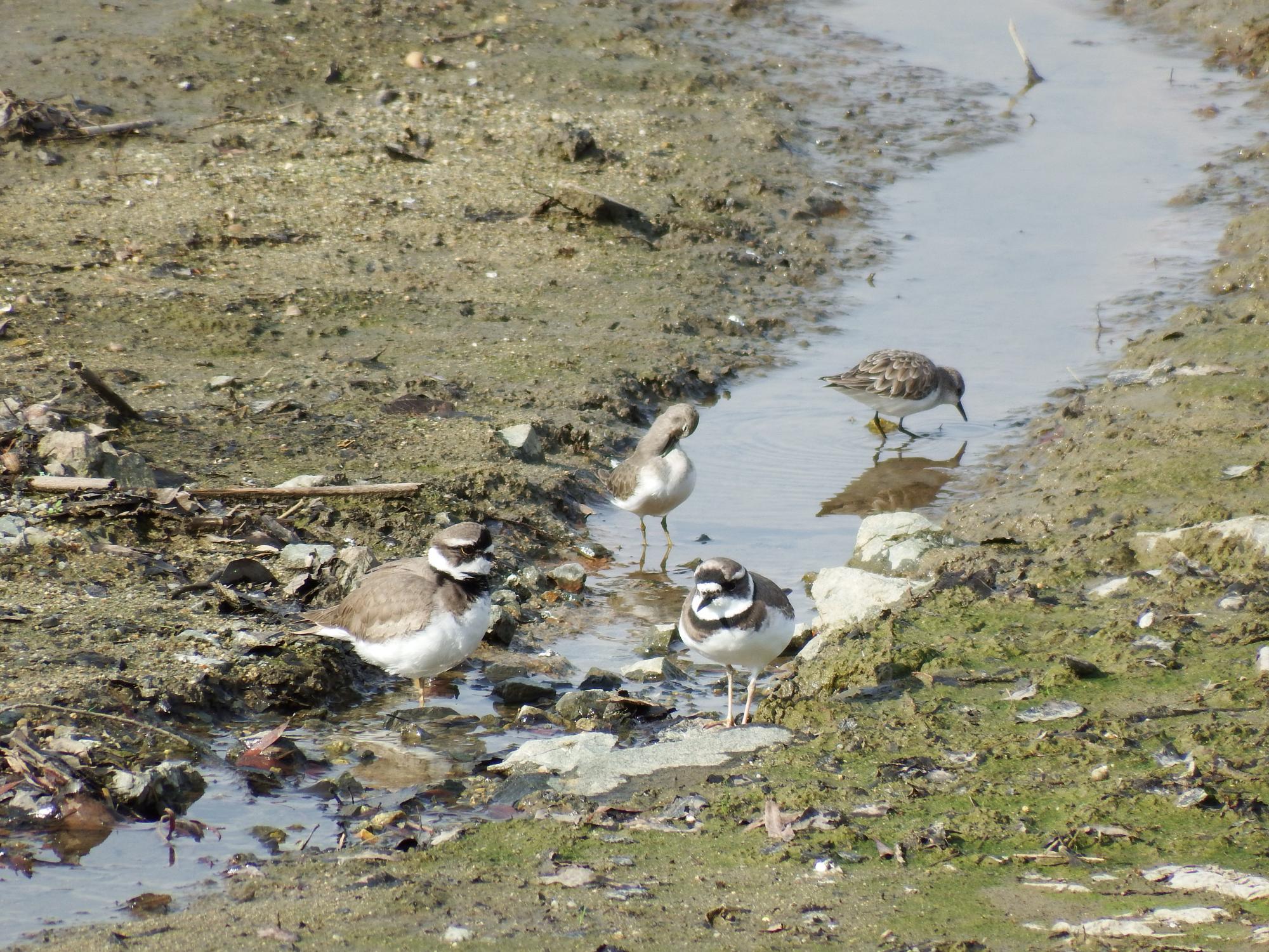 細いクリークのこちら側、自分の足元あたりからチョロチョロと水が流れ込んでいます。警戒心ゼロでのんびり寛いでいる鳥たちです。