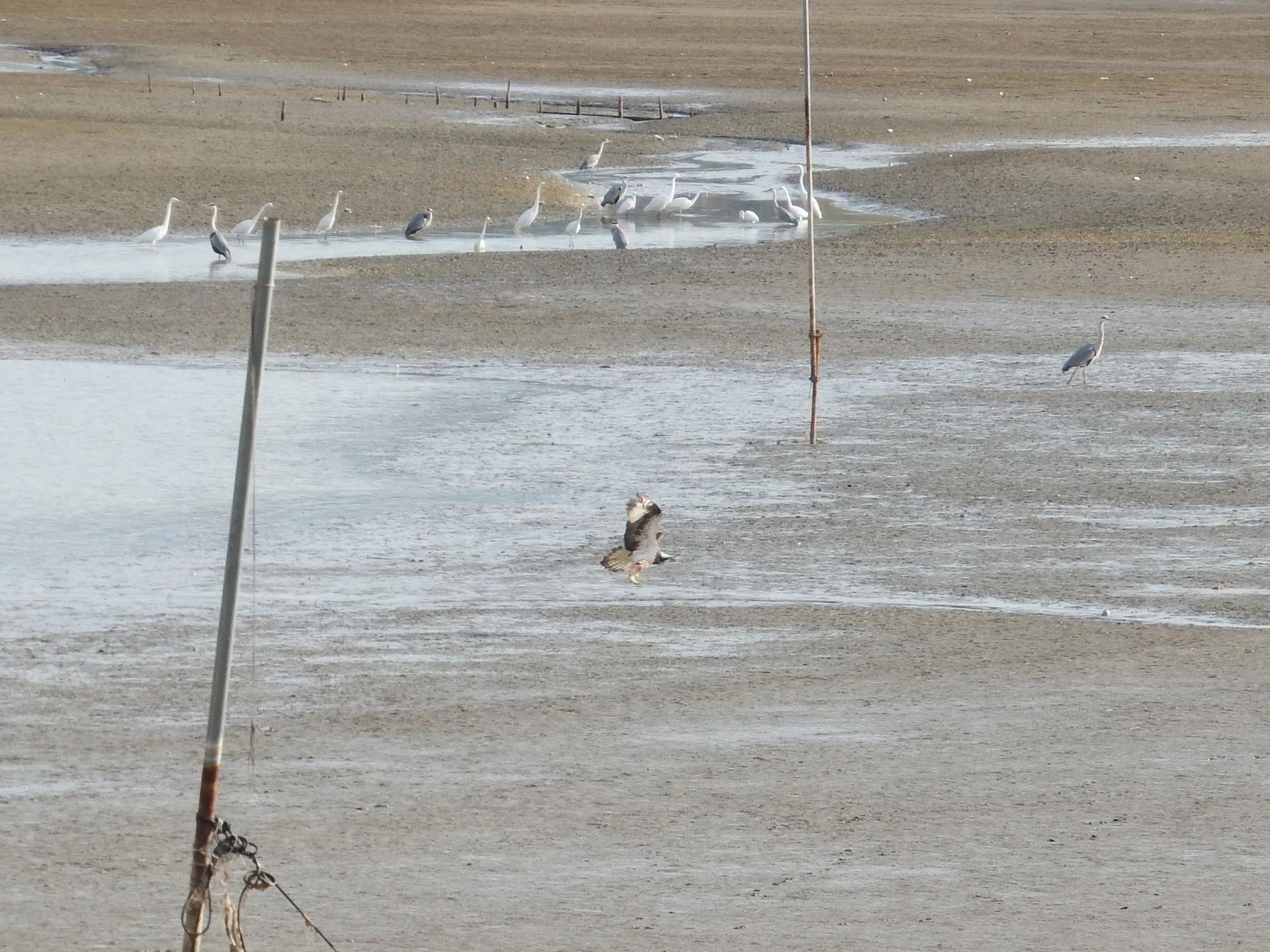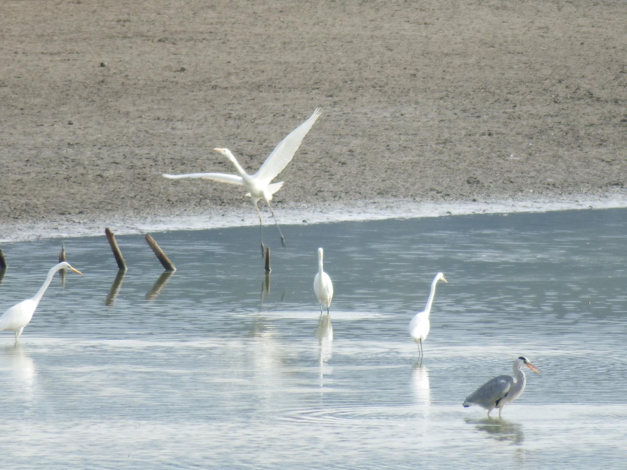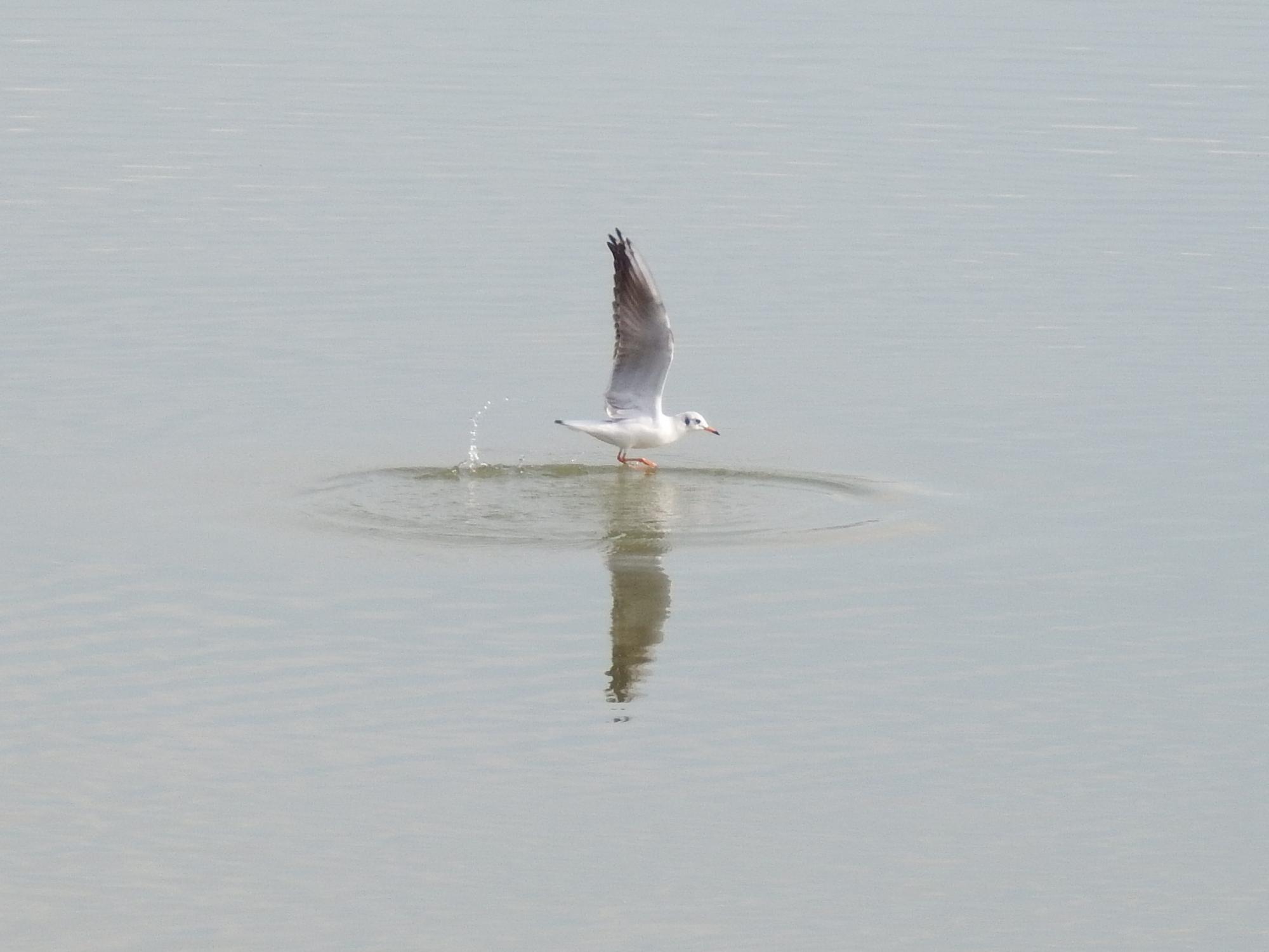 着水じゃなくてい猟をしているユリカモメ、水たまりにはまだ魚がたくさんいそうです。鳥たちが暮らしやすいように水量が調整されているように思います。
