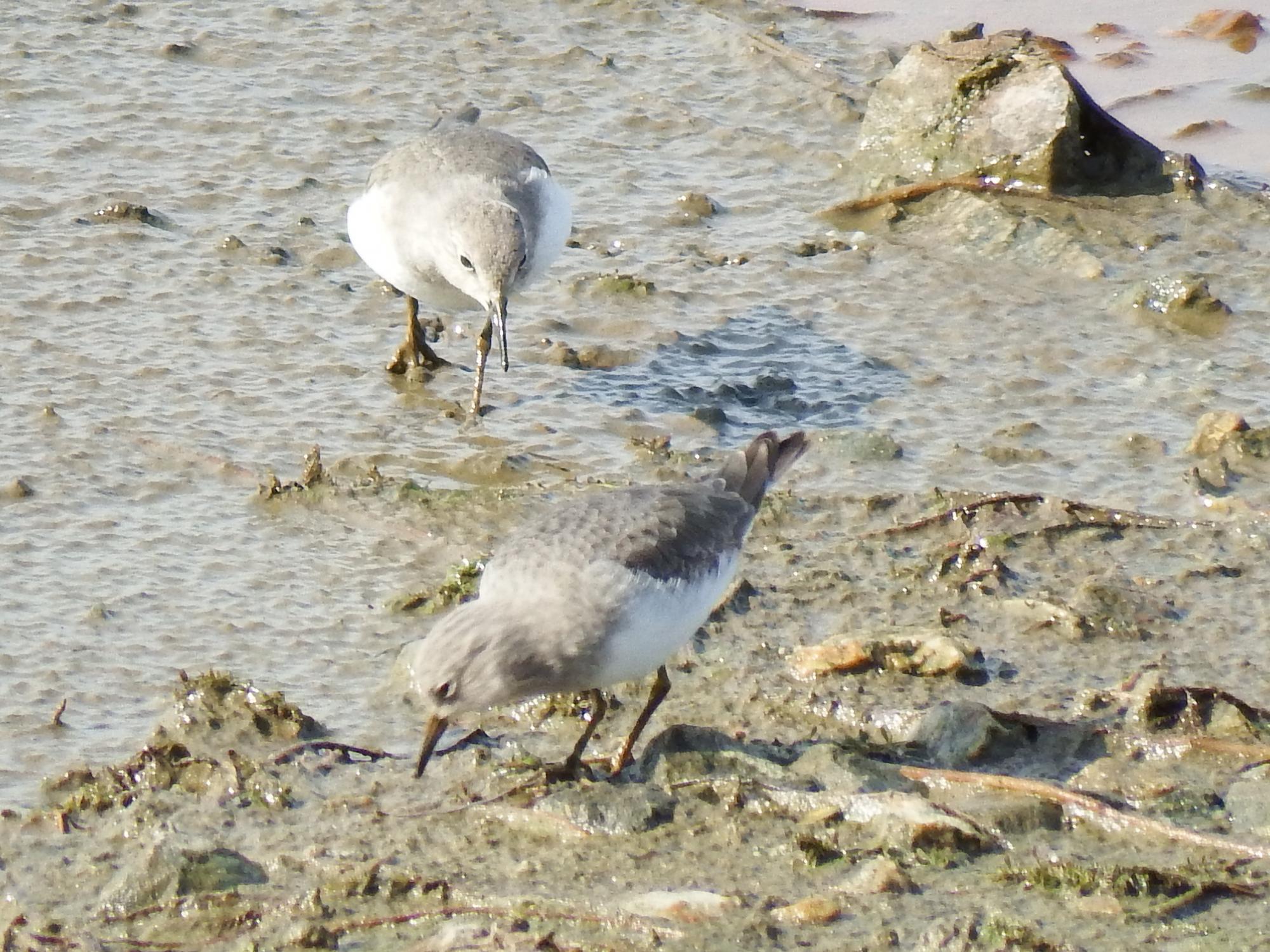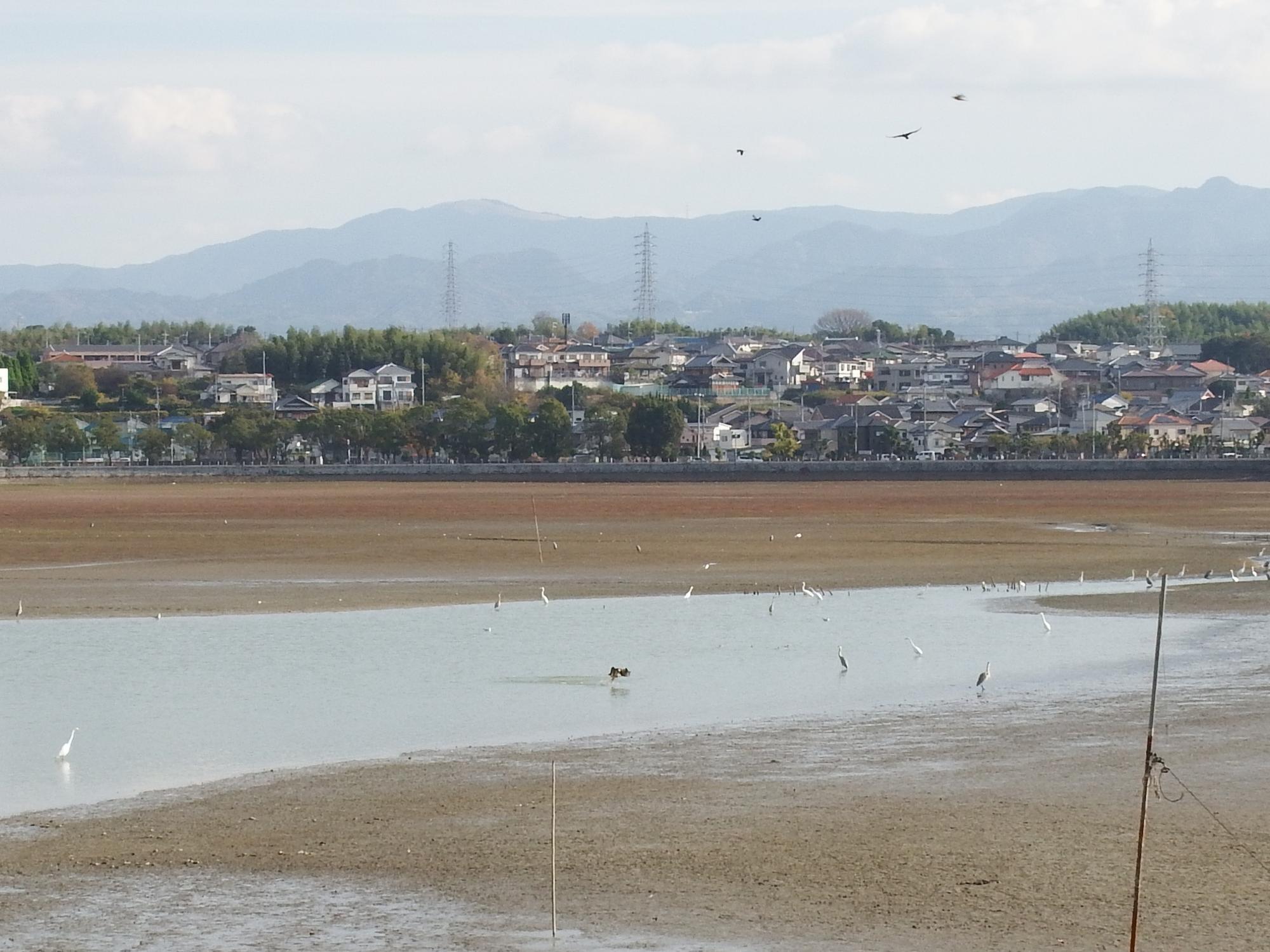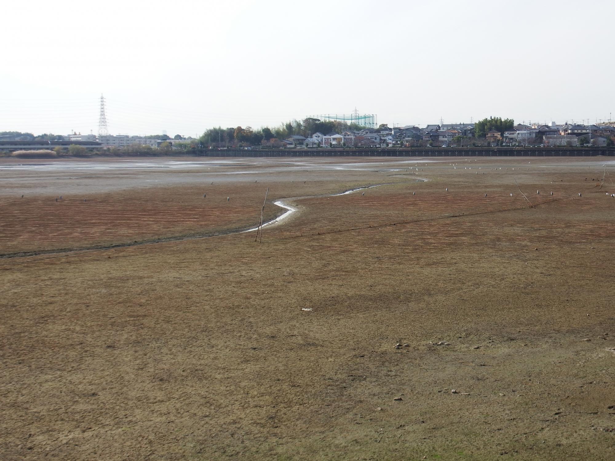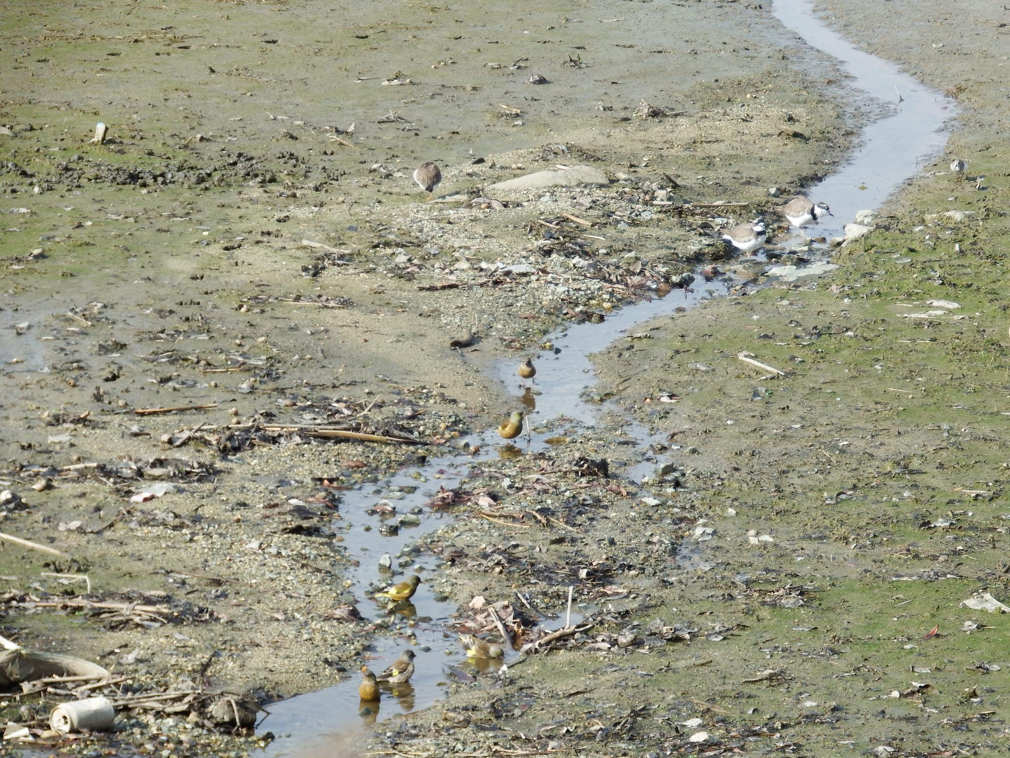 着水じゃなくてい猟をしているユリカモメ、水たまりにはまだ魚がたくさんいそうです。鳥たちが暮らしやすいように水量が調整されているように思います。