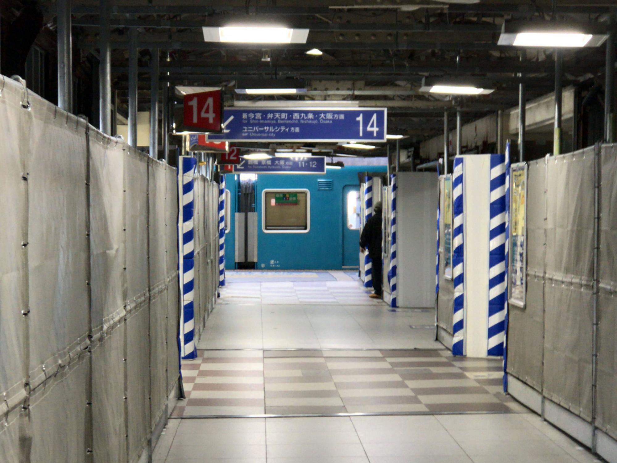 103系でのんびり行きたいところですが、そうもいかないので関空/紀州路快速にします。東口からまっすぐ跨線橋の先に見える青い車体。15番線ホームから行き交う201系をパチリ。