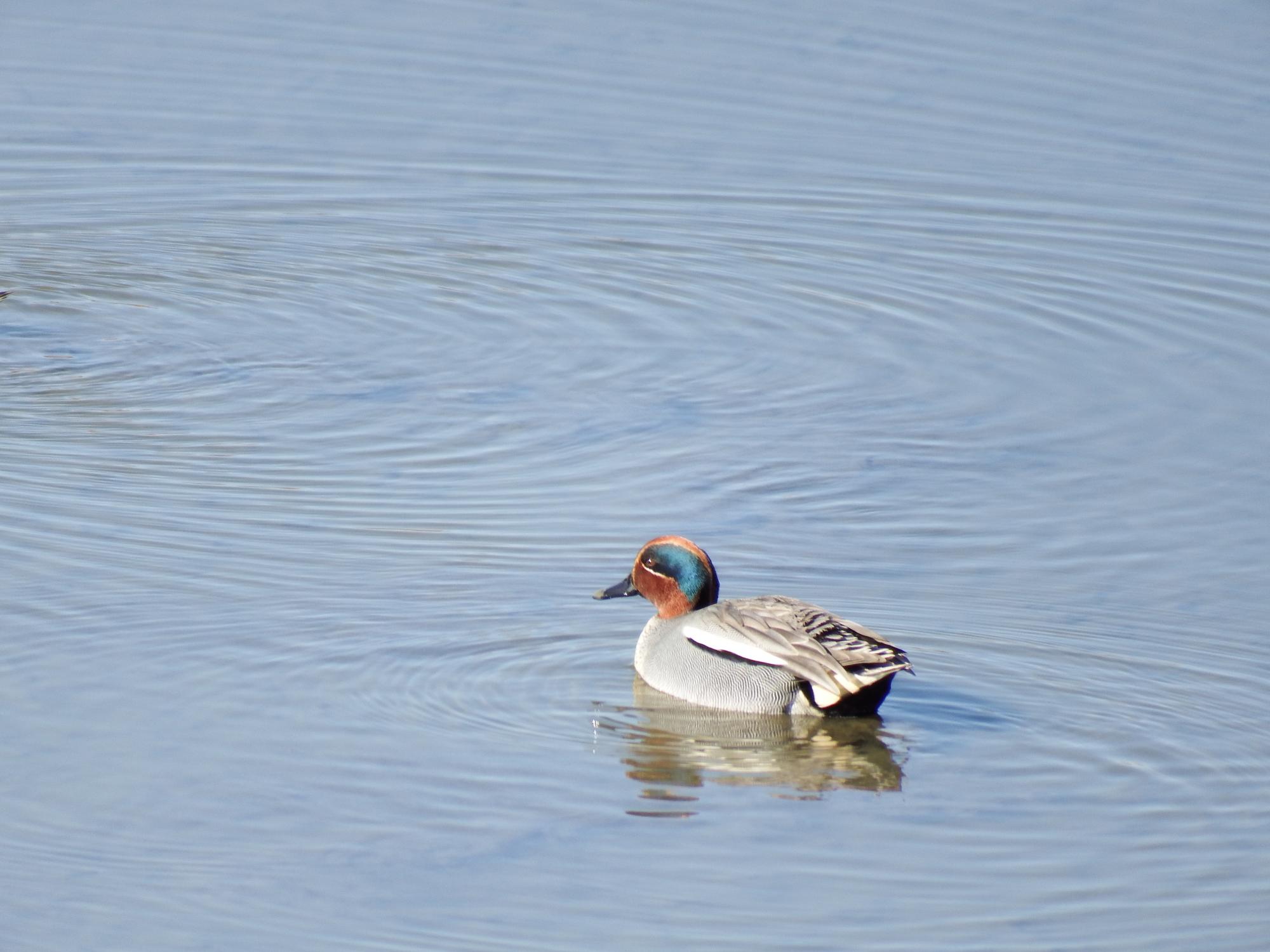 モズが元気に鳴いてます。五ノ坪池はコガモ。
