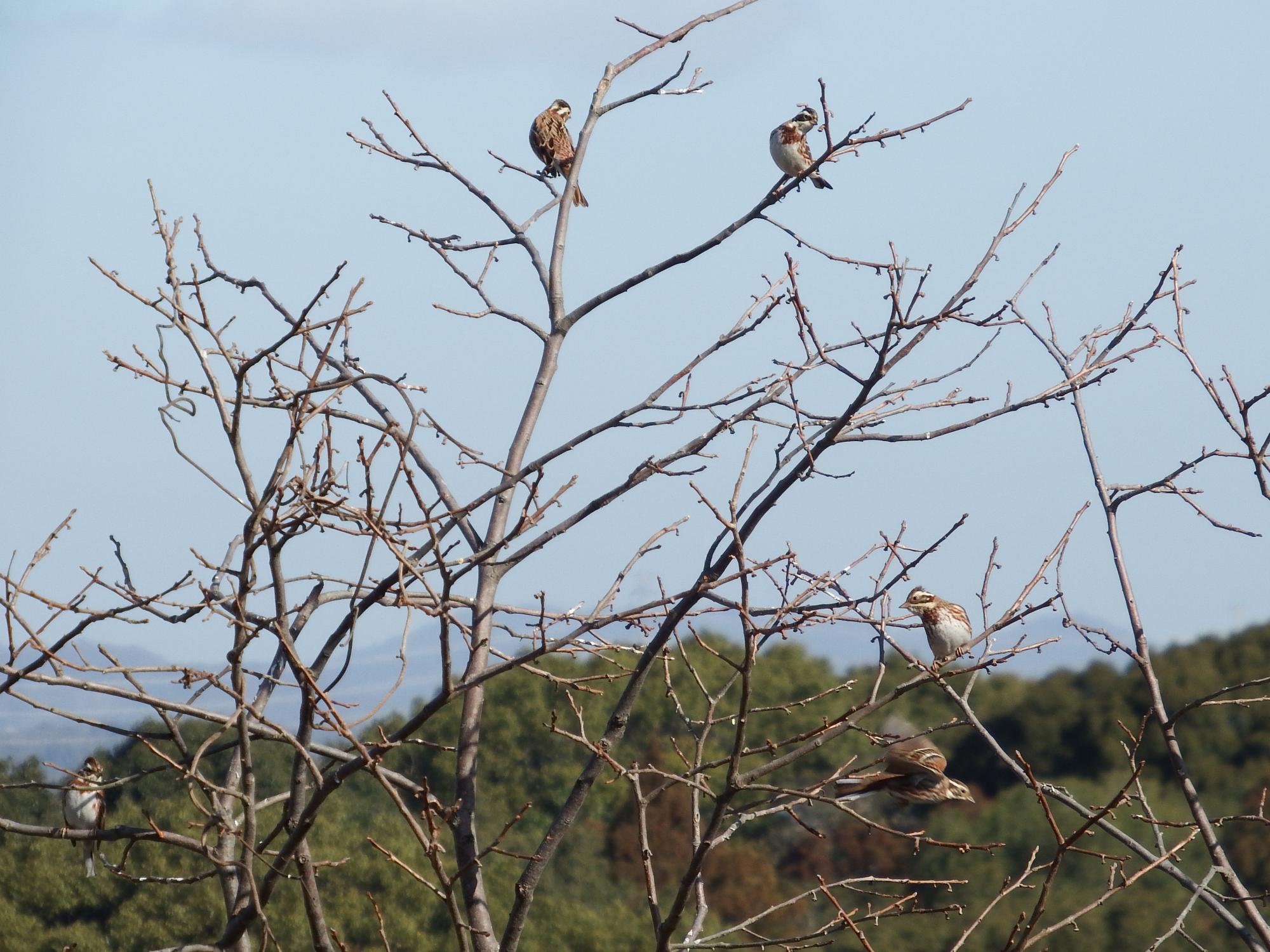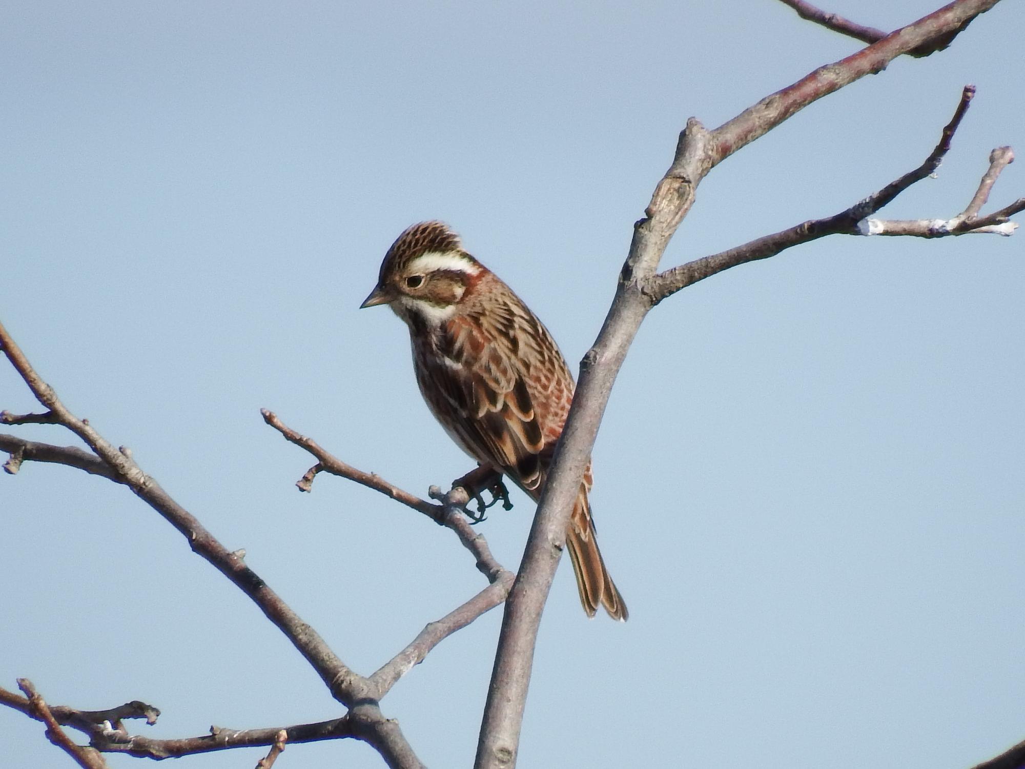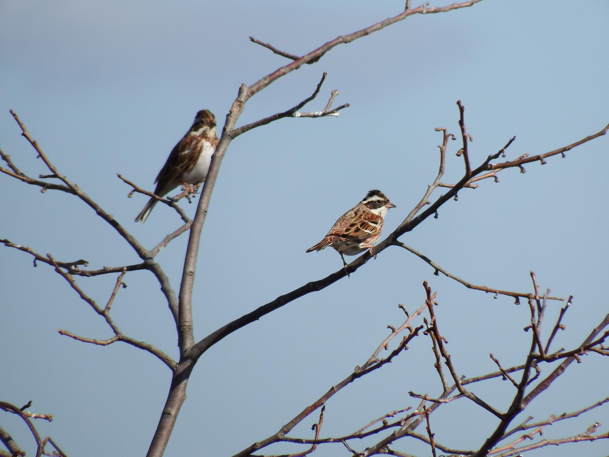 一丁田池の土手から田んぼの木を見下ろすとホオジロ、じゃなくてカシラダカですね。