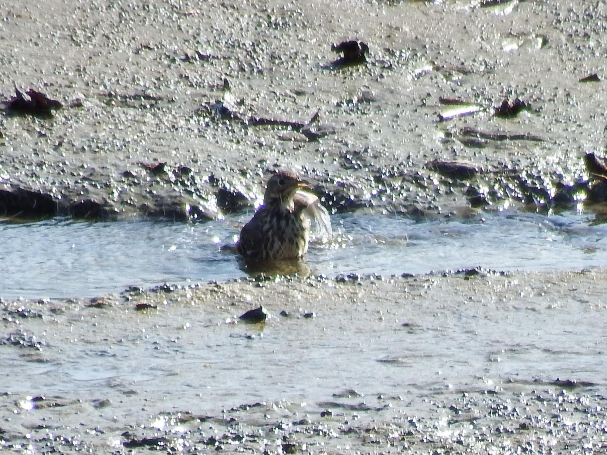 水の抜かれた池の細い流れで入浴中のタヒバリ。近鉄には戻らずに、JR奈良線の山城多賀駅を目指します。