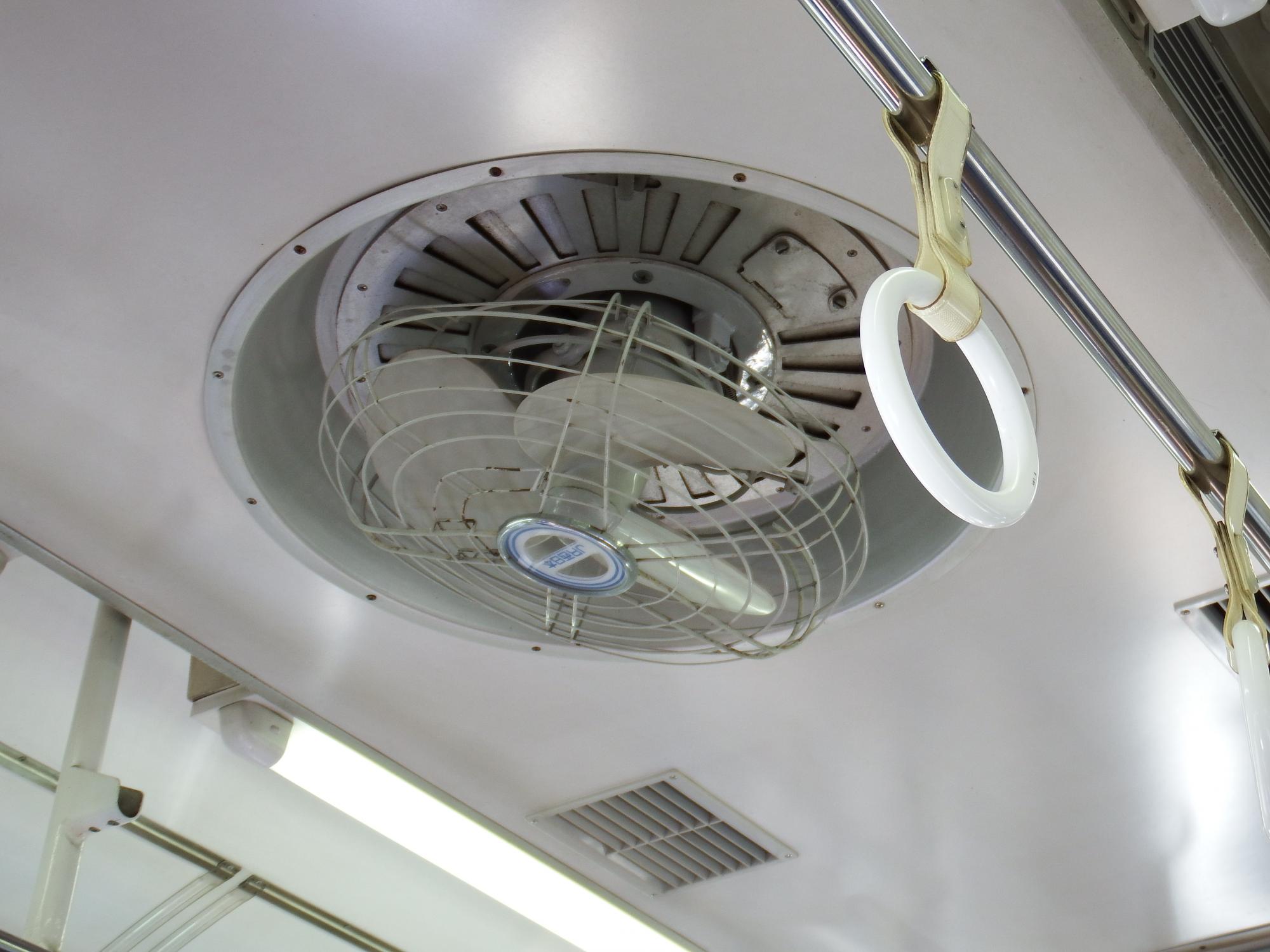 ベンチレーター内側の扇風機、3月4日のダイヤ改正後もこの電車に乗れるかどうかは微妙かと。