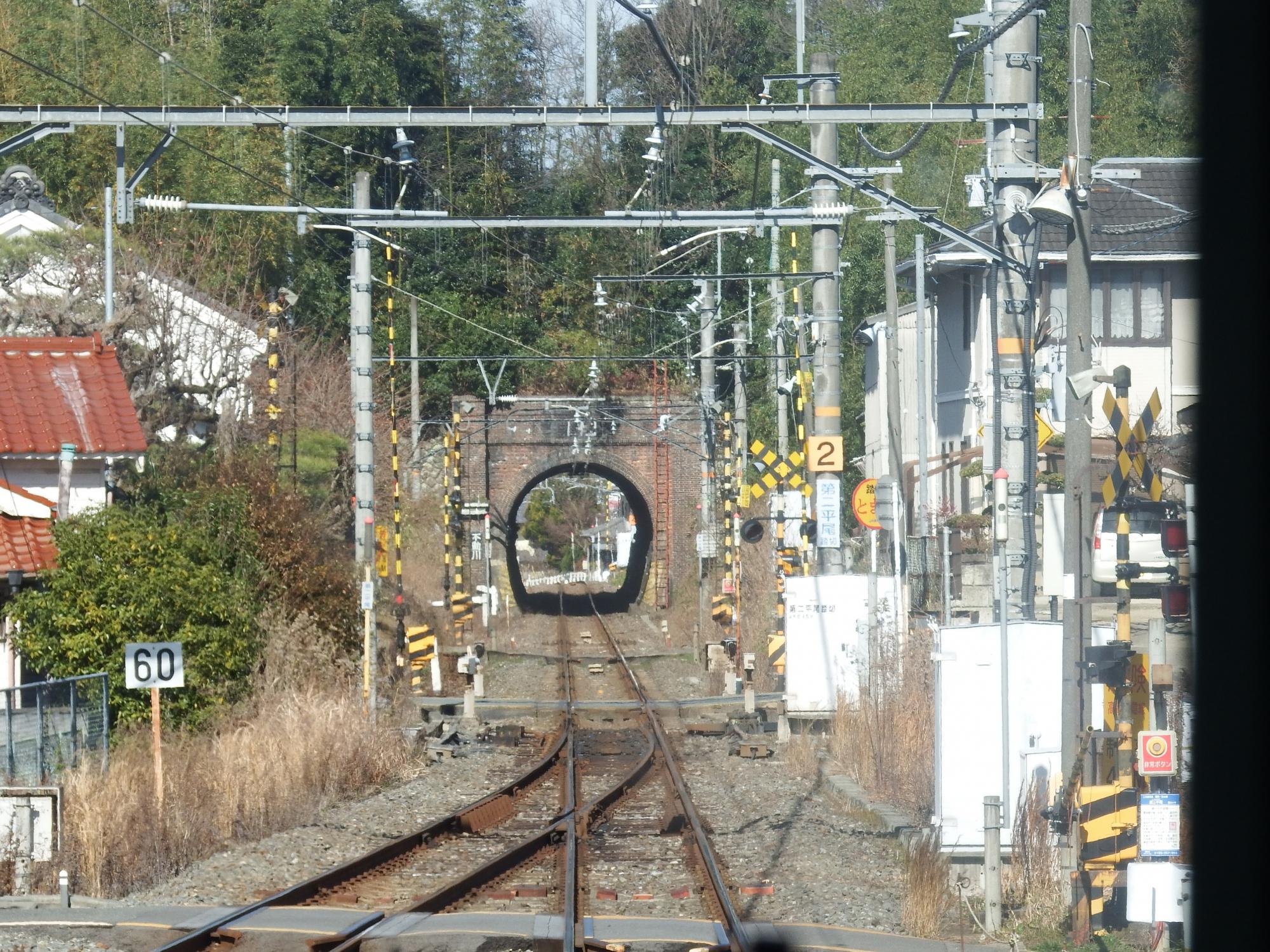 棚倉駅の北側にもレンガ積みの短いトンネル、マップで調べてみてビックリ、何と天井川です。不動川というかつては大変な暴れ川だった川でこちらのPDFによると明治の砂防技術発祥の地のようです。