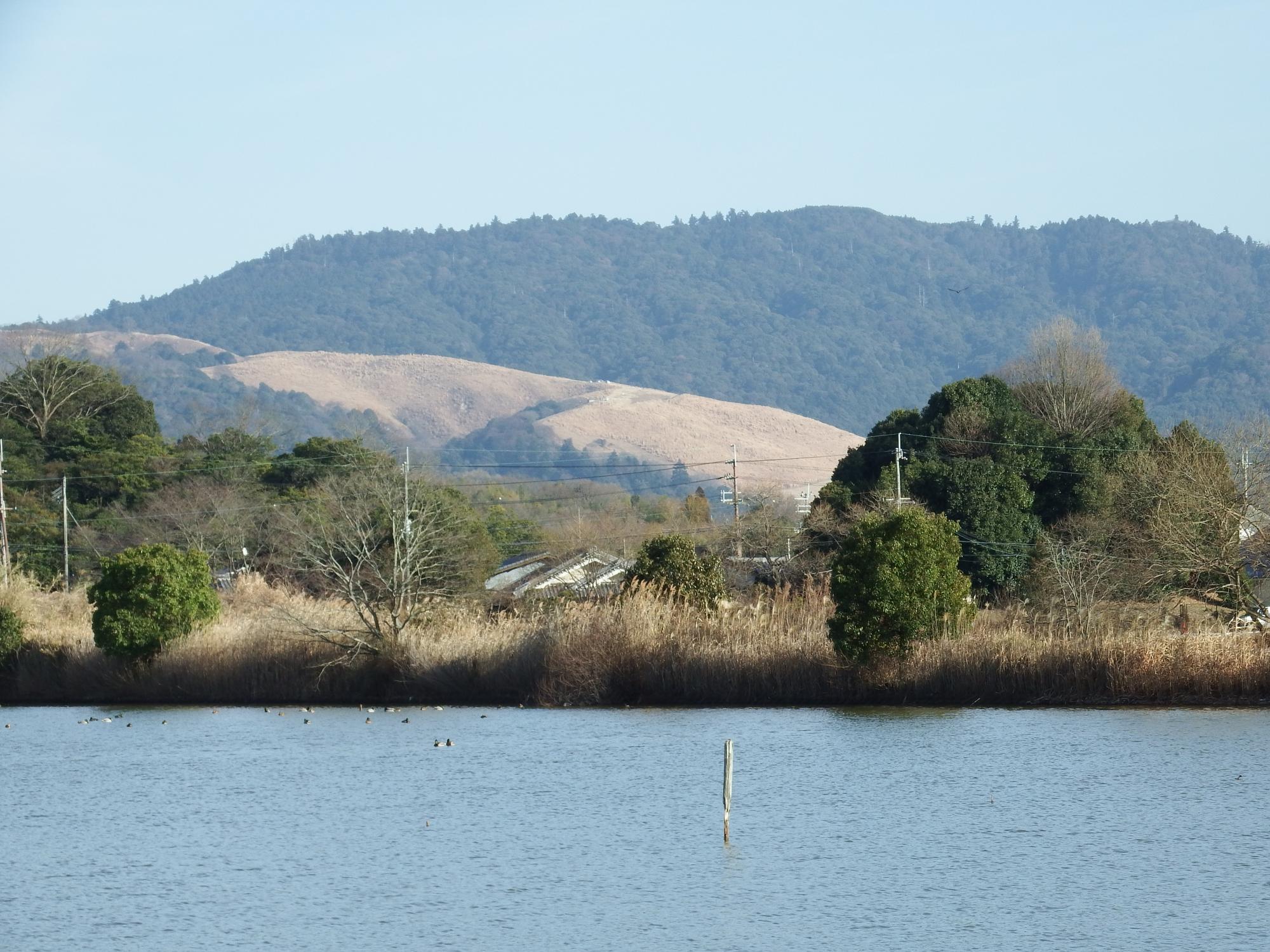 数日前の厳寒を忘れるような暖かさでおまけに雲一つない快晴、こんな日のことを冬麗(ふゆうらら)と呼ぶそうです。草内と水上池の両方をいっぺんに行ってみることにしました。それに今夜は若草山焼きがあります。水上池辺りからもよく見えるはずです。