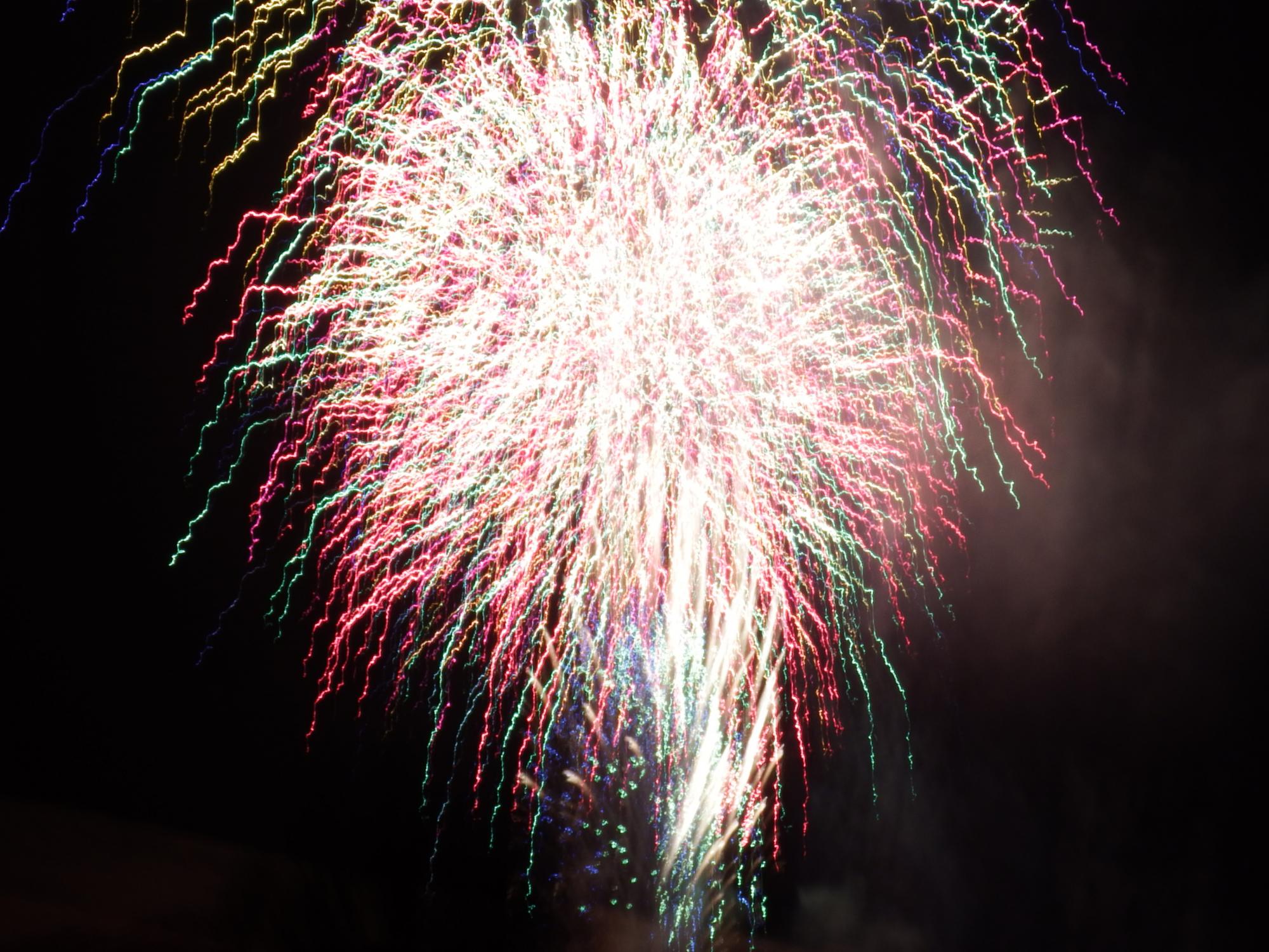 自分のカメラで花火がこんなに綺麗に撮れるとは思っていませんでした。シーンポジションモードの花火の設定、スローシャッターで色鮮やかに撮ってくれます。花火って短いシャッタースピードかと思い込んでいました。