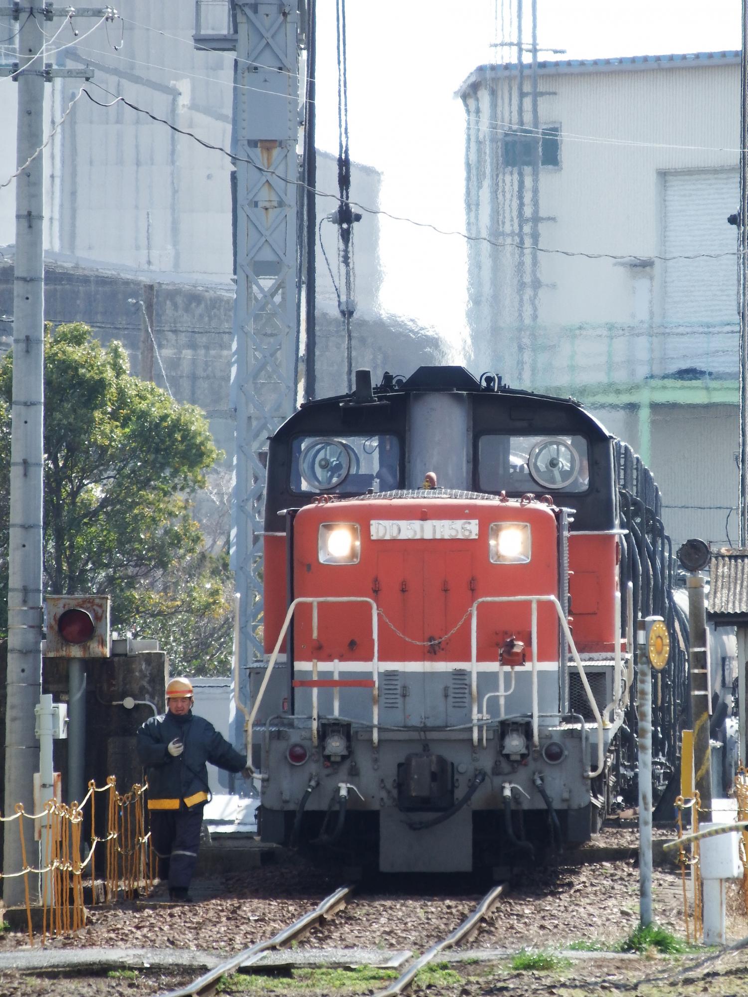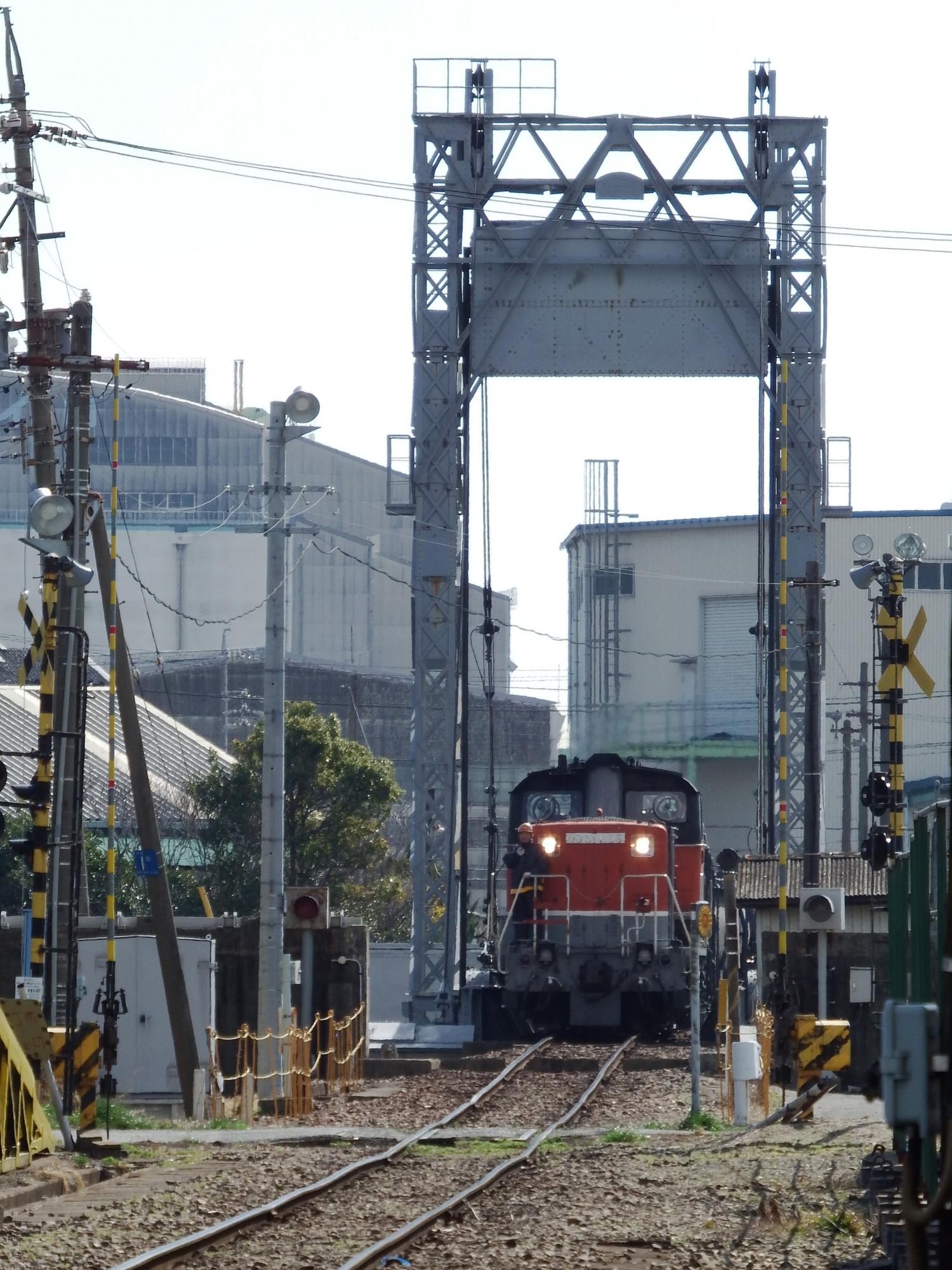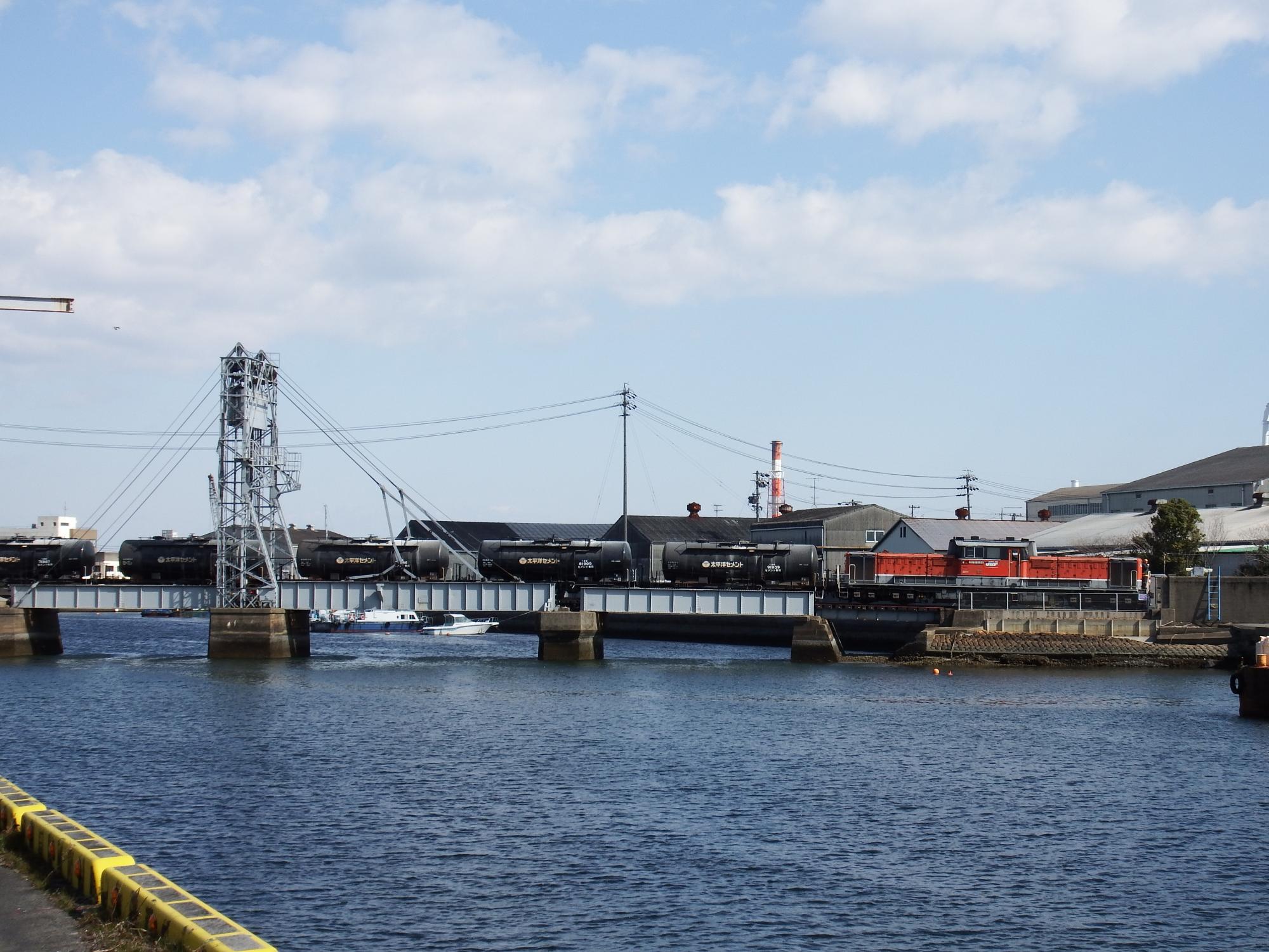 5363列車がほぼ定刻にやってきました。東藤原にある太平洋セメント藤原工場で生産されたセメントがタキ1900形に積み込まれ、この可動橋を渡ってスイッチバックした先で船に積み替えられ出荷されるようです。