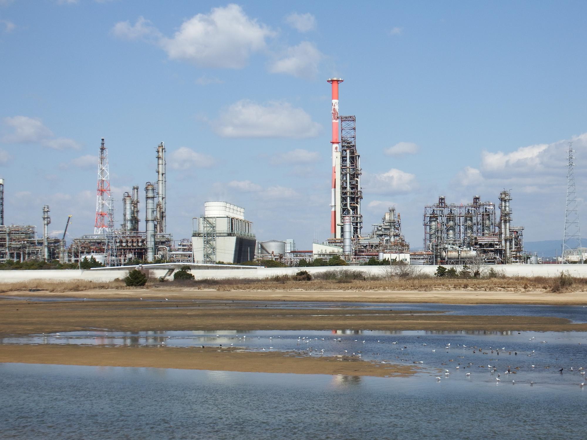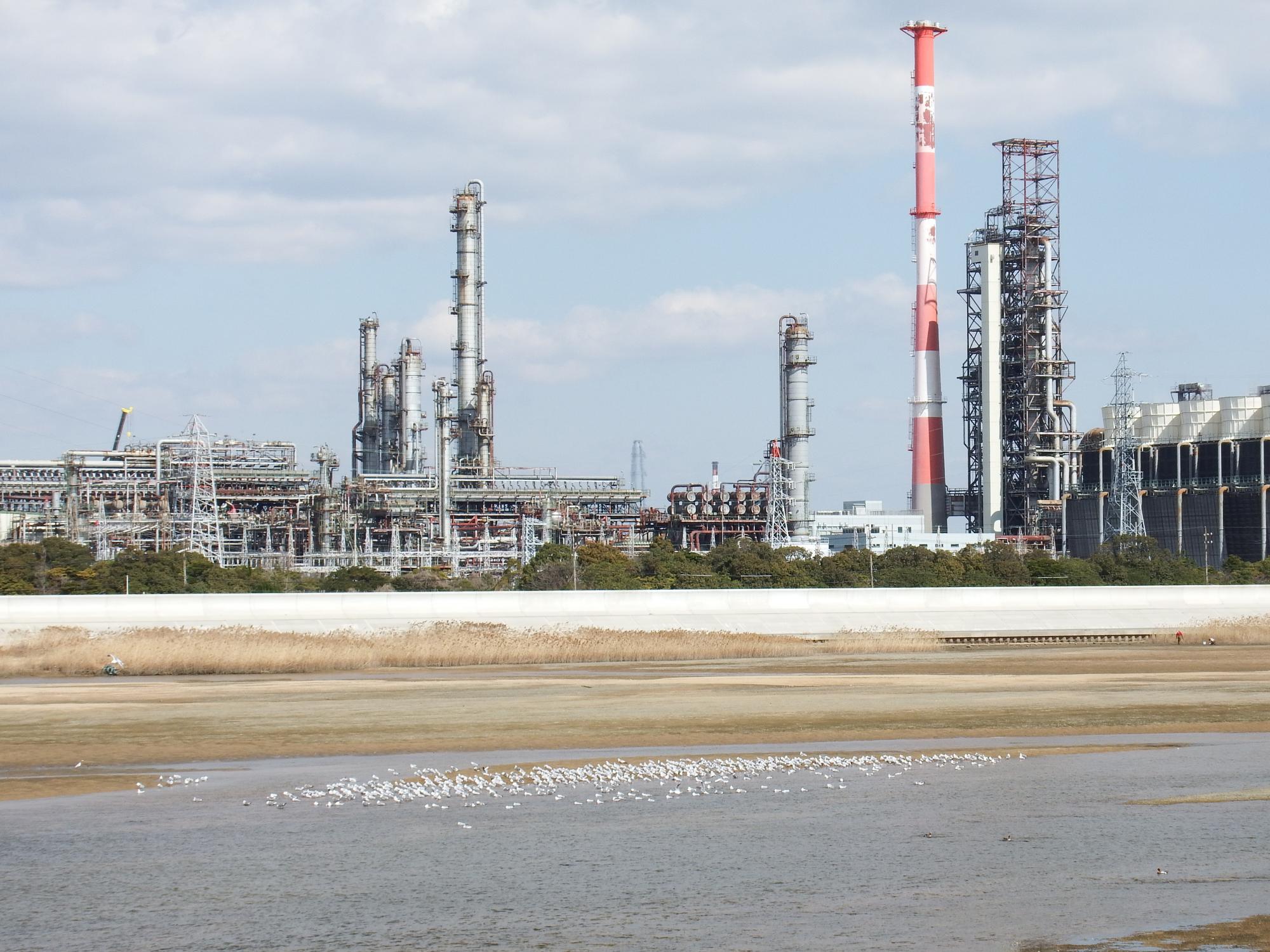臨海地区だけじゃなくて、町中近くにも大規模な工場が。その脇を流れる天白川という小さな川の流れの透明度が高くびっくりします。環境保護には他都市にみられないほど敏感と思われる四日市です。