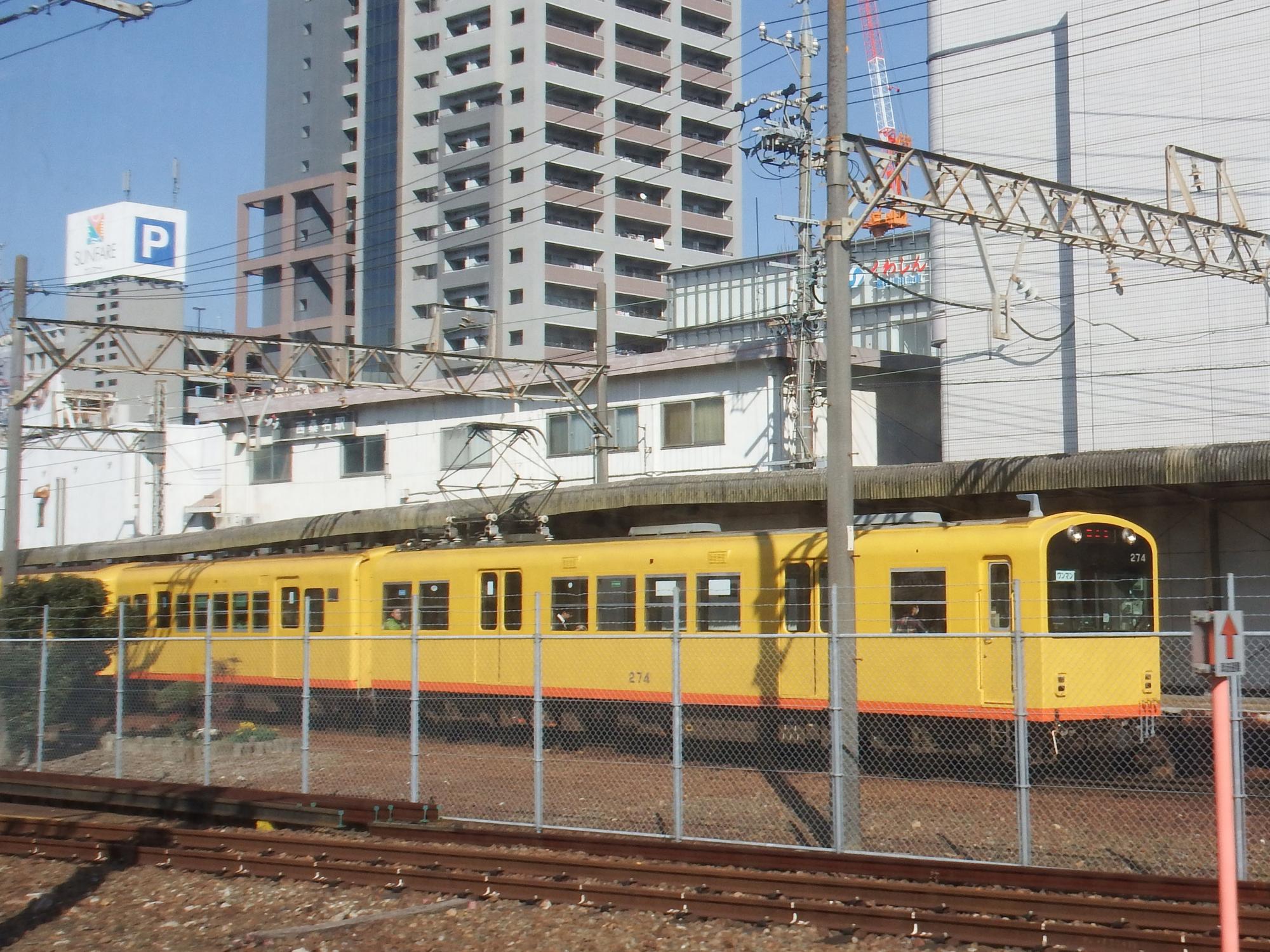 名鉄名古屋駅で50cm幅の色別乗車目標とディスクジョッキーを少しだけ楽しんで急行吉良吉田行に乗車、地下から出るとEF66オリジナルタイプと並走。