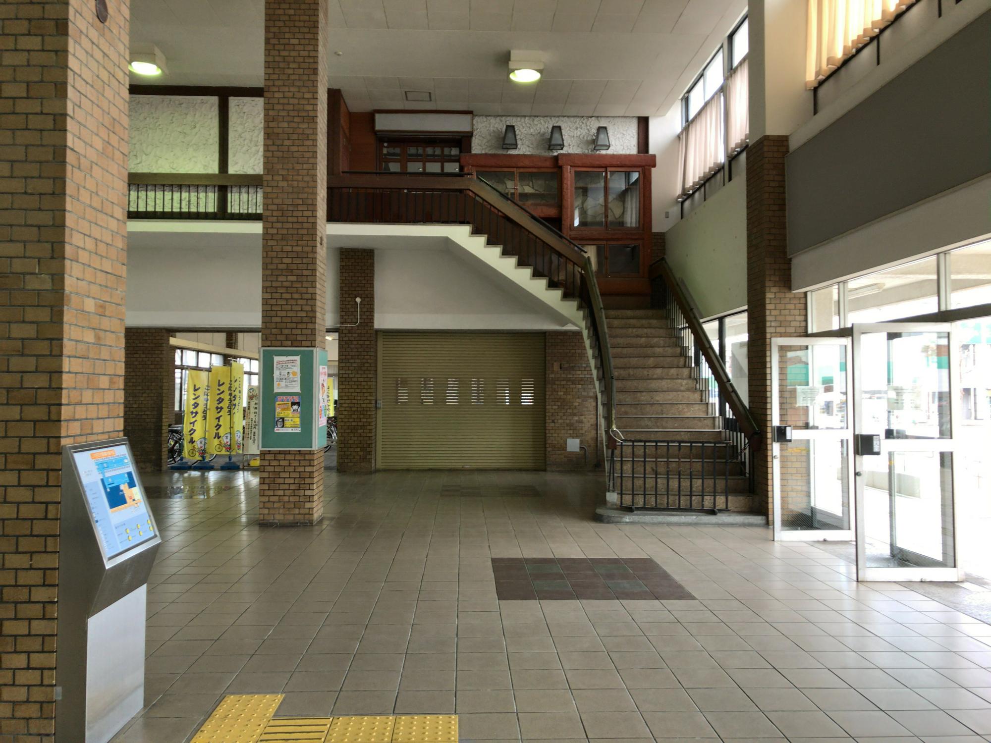 米子駅同様、昔の京都駅みたいな二階へ上がる階段の先にかつてはレストランがあったとわかります。改札左手には5年前に閉店したJR東海ツアーズのポスターがそのまま。駅周辺にも商業集積があった痕跡すら見当たらず、とても三重県最大の都市の代表駅とは思えません。歴史的にもこの駅が賑わっていた時期は殆ど無かったんじゃないかと思われます。