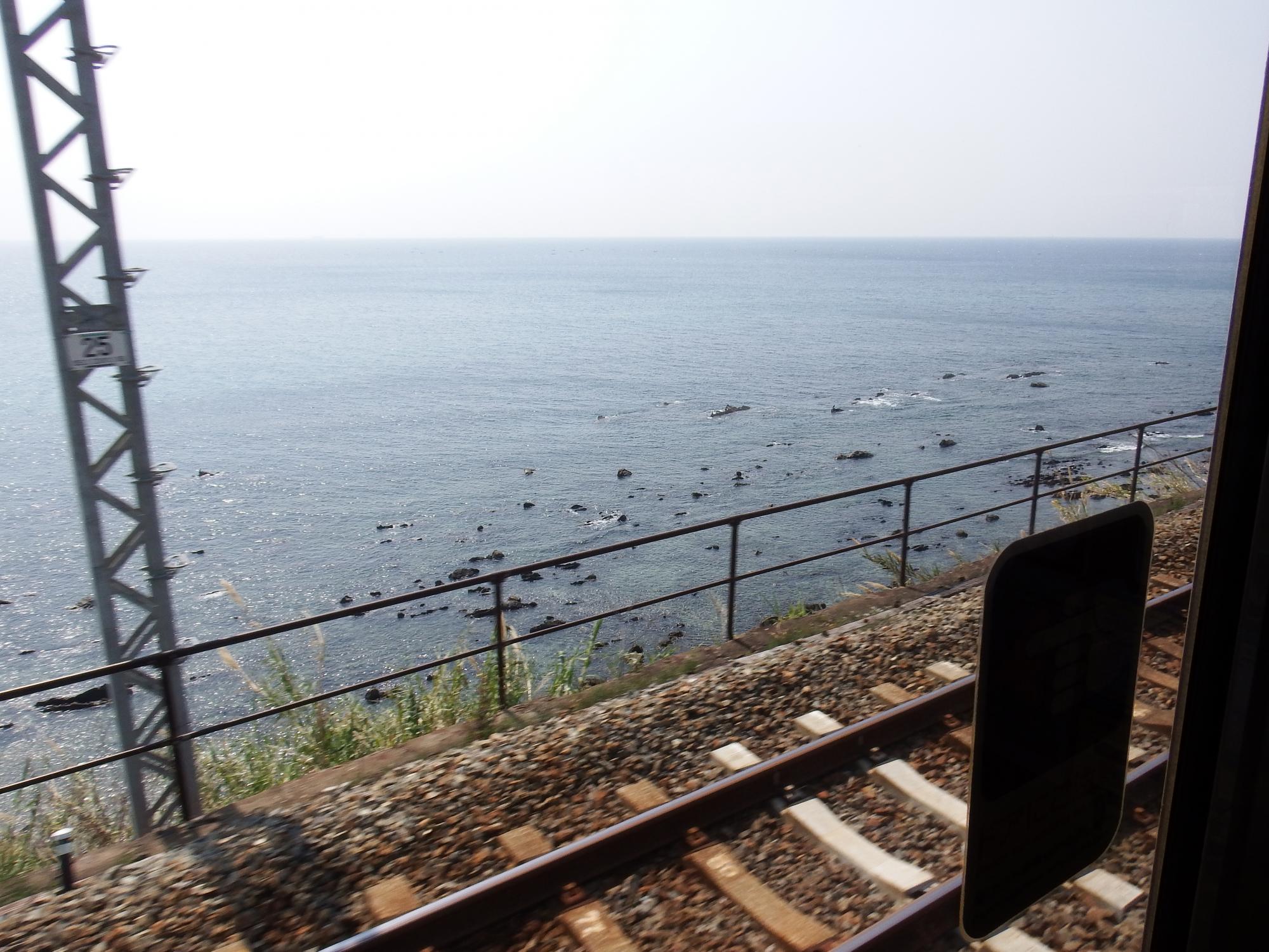 車窓からみた千里の浜、岩代駅からアプローチすると食事にありつけそうにないので、南部駅からアプローチすることにします。南部駅前に本家かまどやがあって幕の内弁当をゲット。