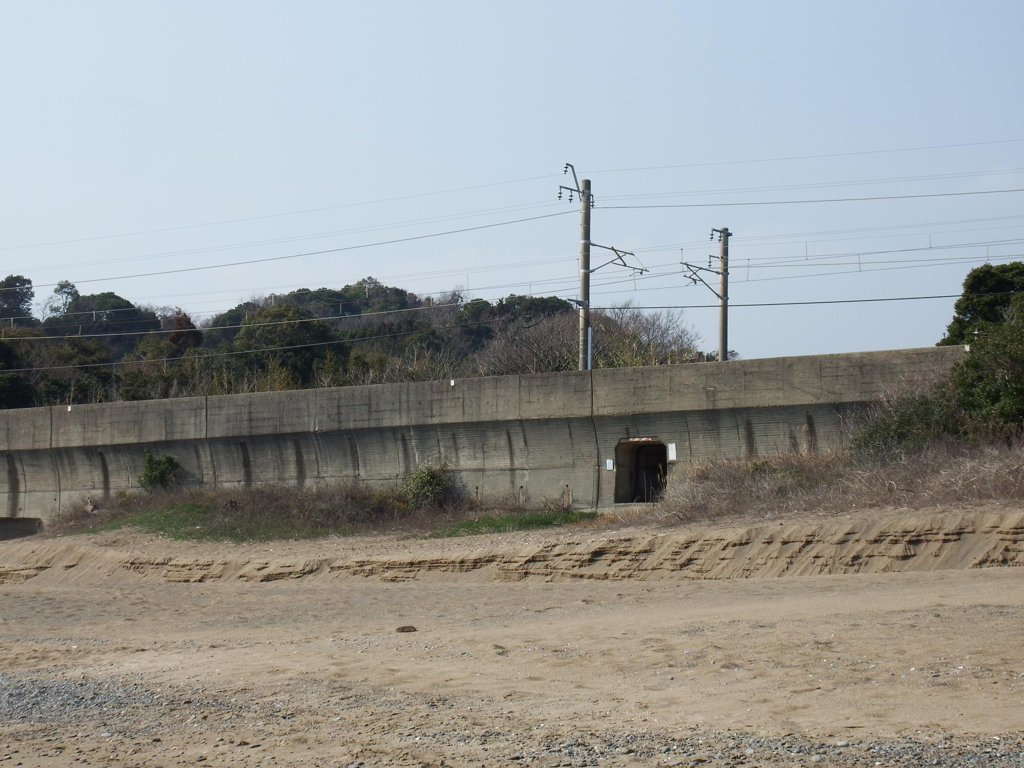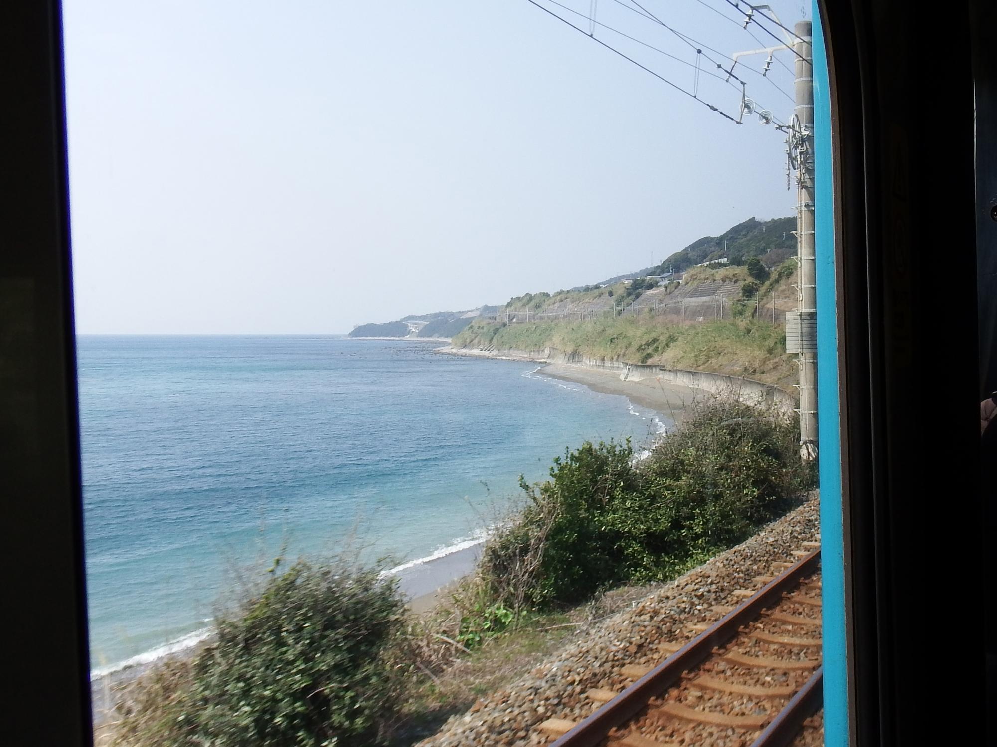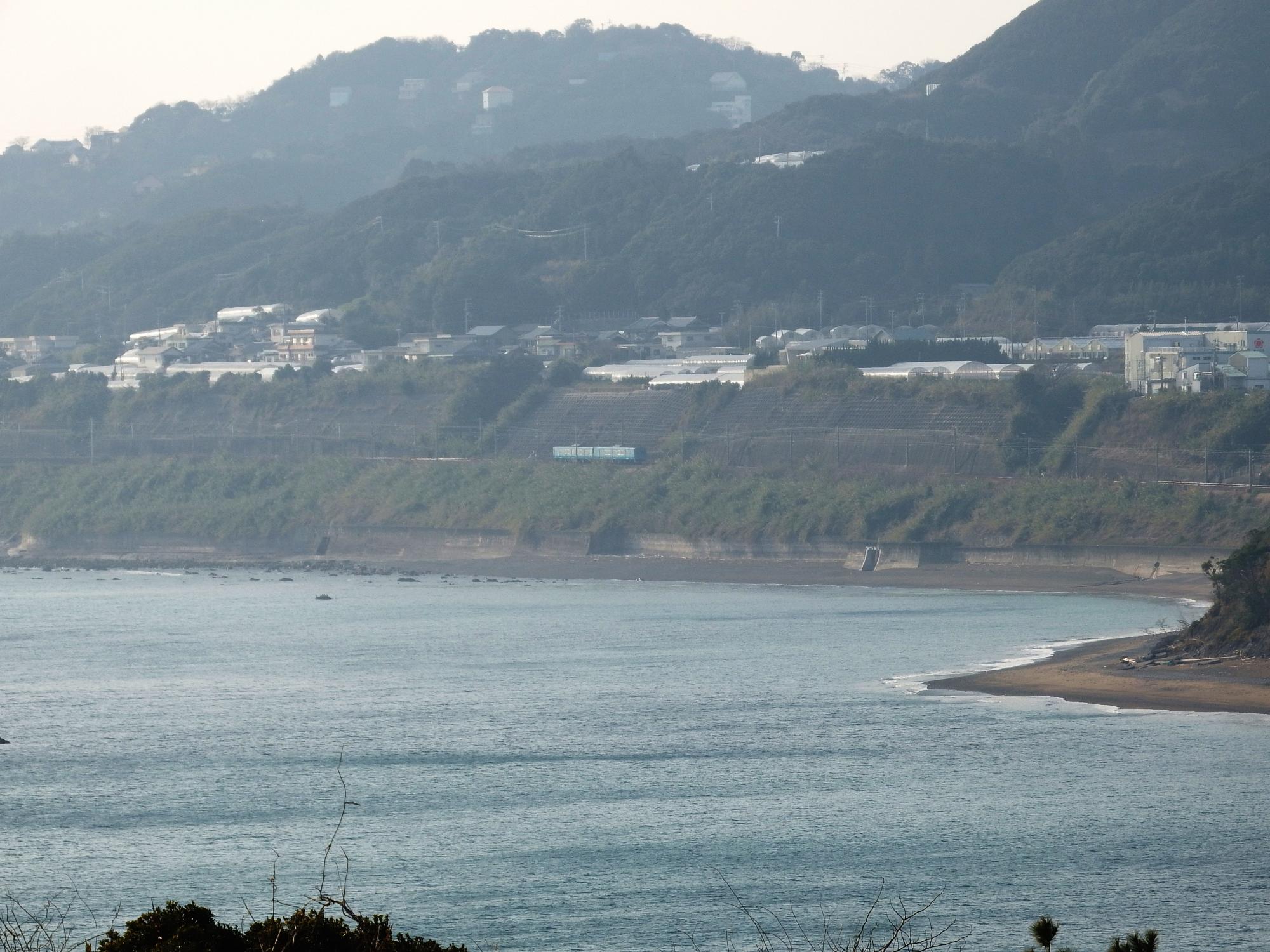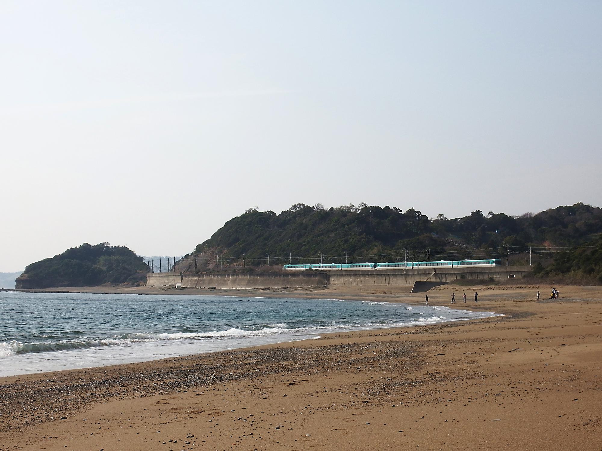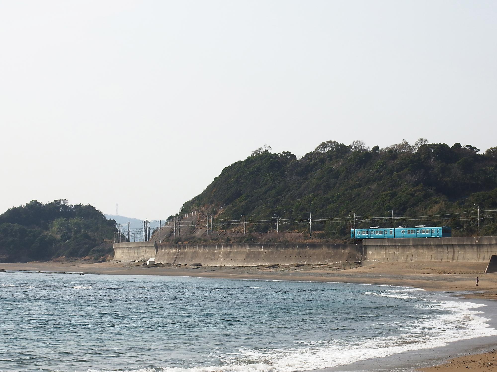 切目を過ぎると太平洋が車窓に広がります。鉄道より海側に道はなく、この付近では浜辺に出る方法もなさそうです。日差しはあるものの、うす曇りで前回来た時の秋の海のようなきらめきはありません。