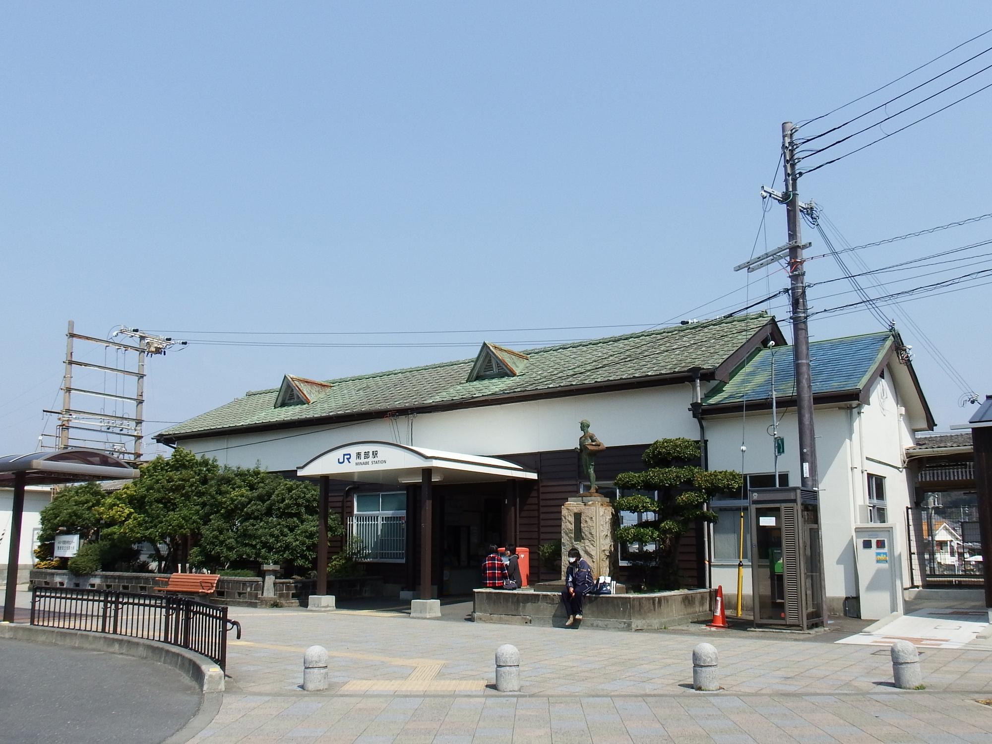 岩代駅にたどり着きました。何故か桜が満開です。テングサの歌という谷山浩子の歌で知られた駅だそうです。