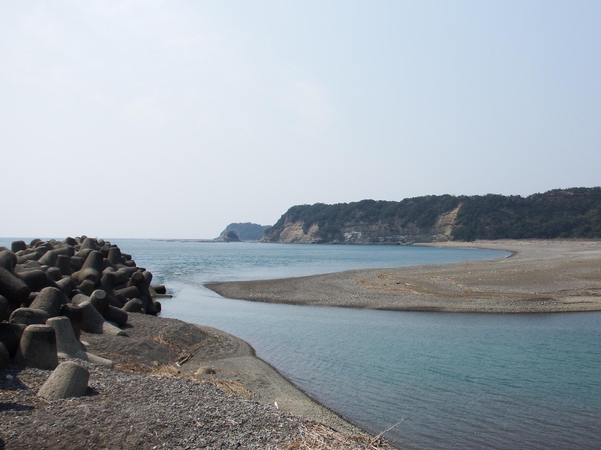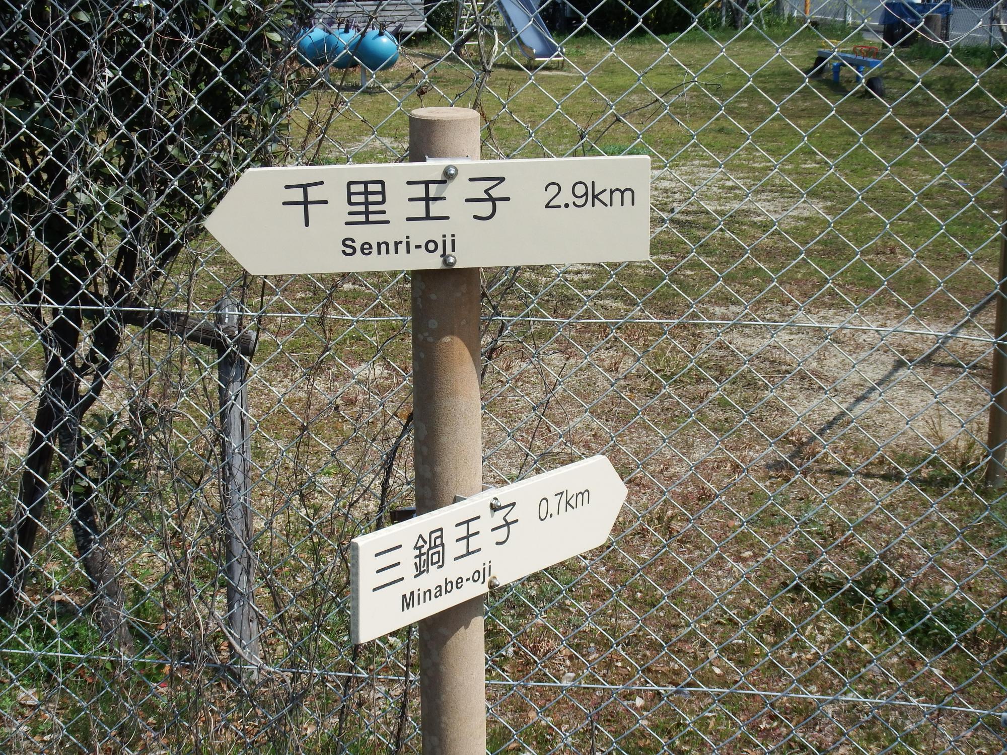 南部川の河口で弁当を広げます。あの半島の向こう側が目的地の千里の浜です。海沿いに行くことは明らかに不可能、千里王子への道標を頼りに峠の向こうを目指します。南部は元々三鍋だったようです。