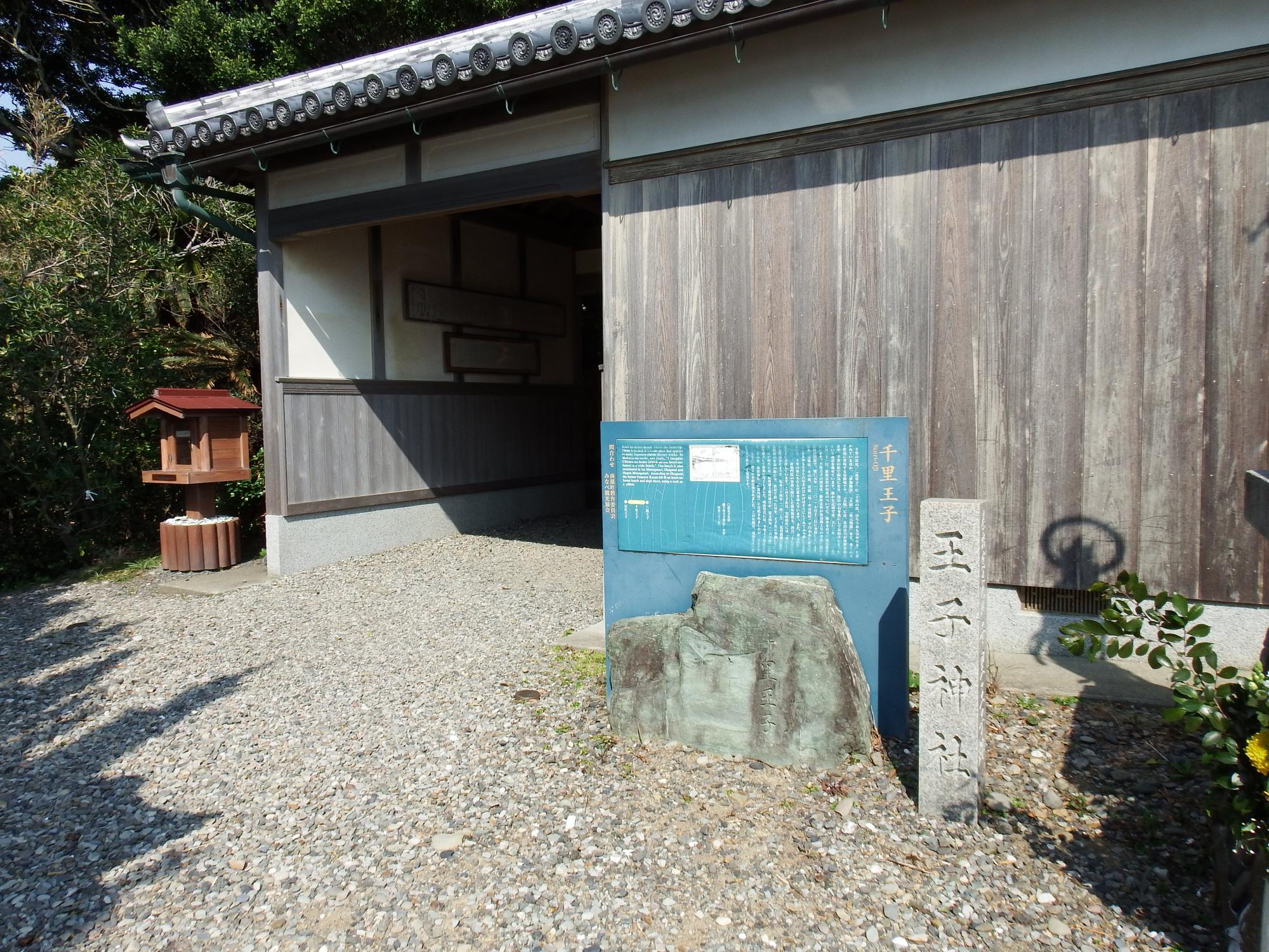 小さな踏切を越えると浜辺が広がりその脇に岩代王子がありました。千里王子よりずっと規模が小さく社というより祠です。