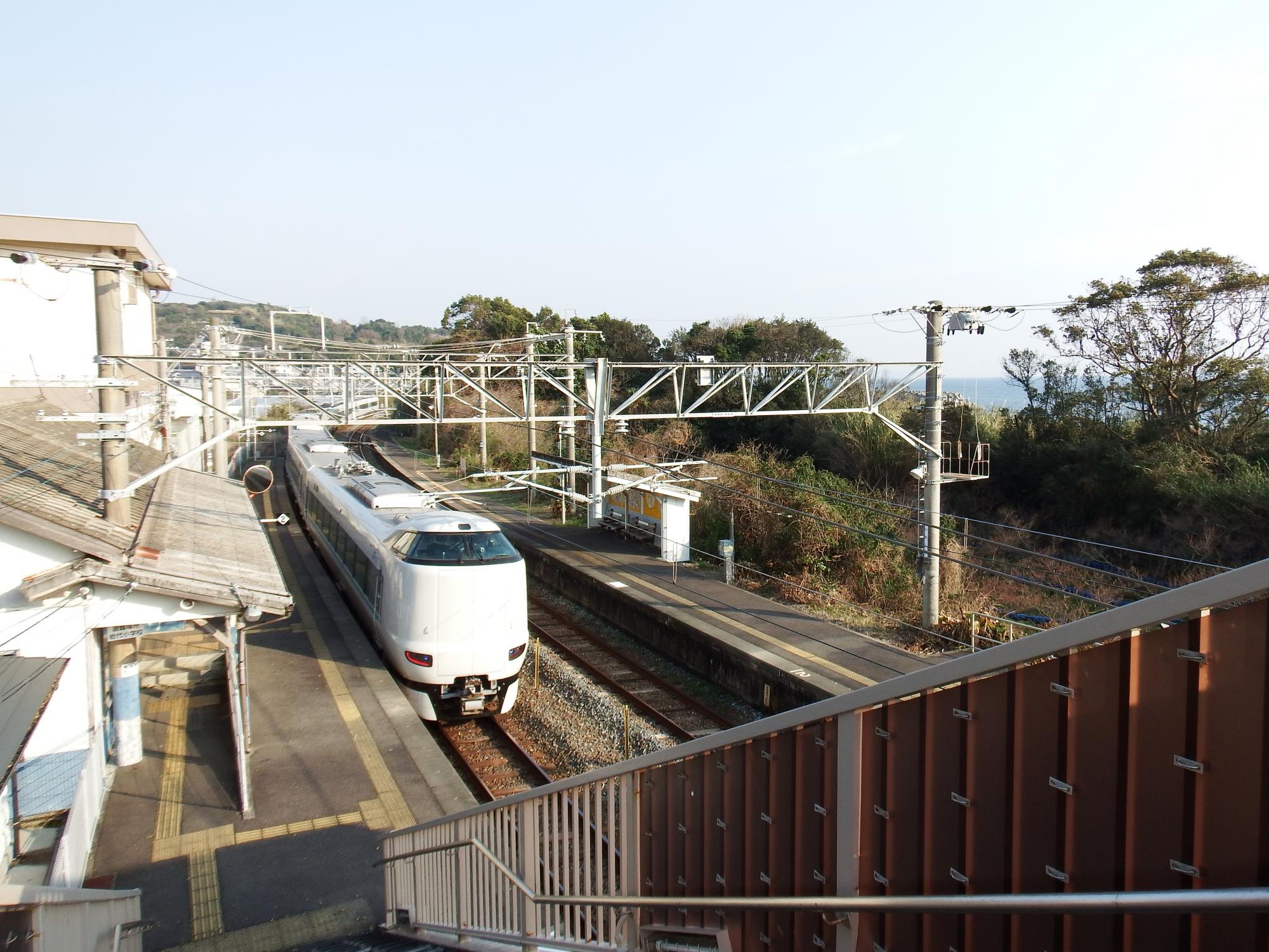 113系と283系。岩代の方まで浜伝いが熊野古道ですが、ガイドマップでも通行不可と明記されています。