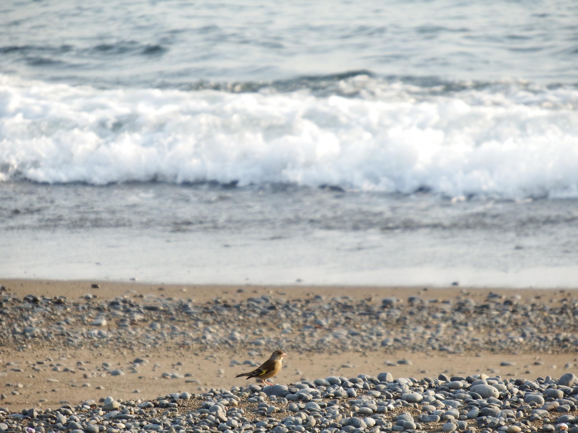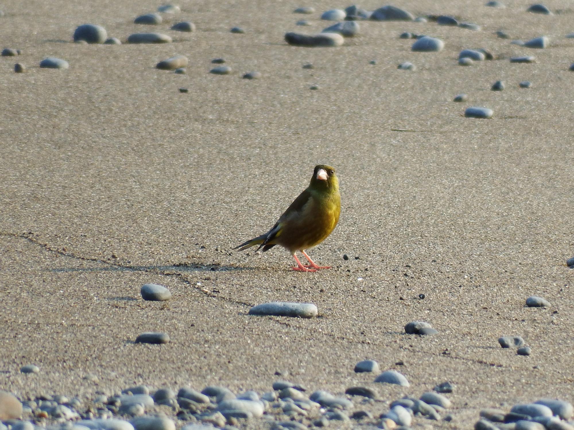 岩代の浜で出迎えてくれたのはカワラヒワ。